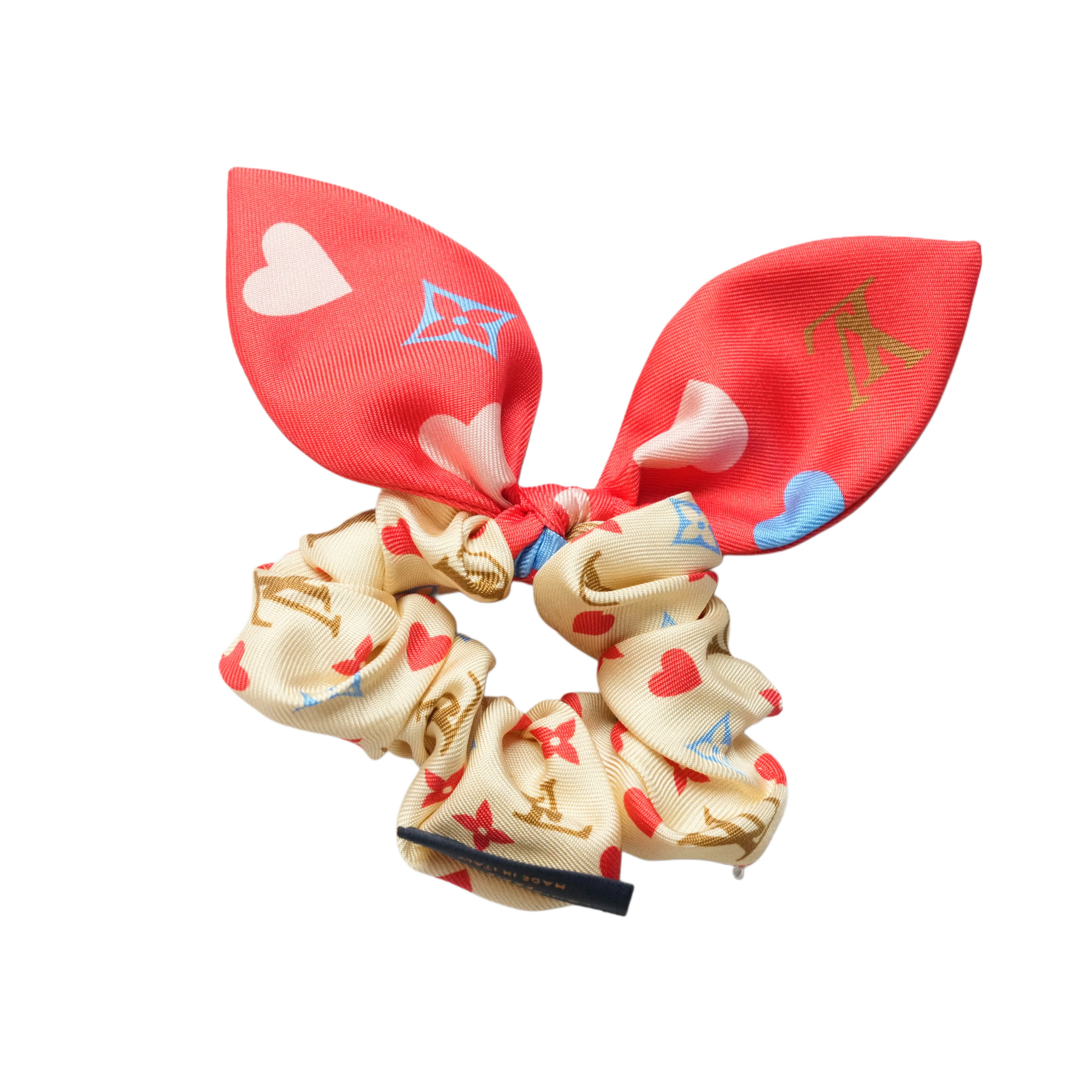 【中古・VINTAGE】 LouisVuitton ルイヴィトン ヘアシュシュ レッド クリーム シルク ヴィンテージ Hair Scrunchie OTHER ACCESSORY