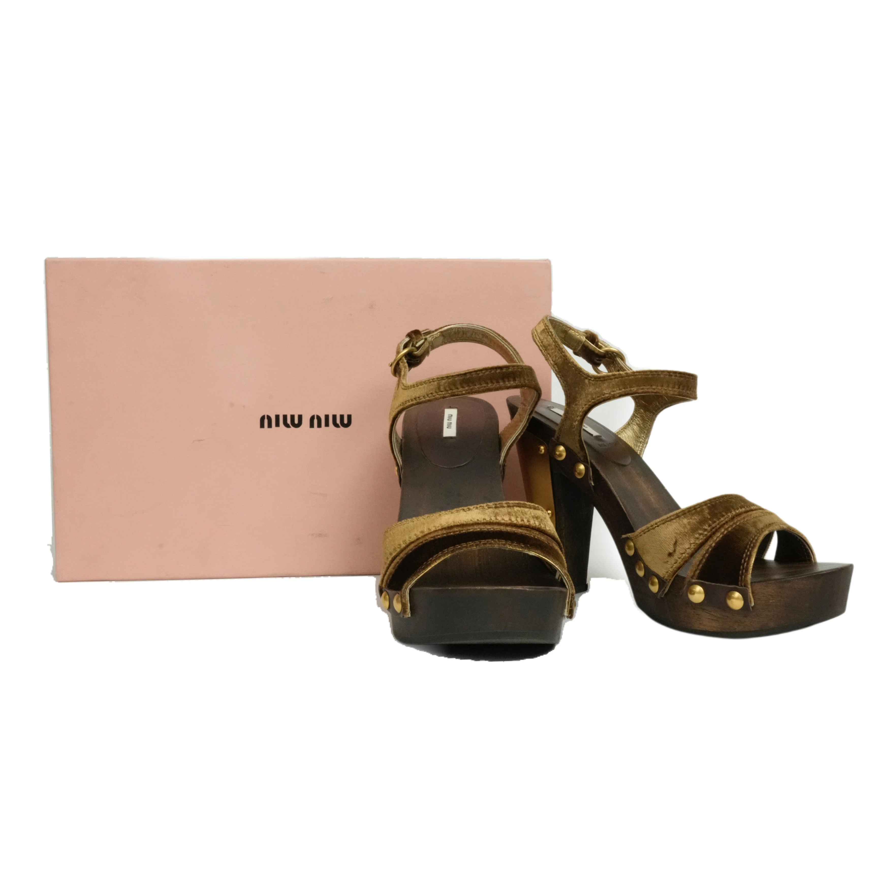 【中古・VINTAGE】 MIU MIU ミュウミュウ サンダル ダークグリーン 23cm ヴィンテージ Sandals