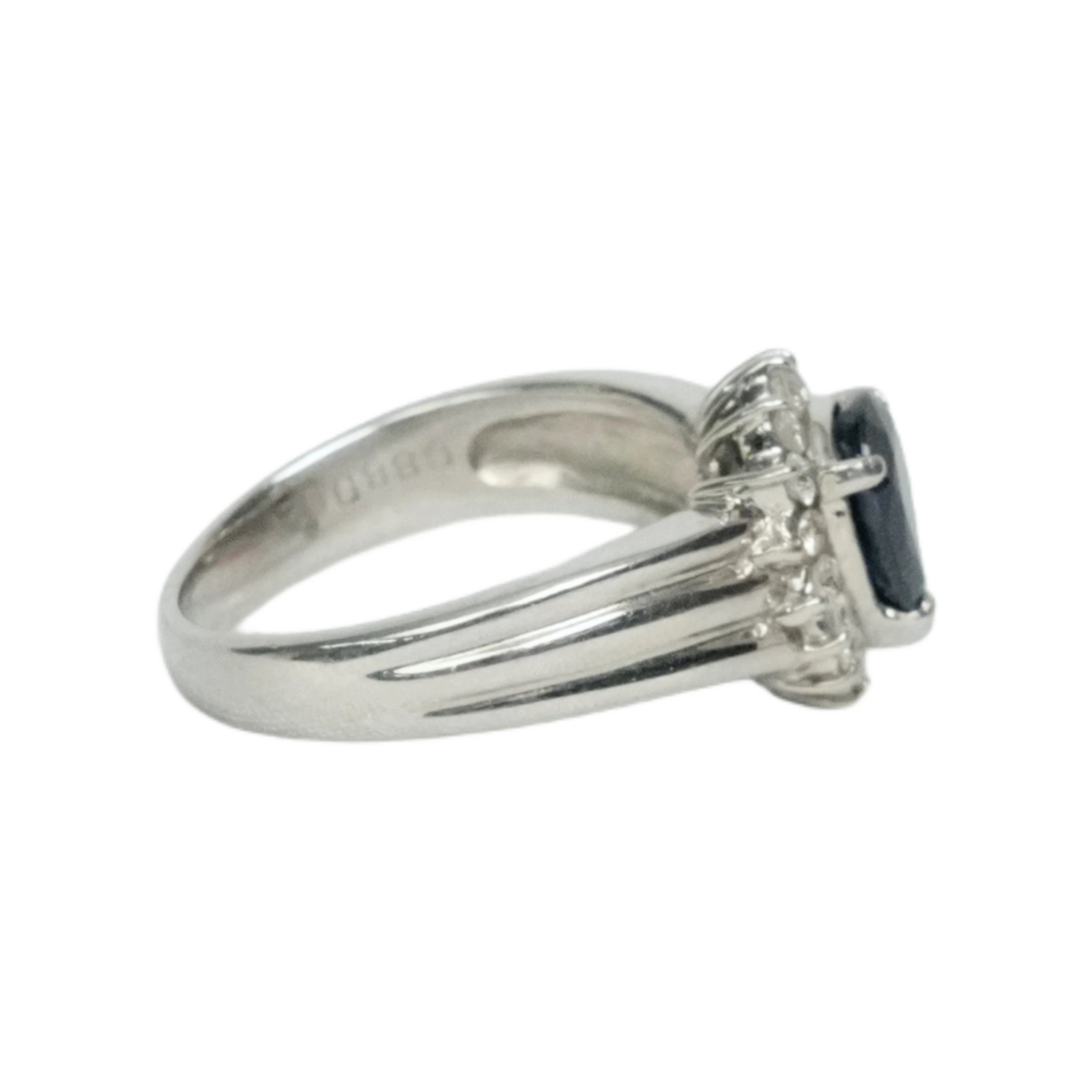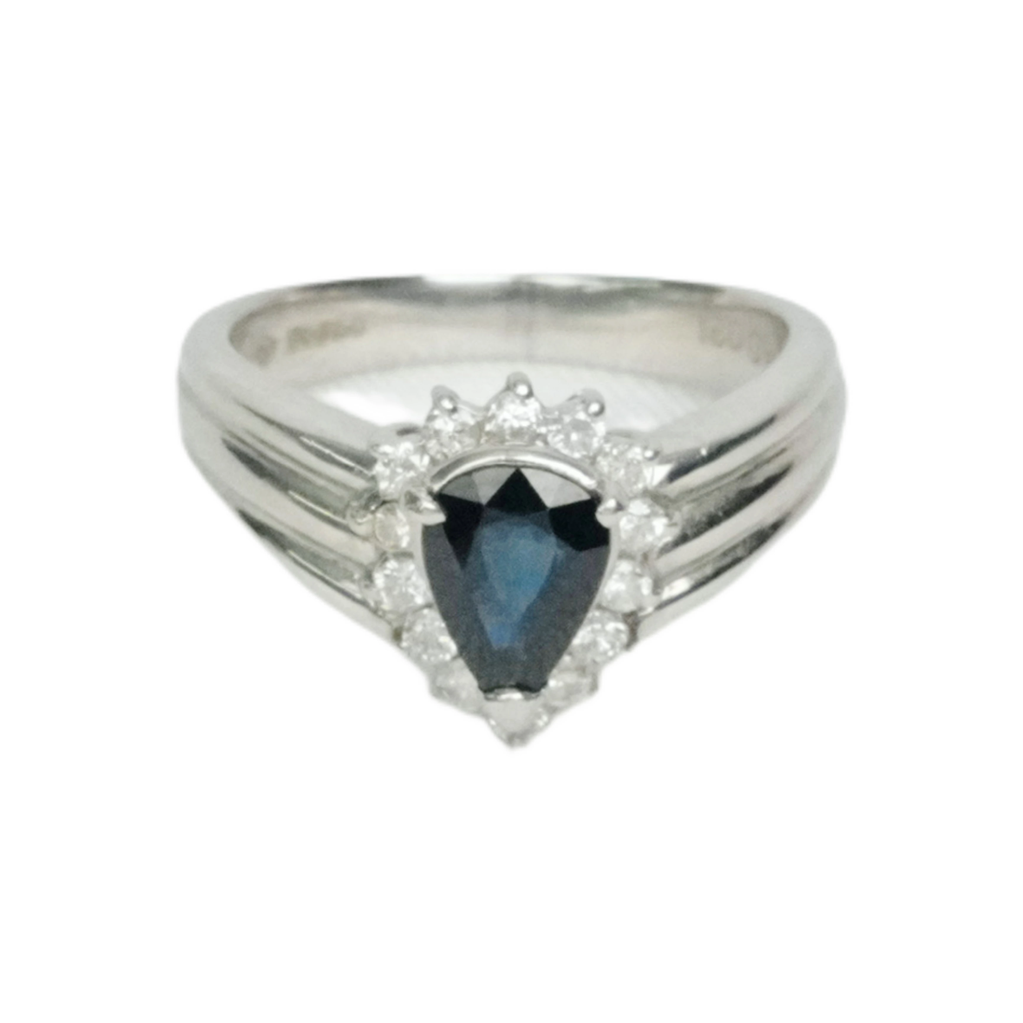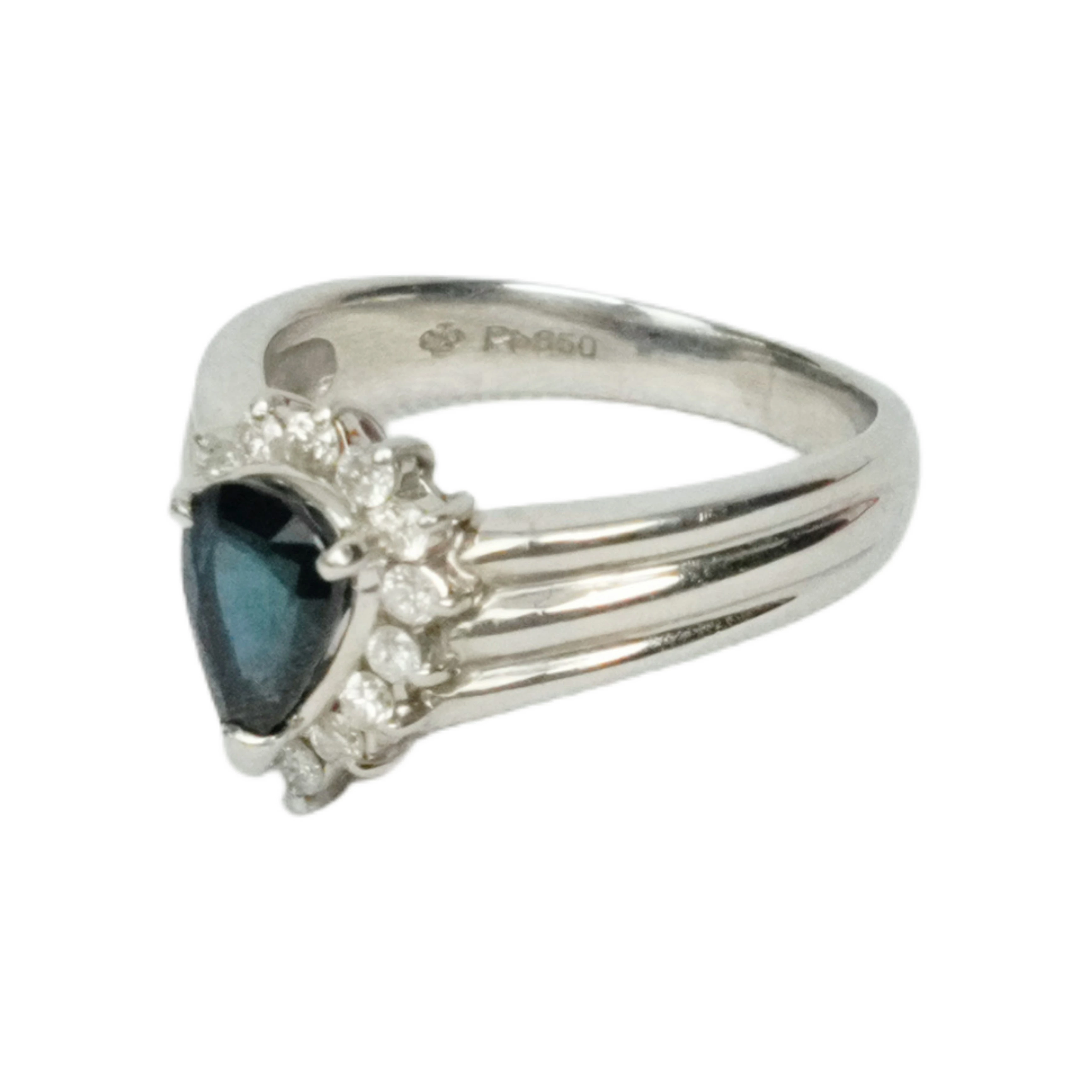 【中古・VINTAGE】 PT850 サファイヤ 0.88ct ダイヤモンド 0.21ct リング ブルー シルバー ヴィンテージ Sapphire 0.88ct Diamond 0.21ct Ring
