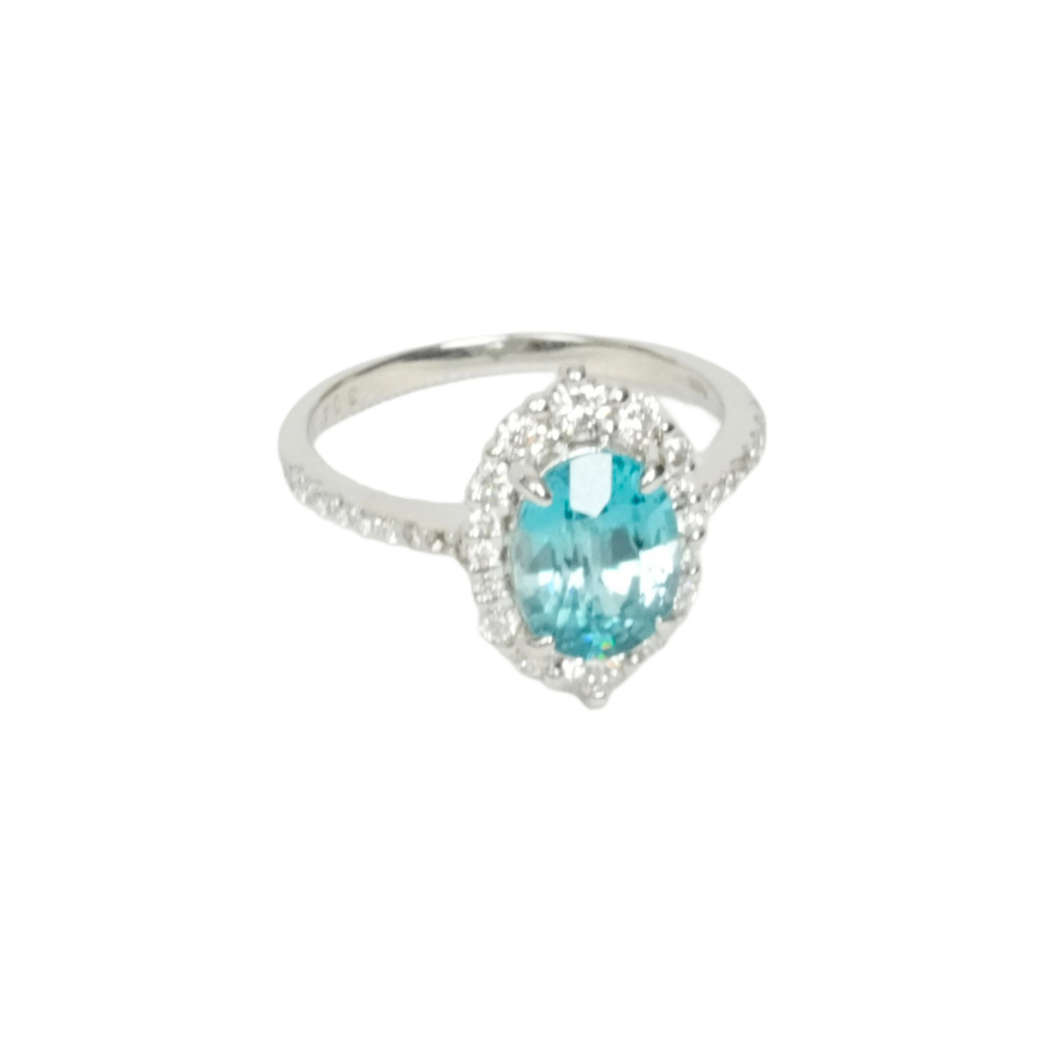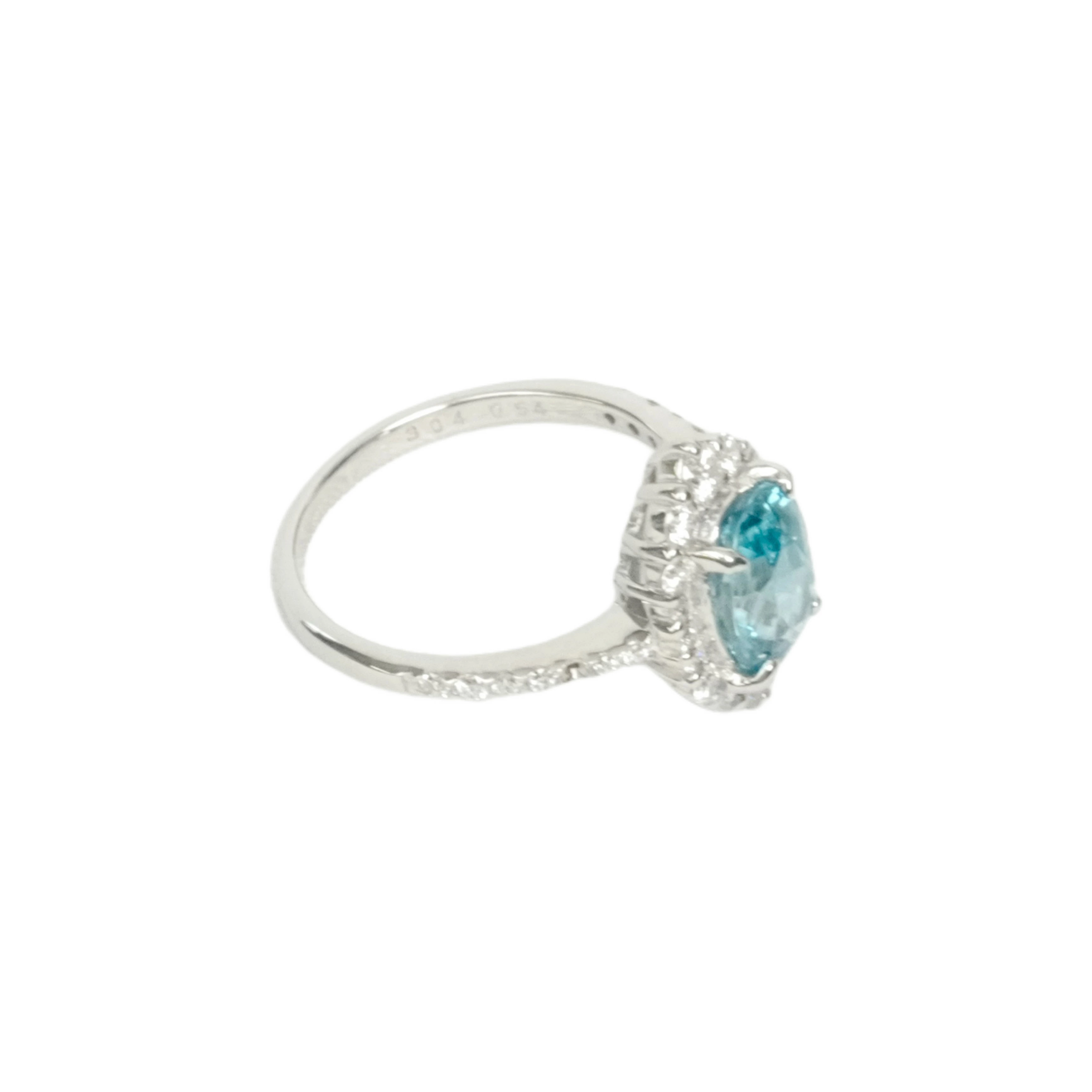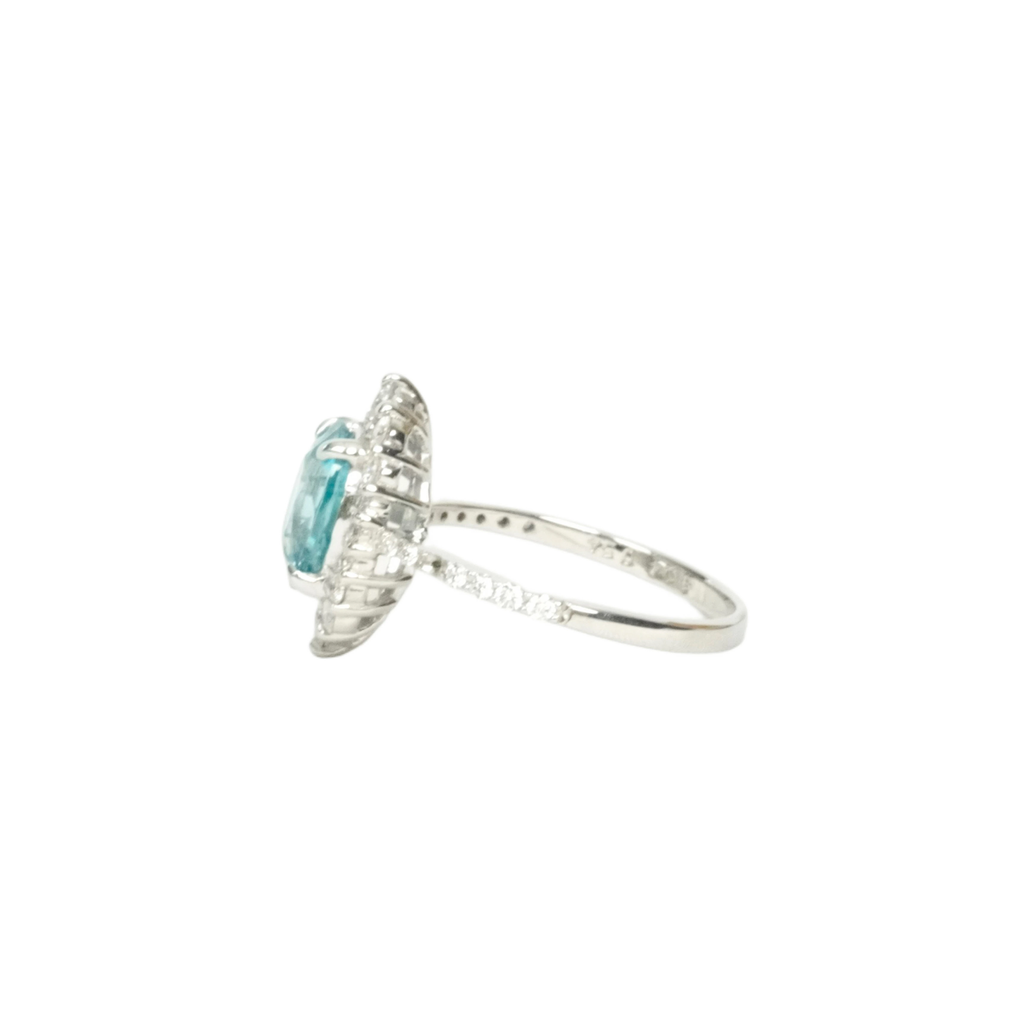 【中古・VINTAGE】 PT900 ジルコン3.04ct ダイヤモンド0.54ct リング ブルー シルバー ジルコン ダイヤモンド 13号 Zircon 3.04ct Diamond 0.54ct Ring