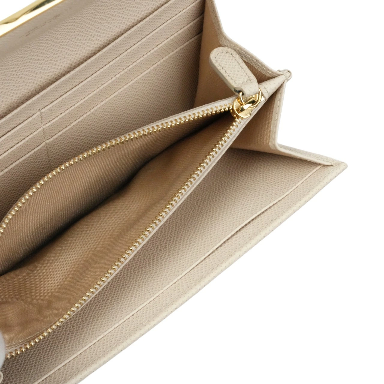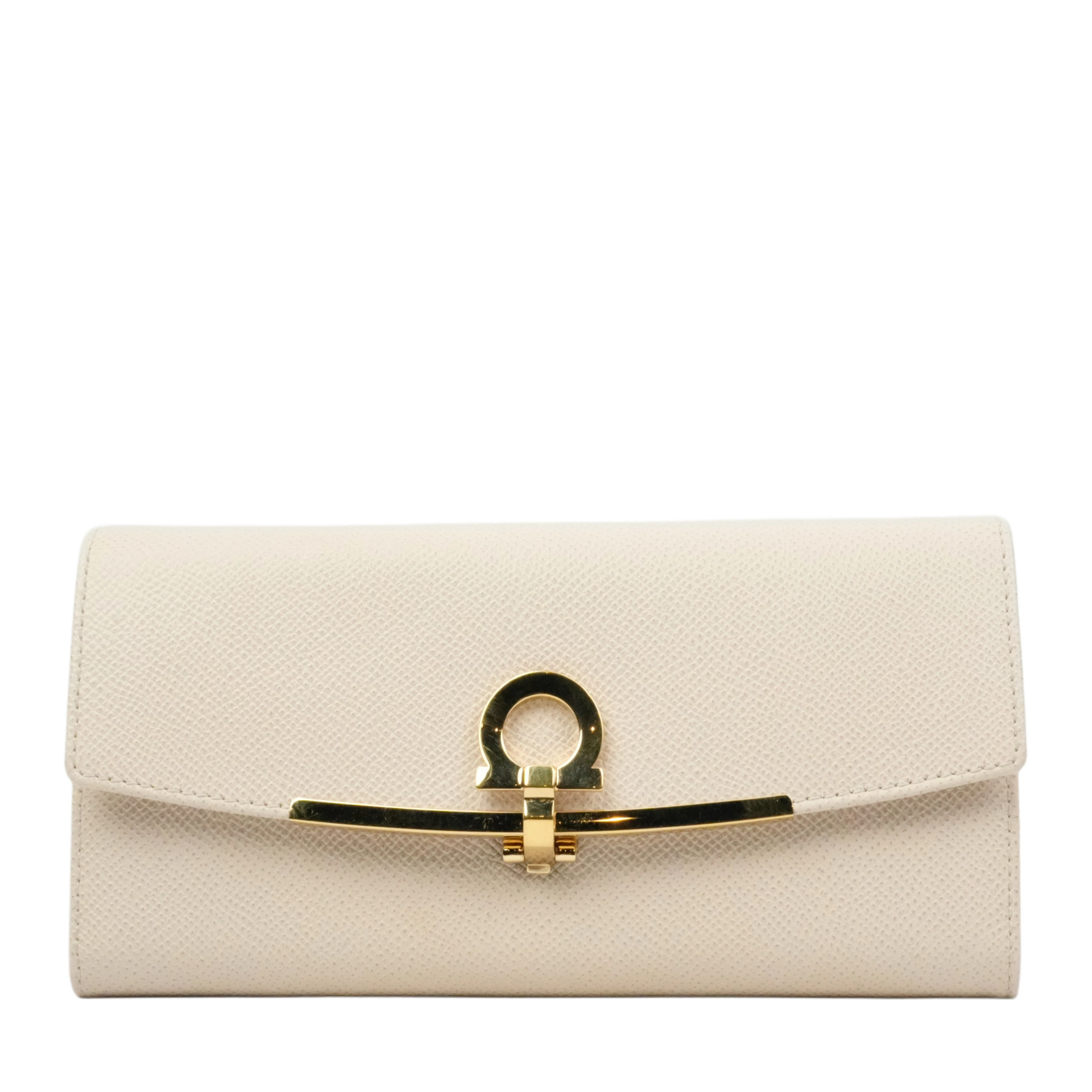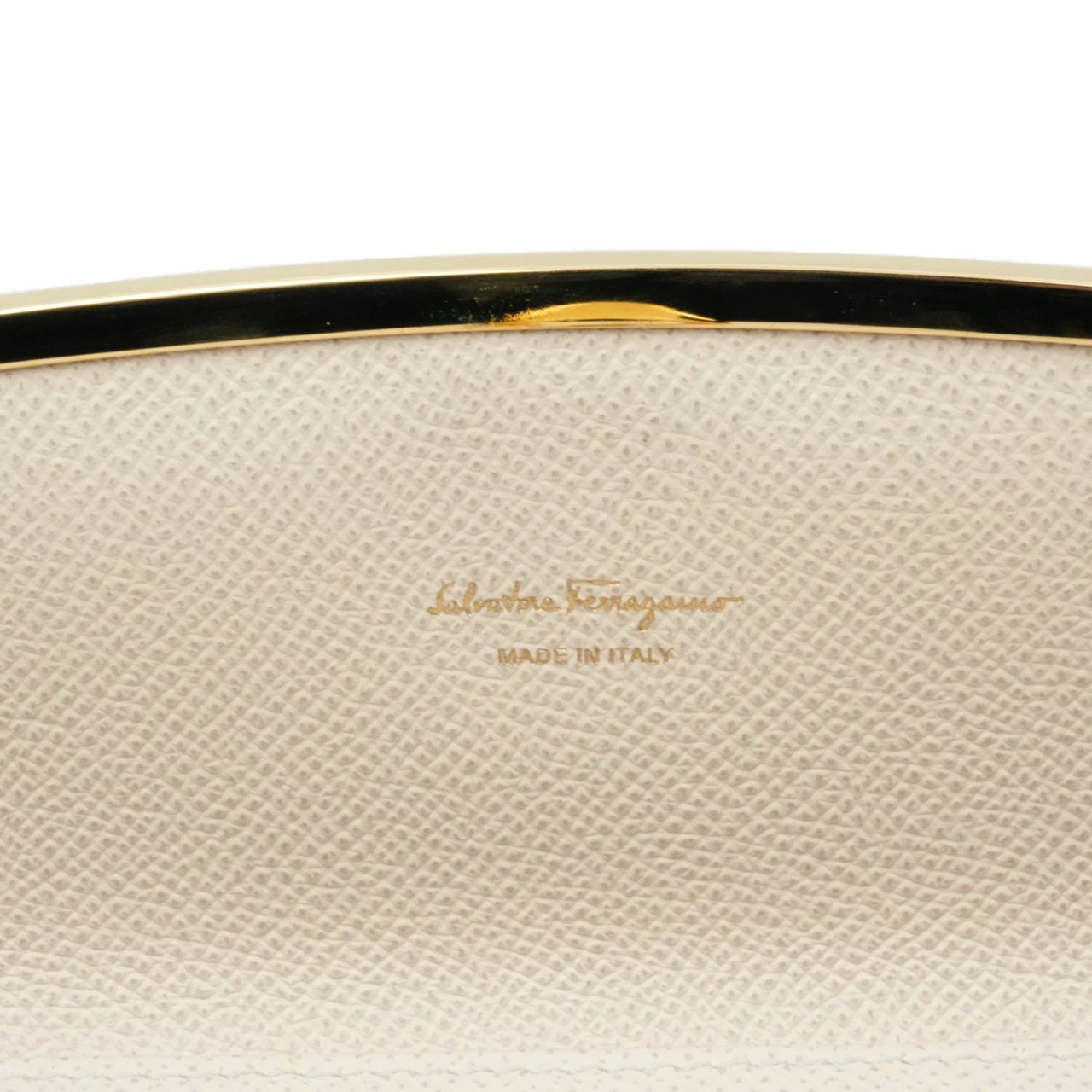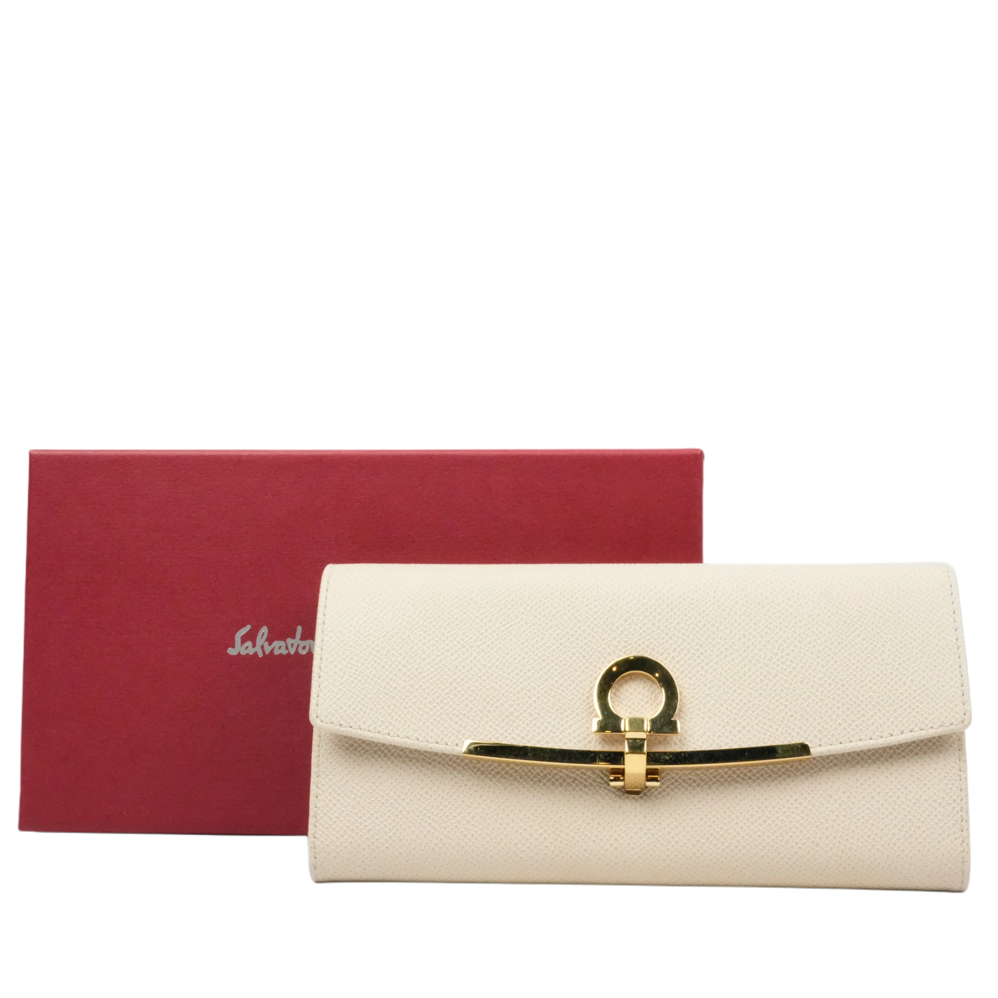【中古・VINTAGE】 SALVATORE FERRAGAMO サルヴァトーレフェラガモ ガンチーニ 長財布 ホワイト ゴールド レザー Gancini long Wallet