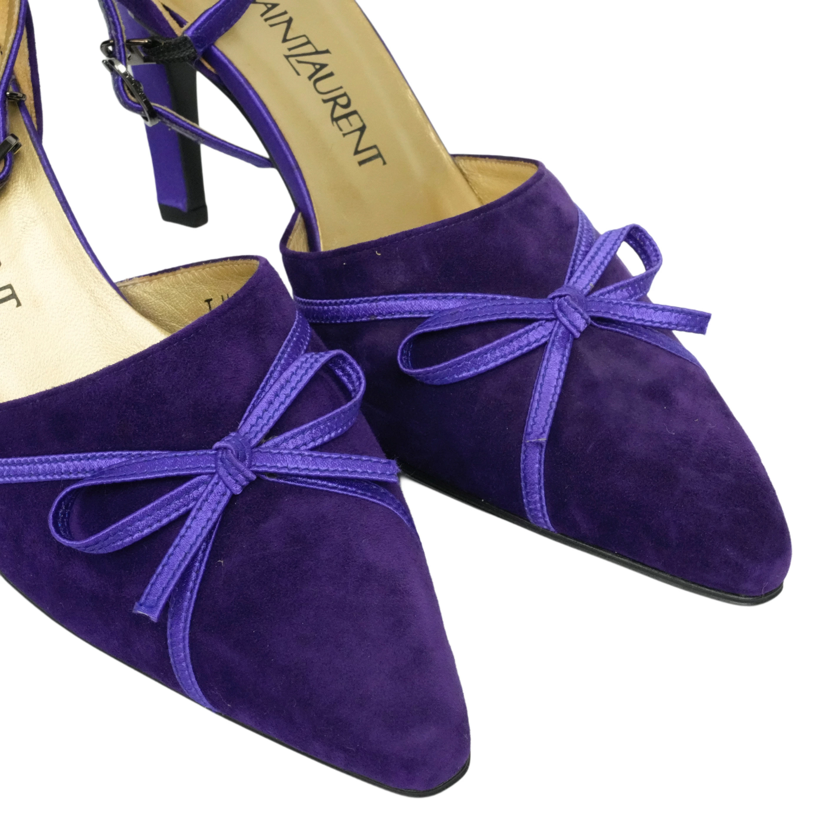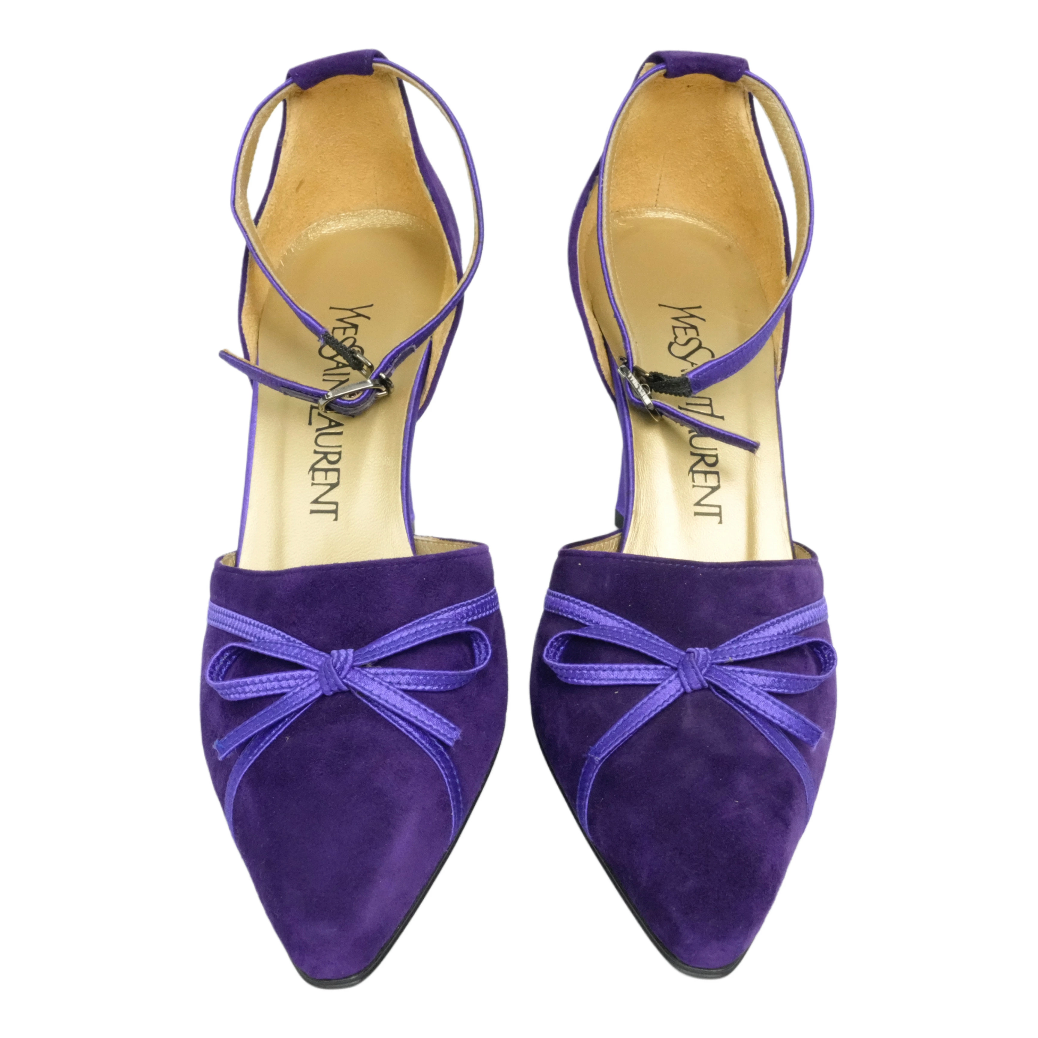 【中古・VINTAGE】 YVES SAINT LAURENT イヴサンローラン パンプス ブルーリボン ブルー ヴィンテージ