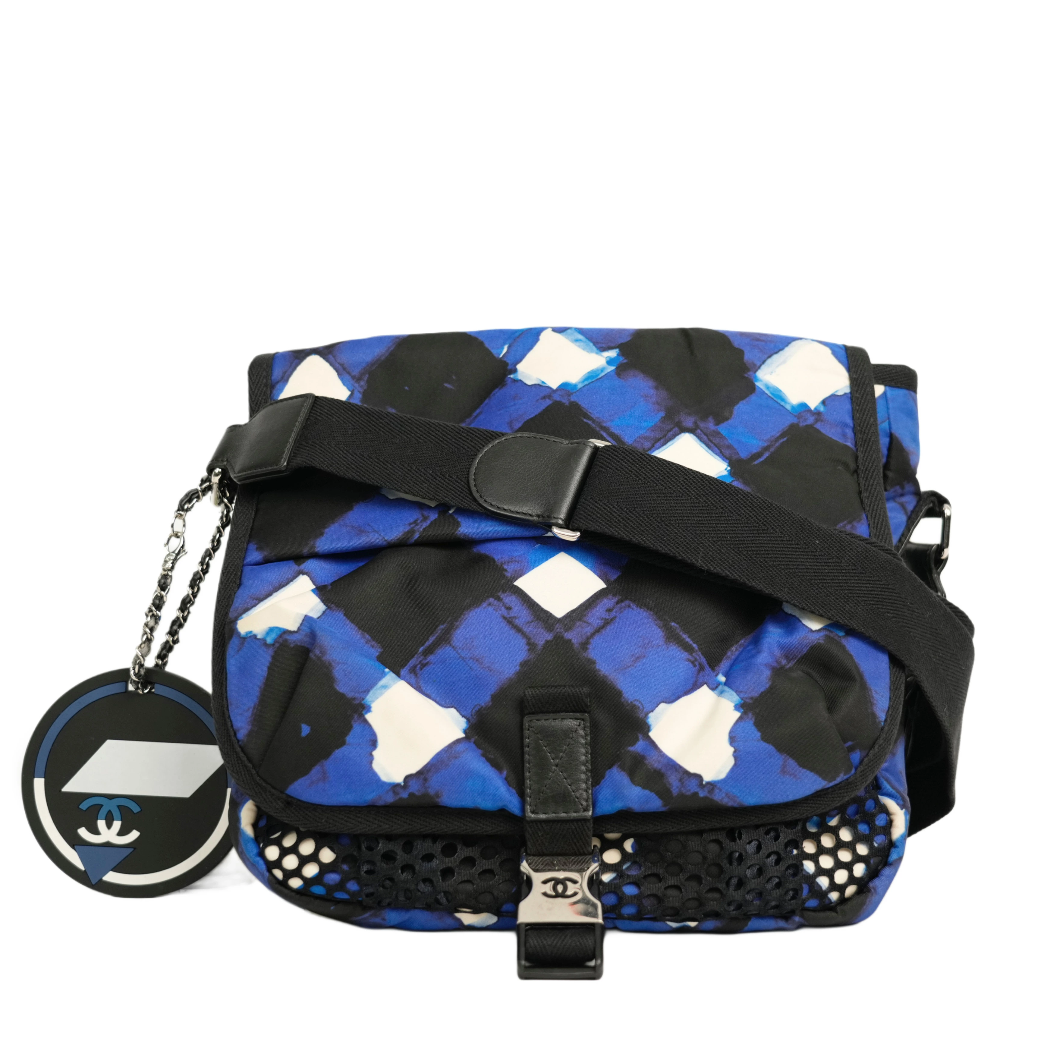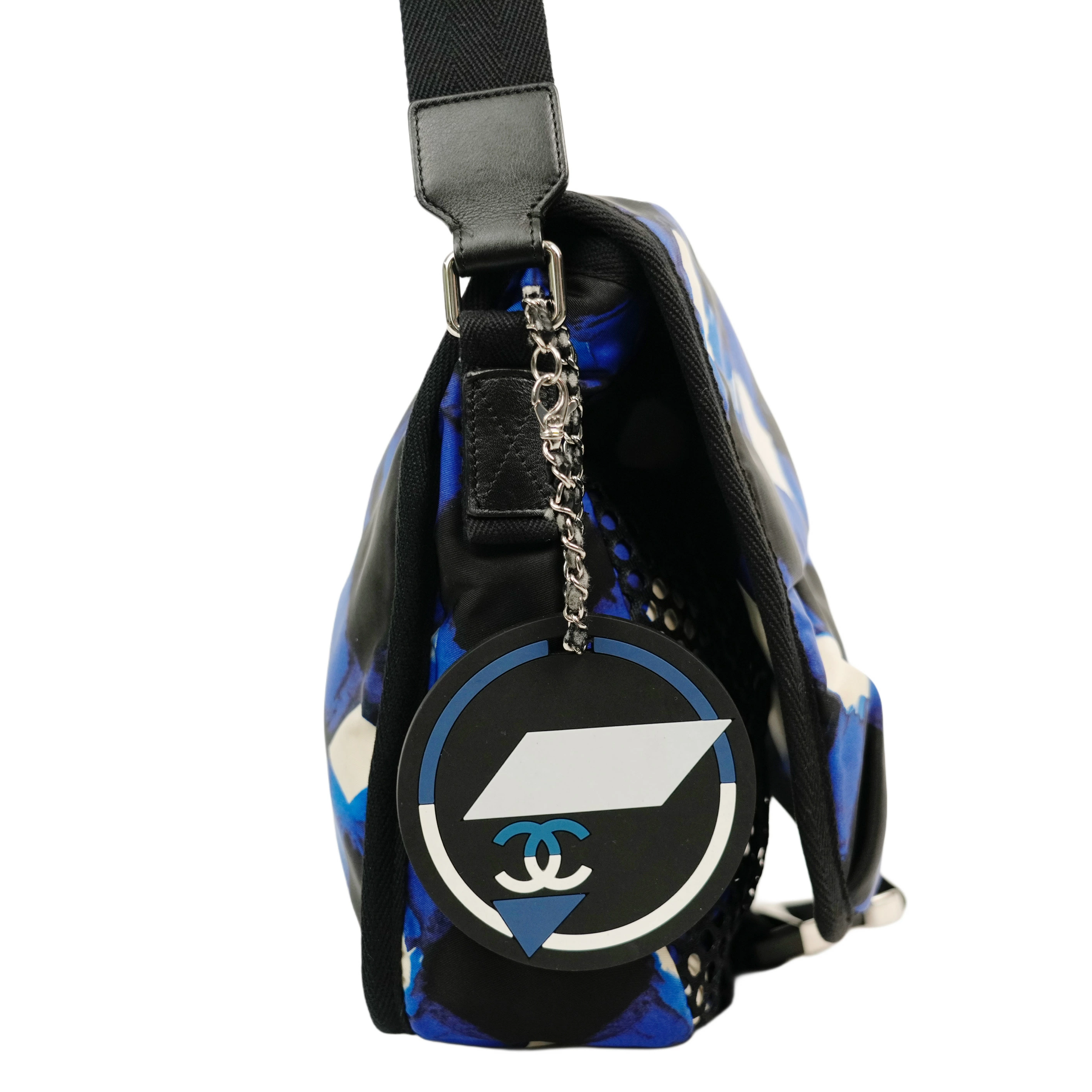 [Pre-owned/VINTAGE] CHANEL Airline Shoulder Bag in Leather, Blue, Black, and Silver.