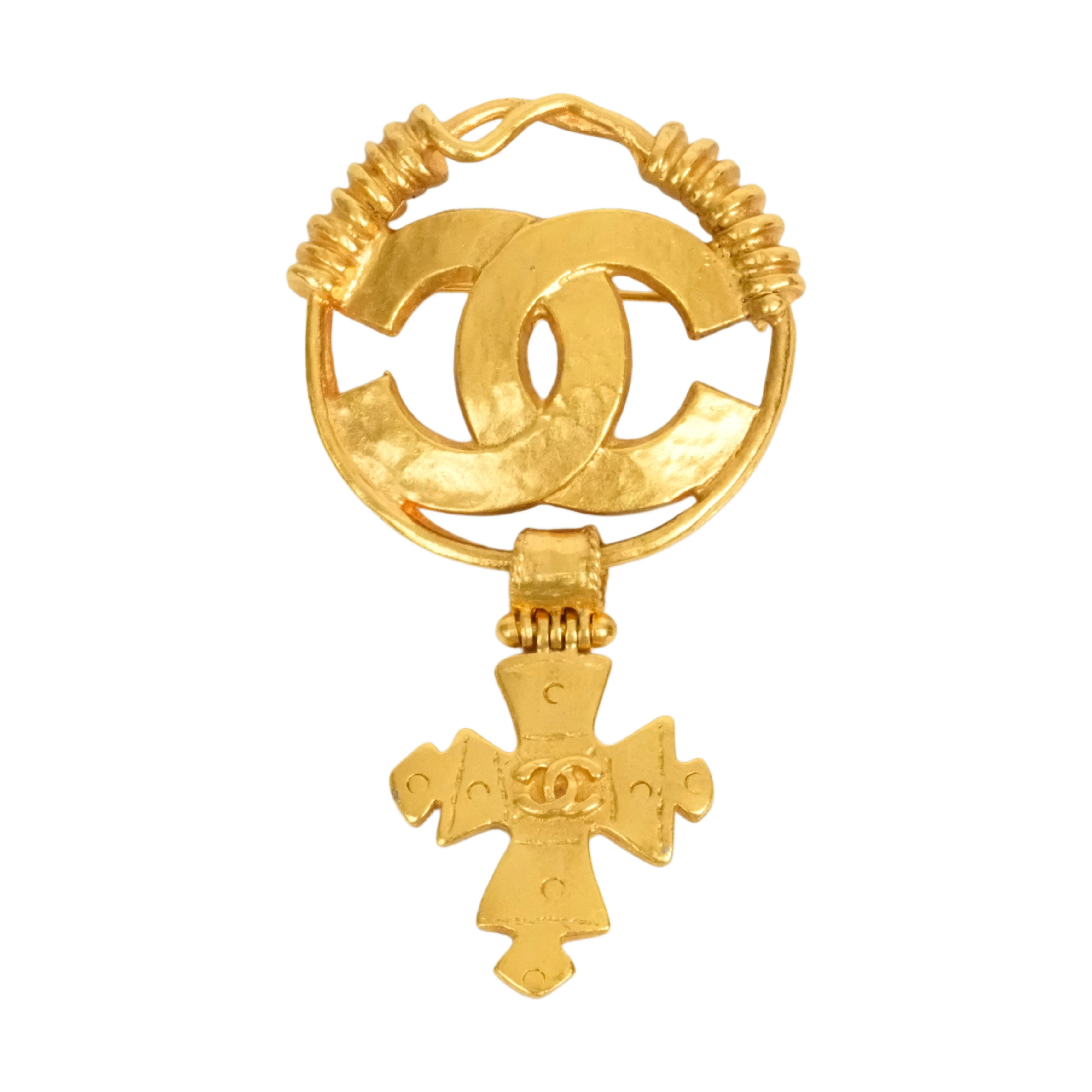 【中古・VINTAGE】CHANEL シャネル ココマーク クロスモチーフ ブローチ ゴールド ヴィンテージ Coco Mark Cross Motif Brooch