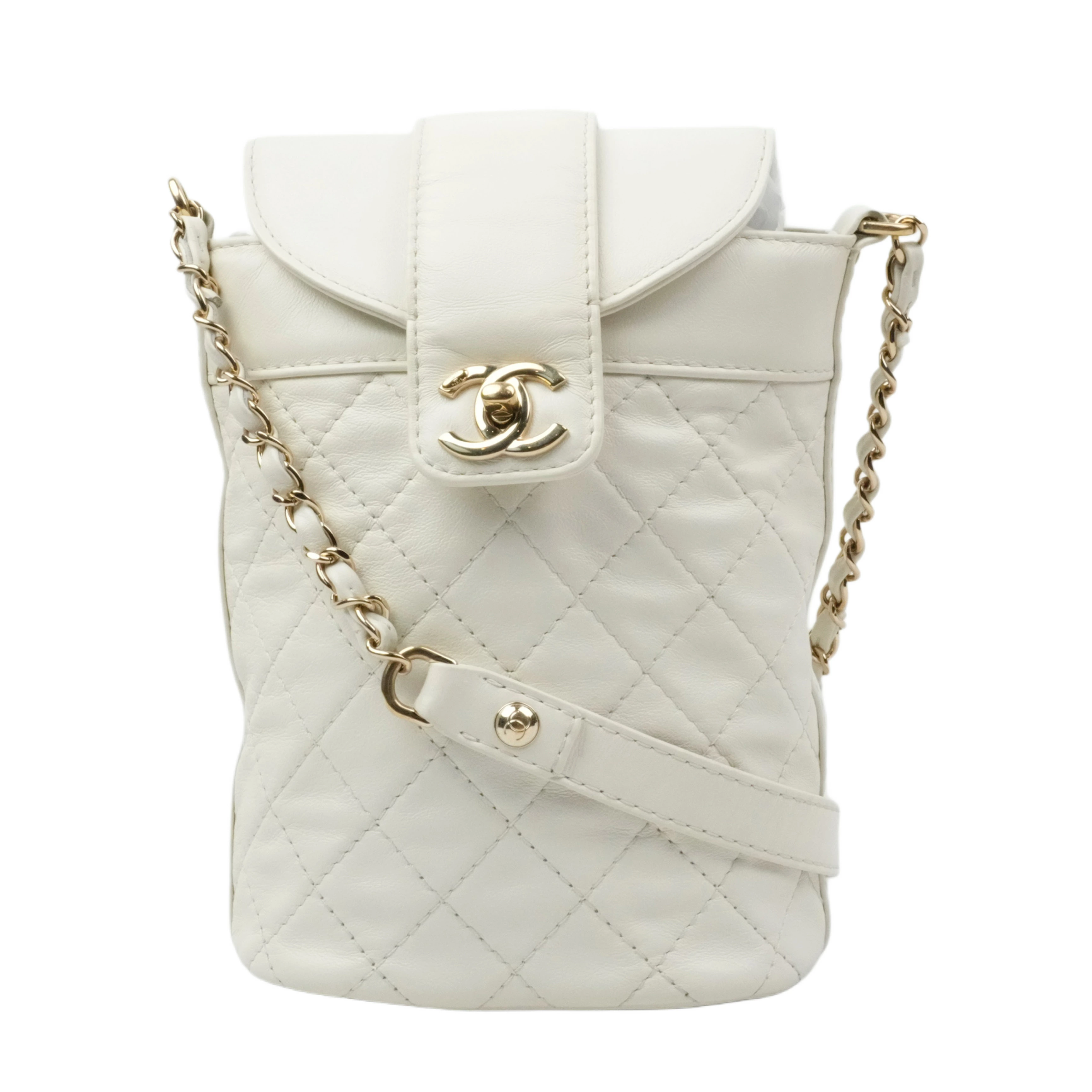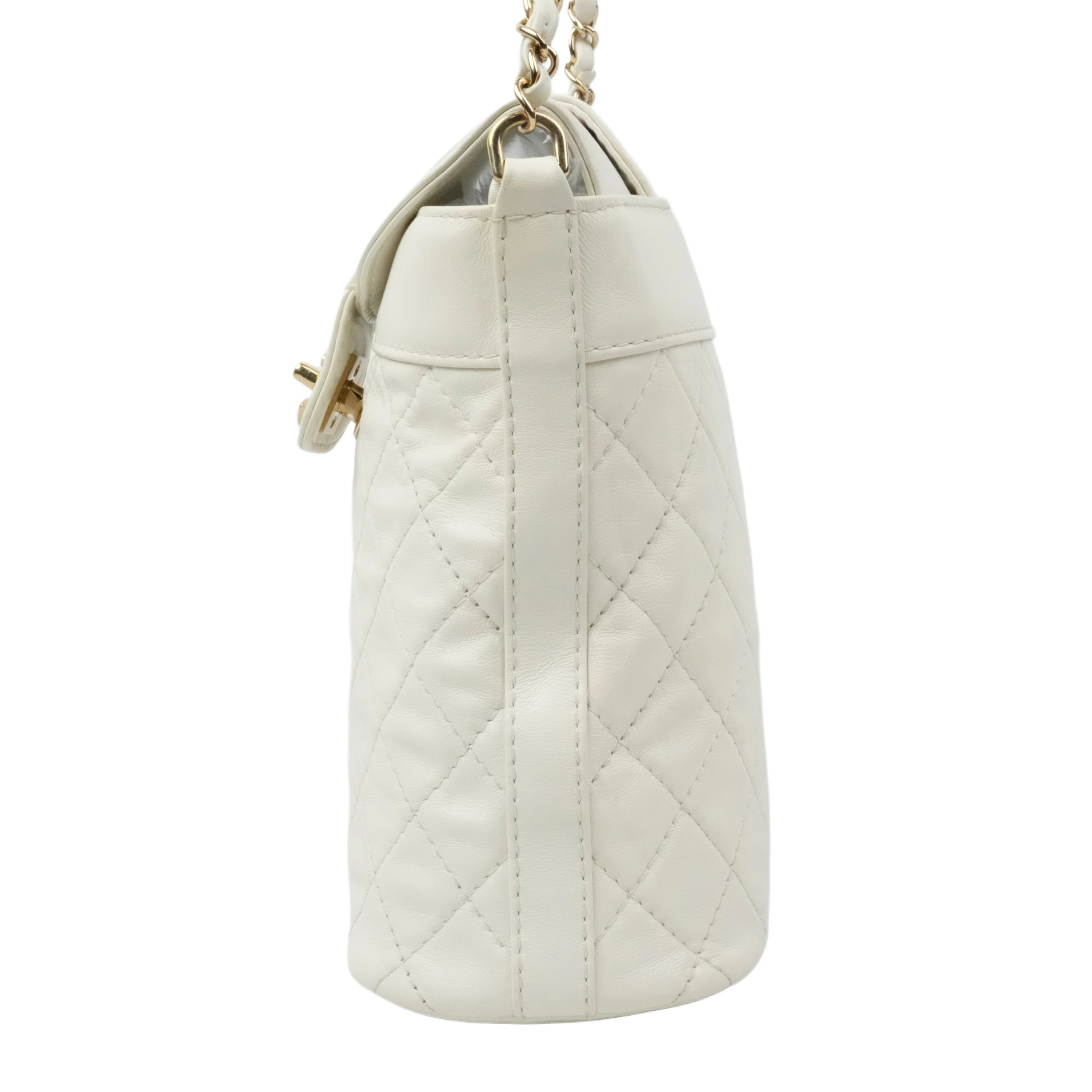 【中古・VINTAGE】CHANEL シャネル ショルダーバッグ レザー クリーム ゴールド ヴィンテージ Shoulder Bag