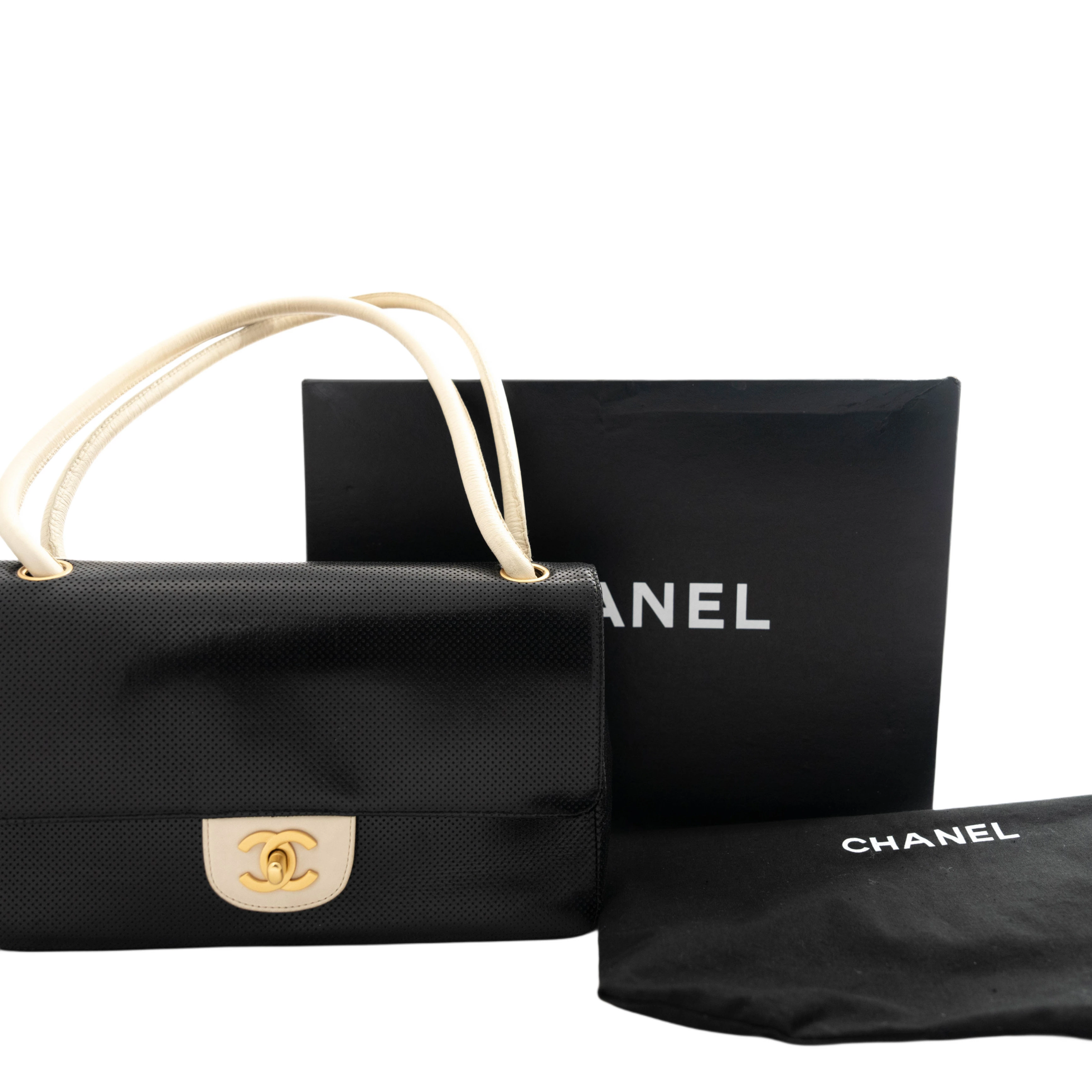 【中古・VINTAGE】CHANEL シャネル 2000-2002 ココマーク パンチング ショルダーバッグ ブラック ヴィンテージ 2000-2002 Coco Mark Punching Shoulder Bag