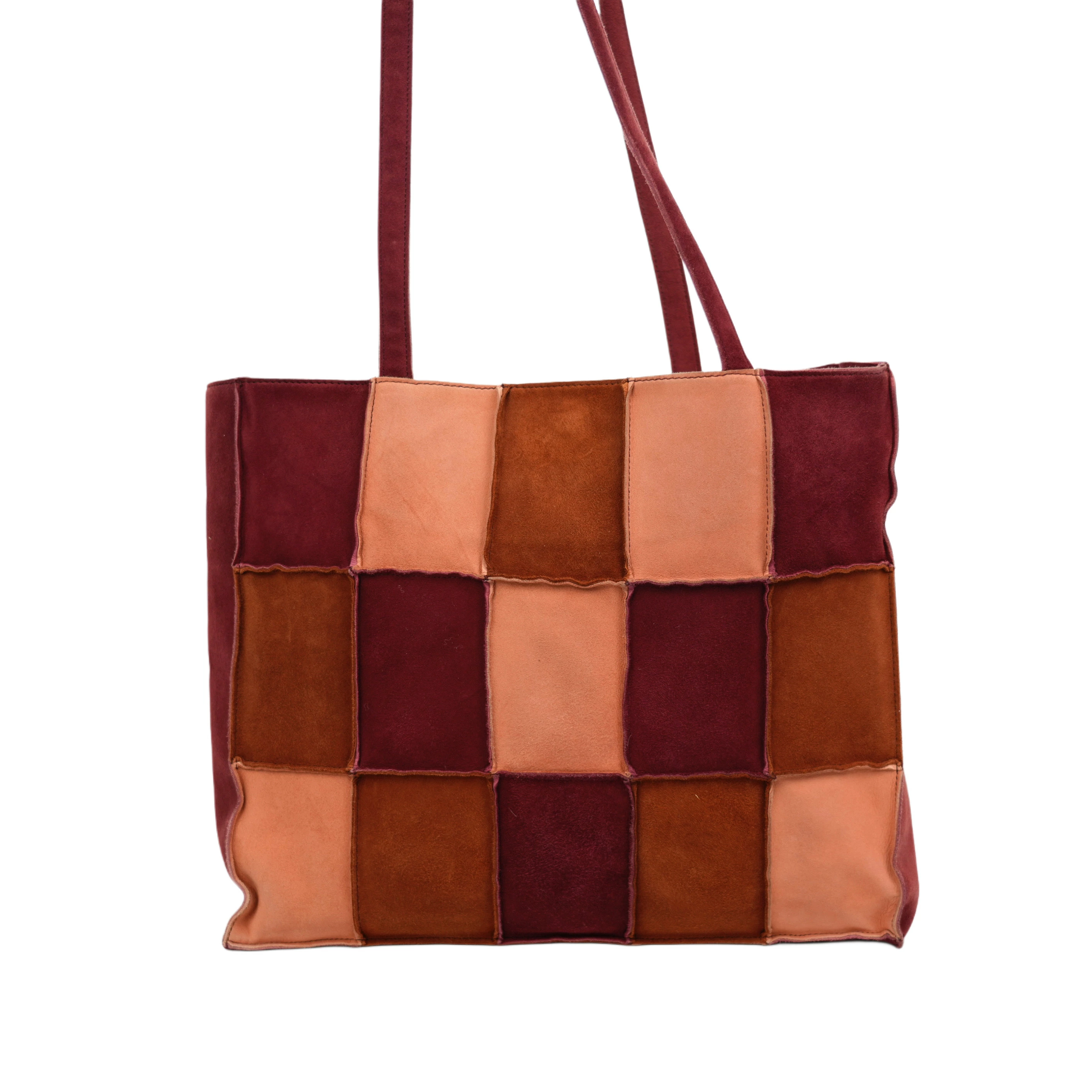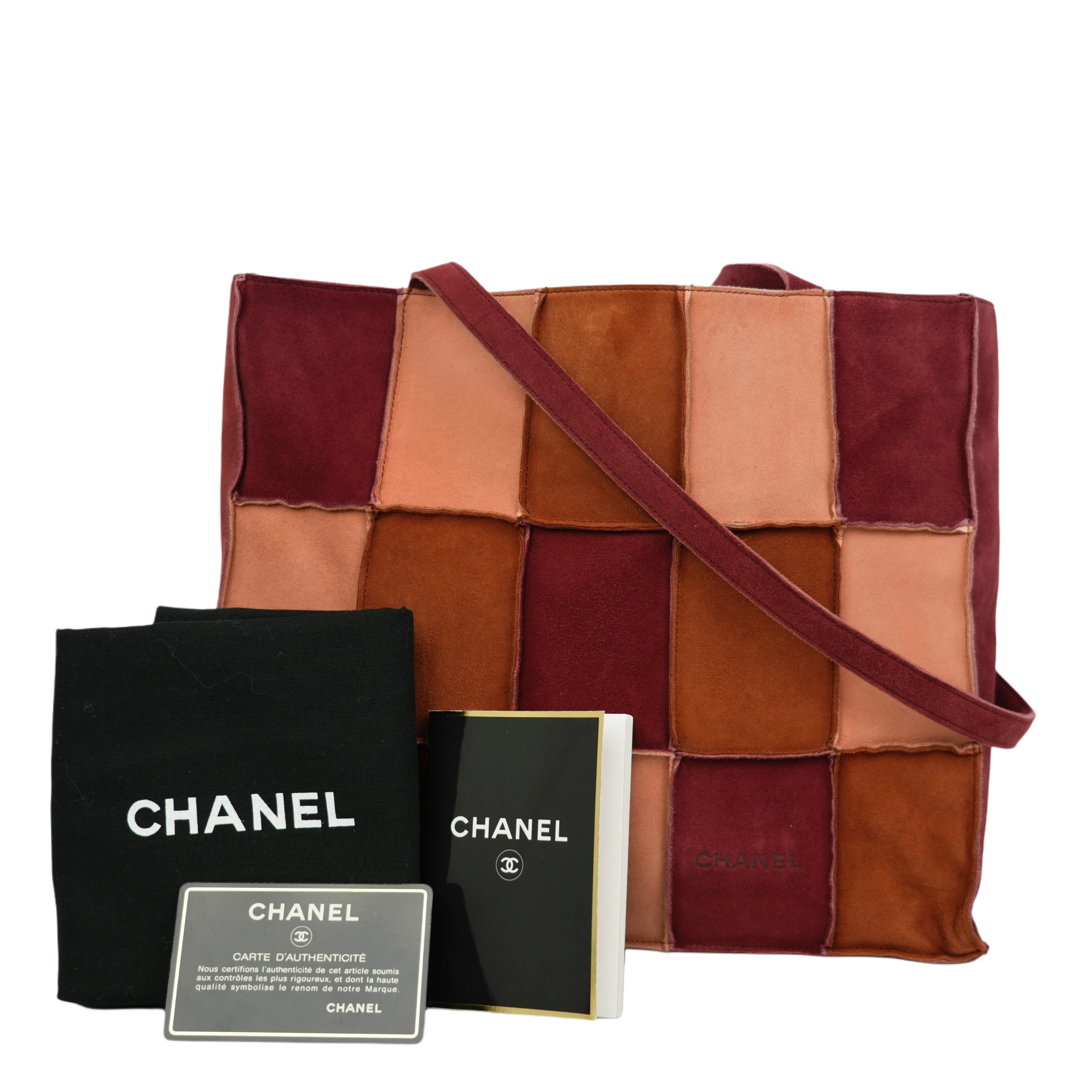 【中古・VINTAGE】CHANEL シャネル 2000-2002 パッチワーク スエード トートバッグ レッド ブラウン ピンク ヴィンテージ 2000?2002 Patchwork Suede Tote Bag