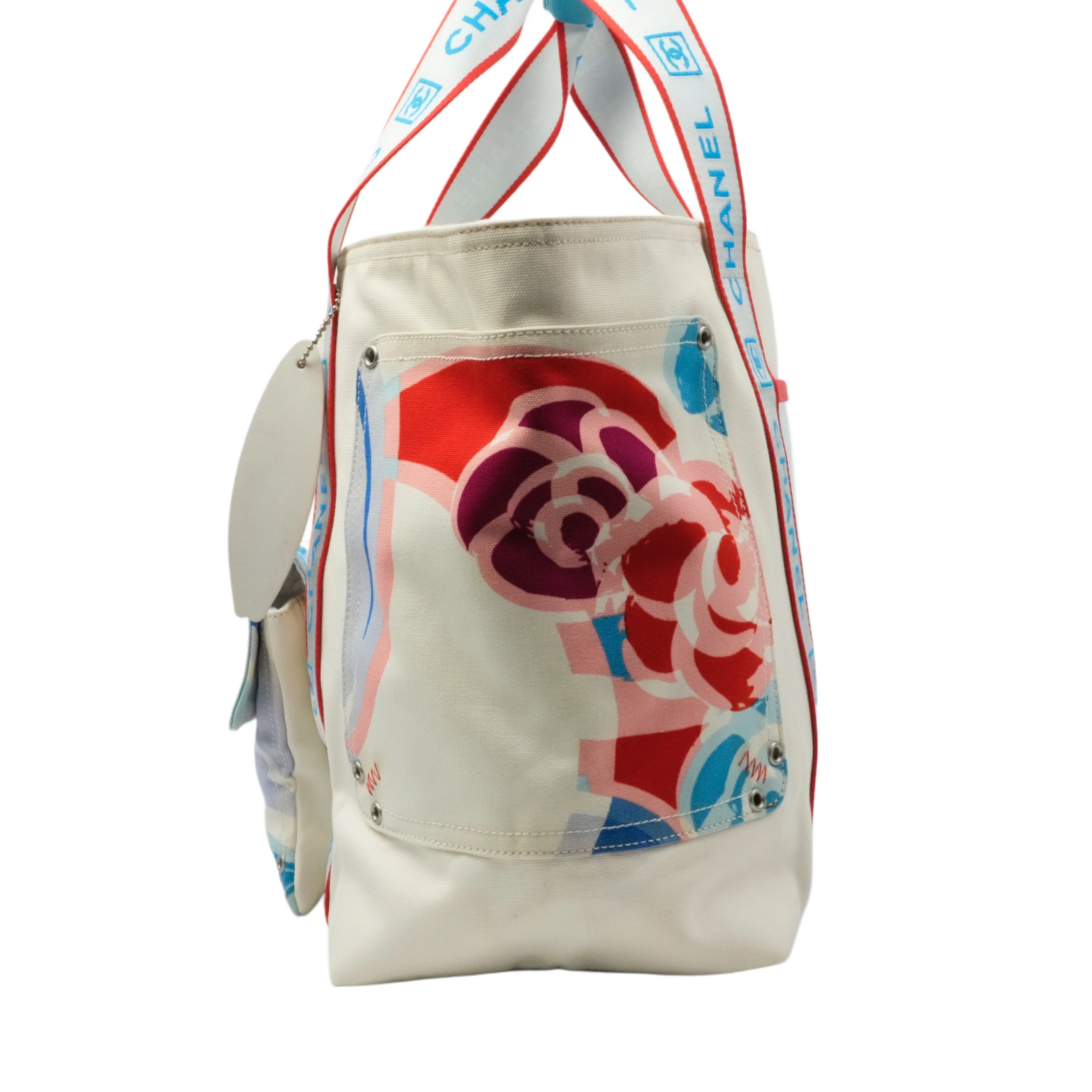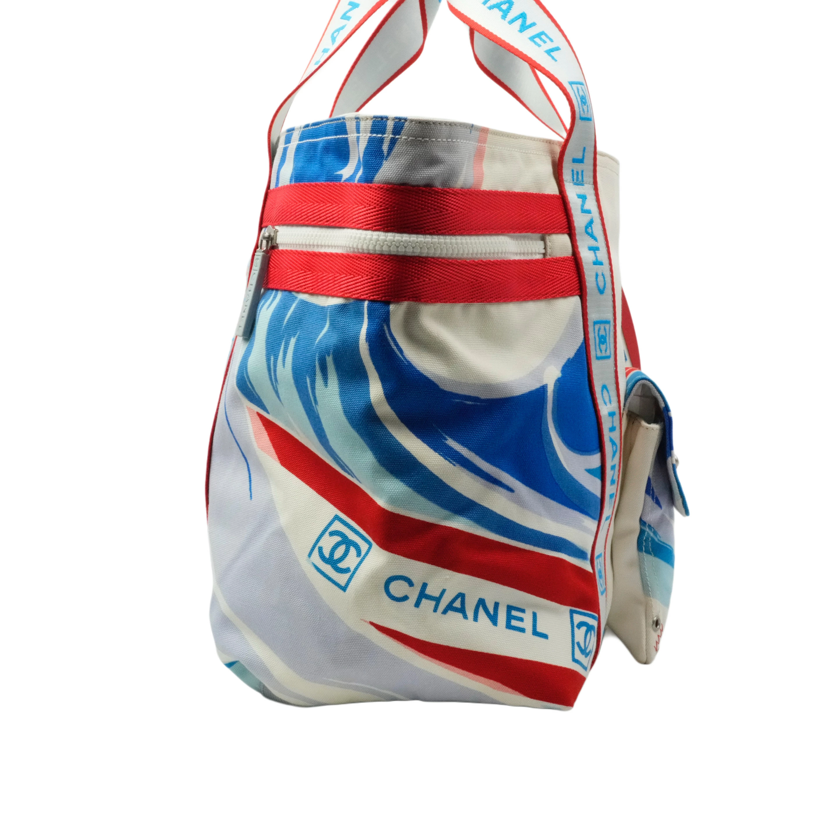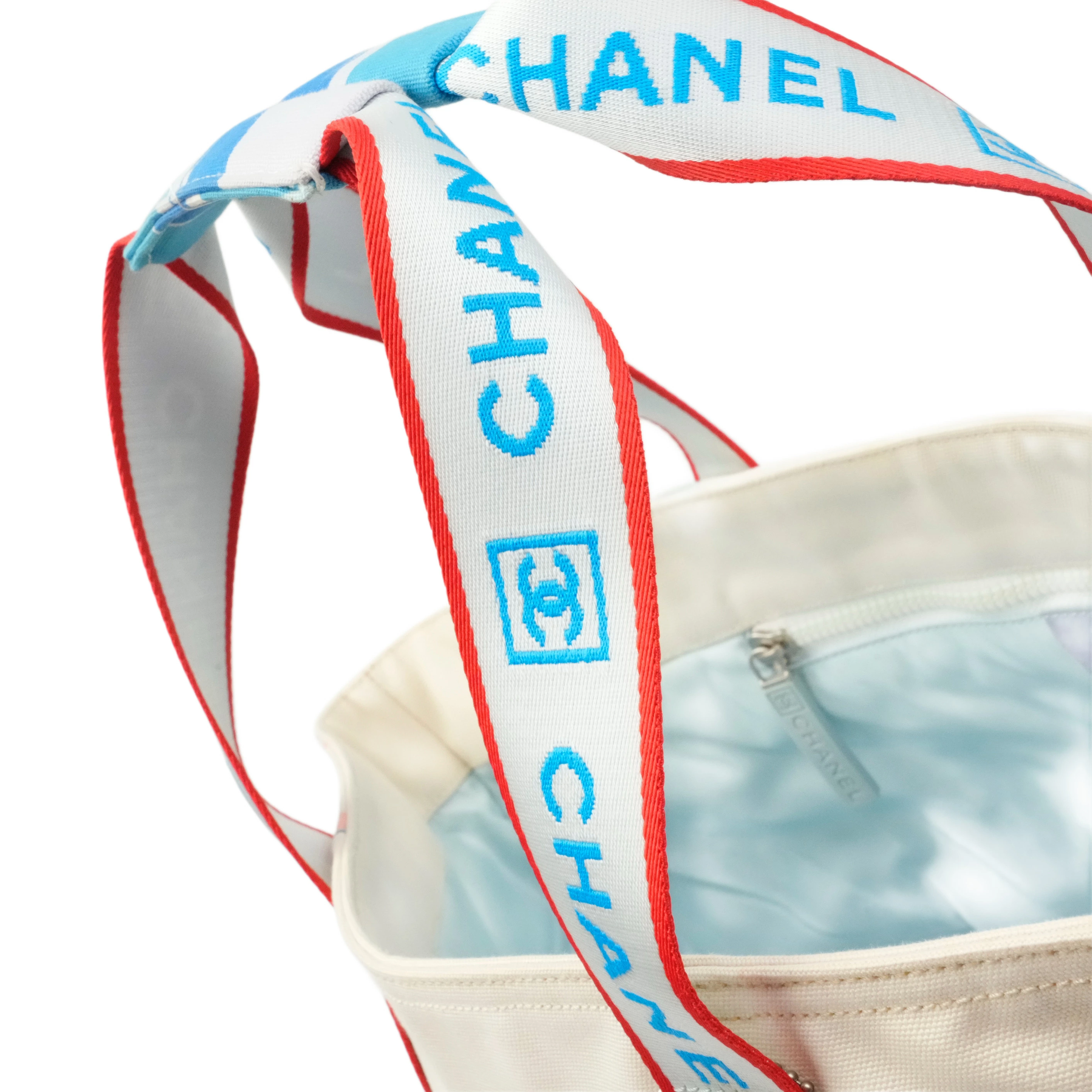 【中古・VINTAGE】CHANEL シャネル 2005-2006 スポーツライン サーフィン トートバッグ/ショルダーバッグ キャンバス ホワイト ブルー レッド ヴィンテージ Sports Line Surfing Tote Bag/Shoulder Bag 2Way