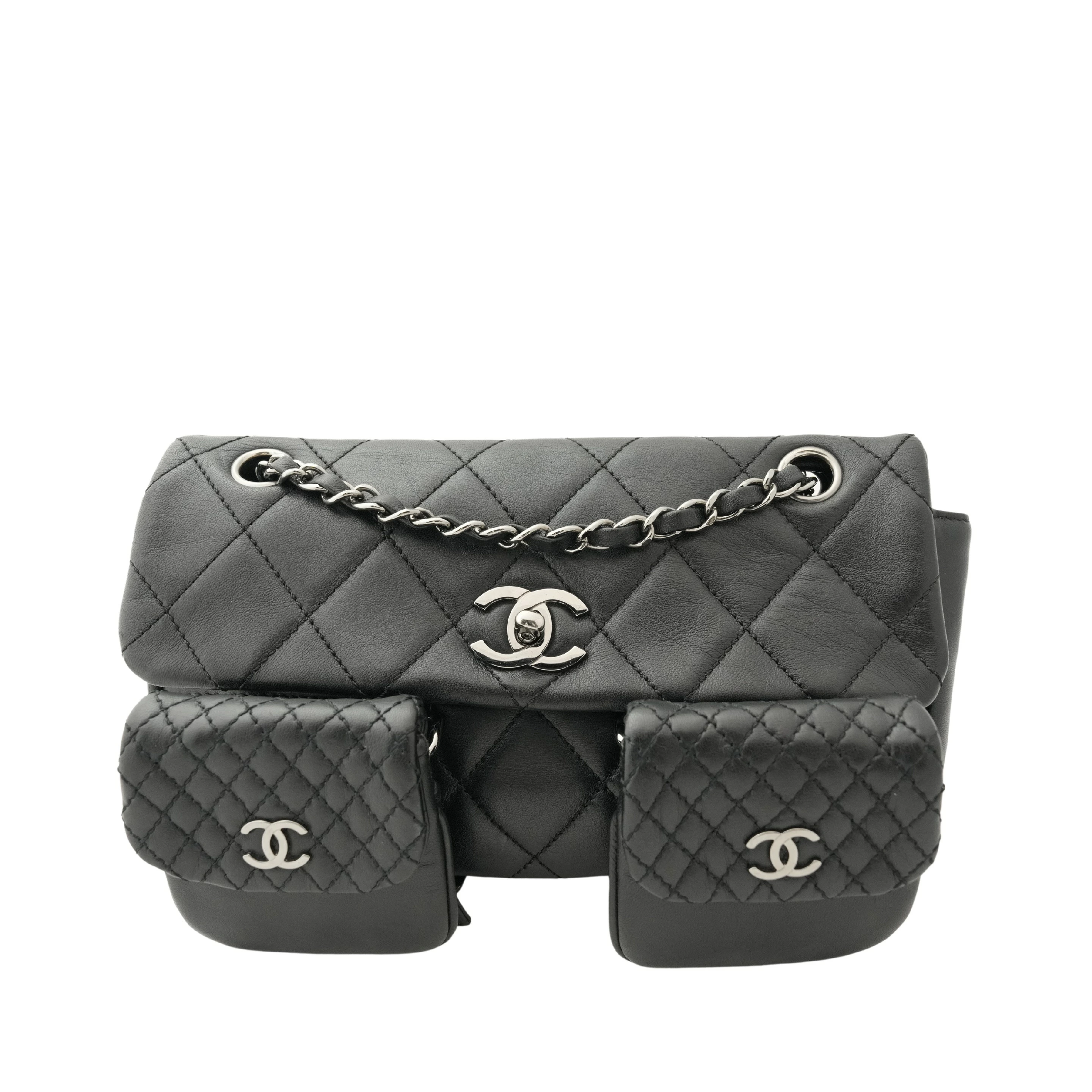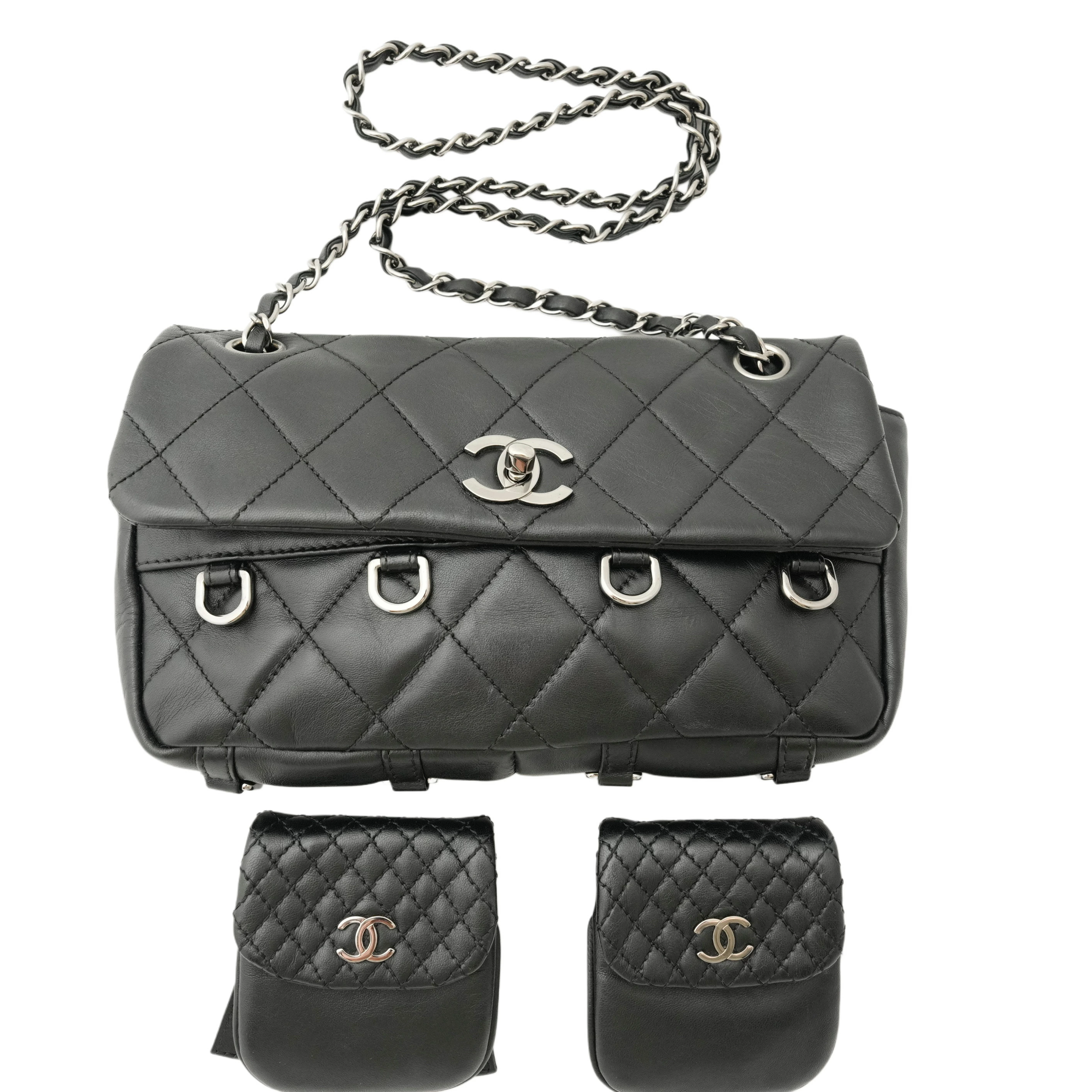 【中古・VINTAGE】CHANEL シャネル 2006-2008 マトラッセ ターンロック マルチポシェット ラムスキン ショルダーバッグ ブラック ヴィンテージ 2006?2008 Matelass? Turn-Lock Multi-Pochette Lambskin Shoulder Bag