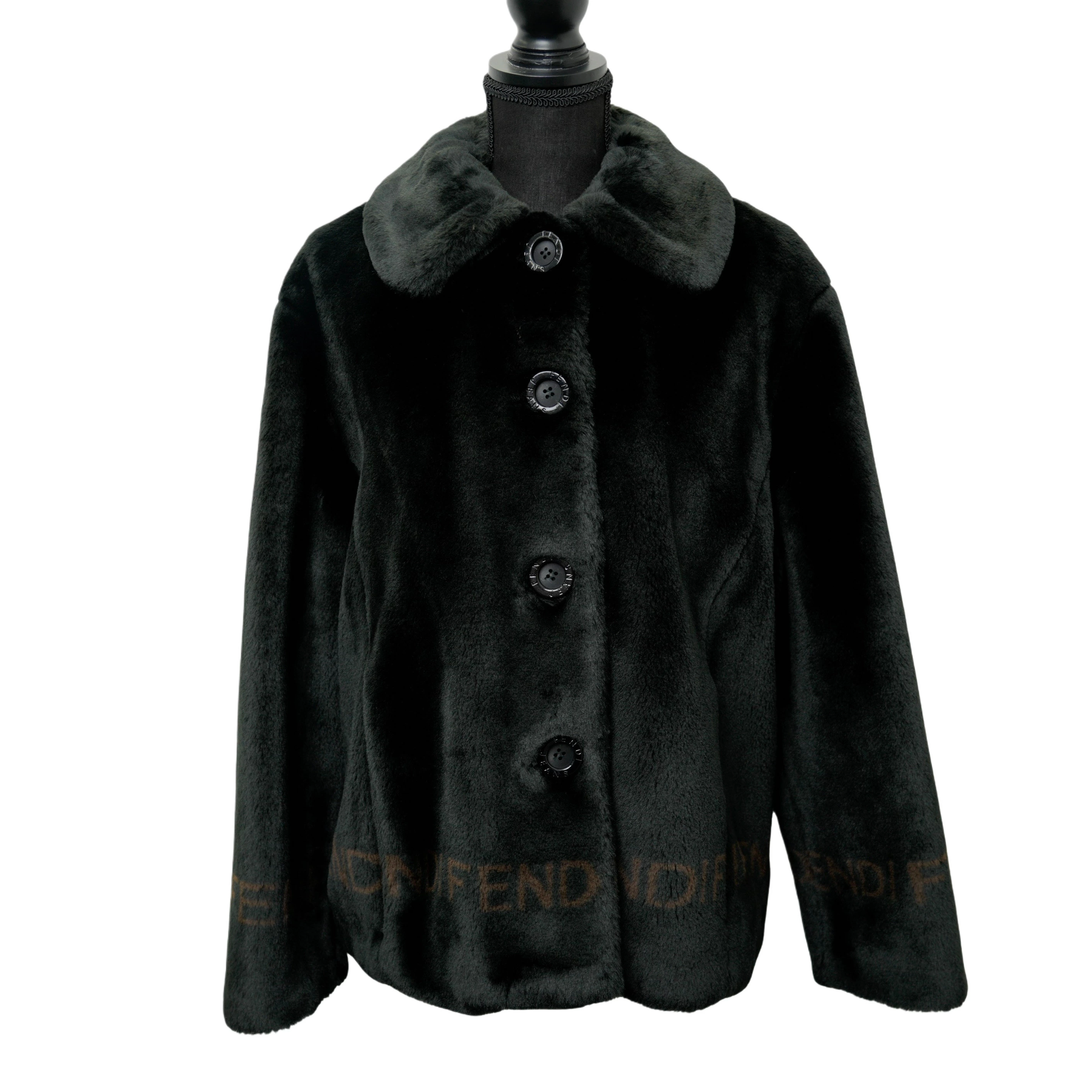 【中古・VINTAGE】FENDI フェンディ エコファージャケット 表記42 ブラック ヴィンテージ Eco-Fur Jacket