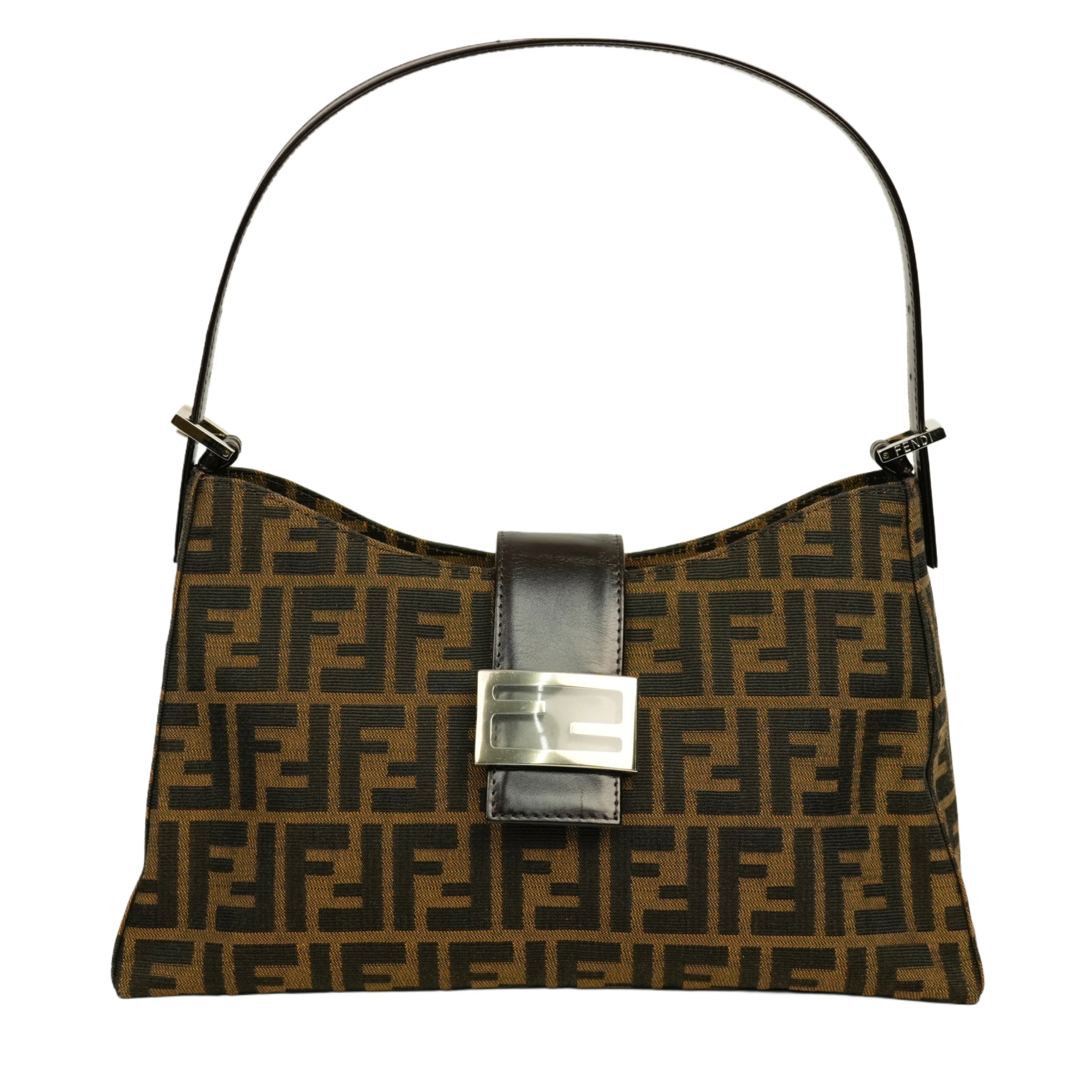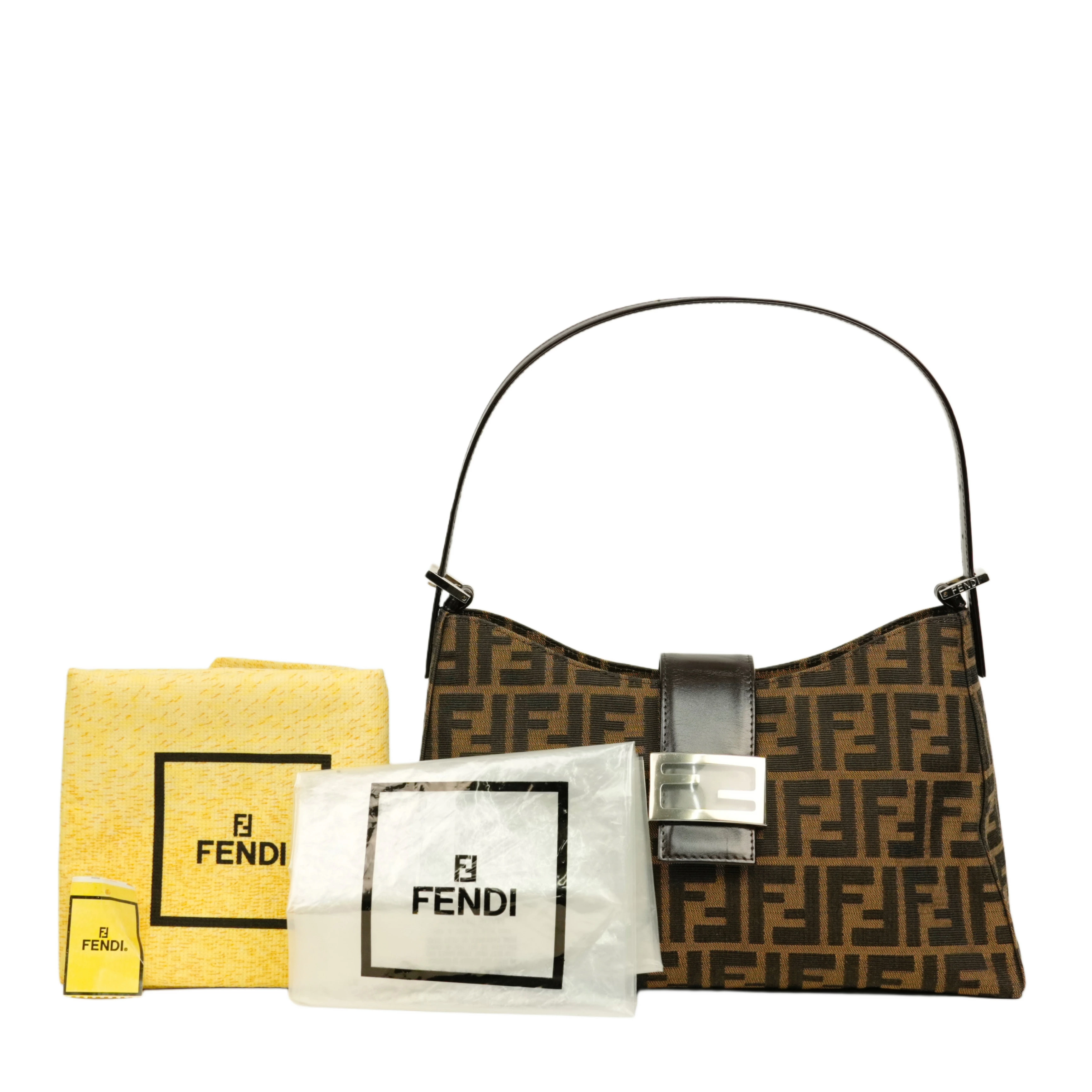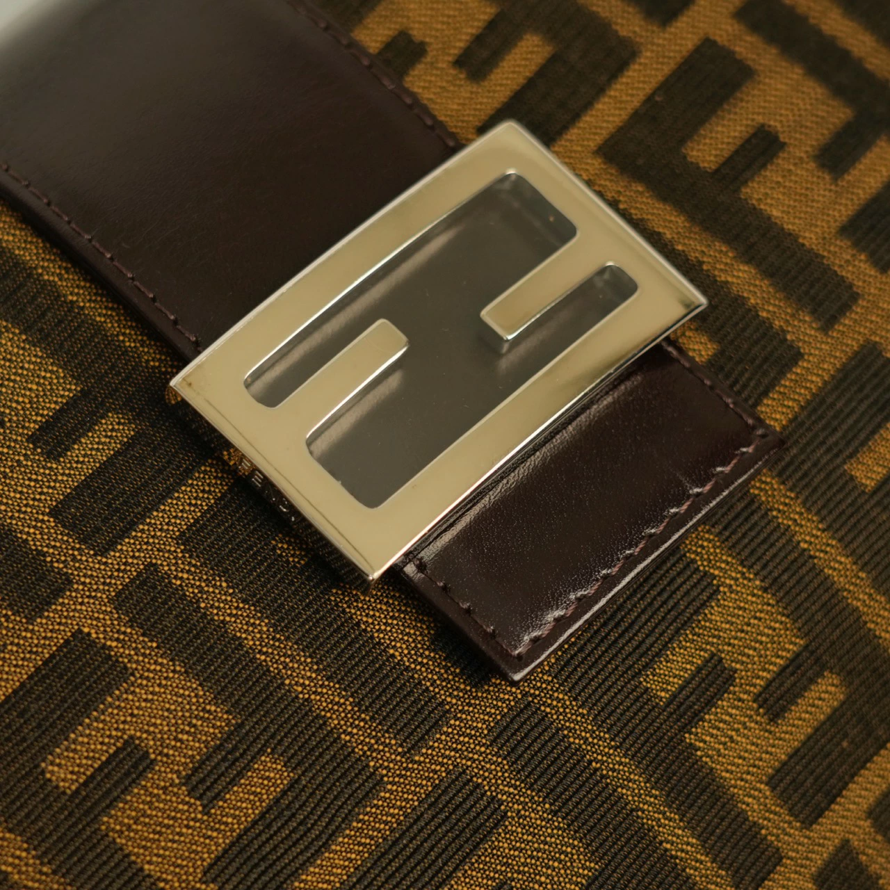 【中古・VINTAGE】FENDI フェンディ ズッカ ショルダーバッグ ジャカードキャンバス レザー ブラウン シルバー ヴィンテージ Zucca Shoulder Bag