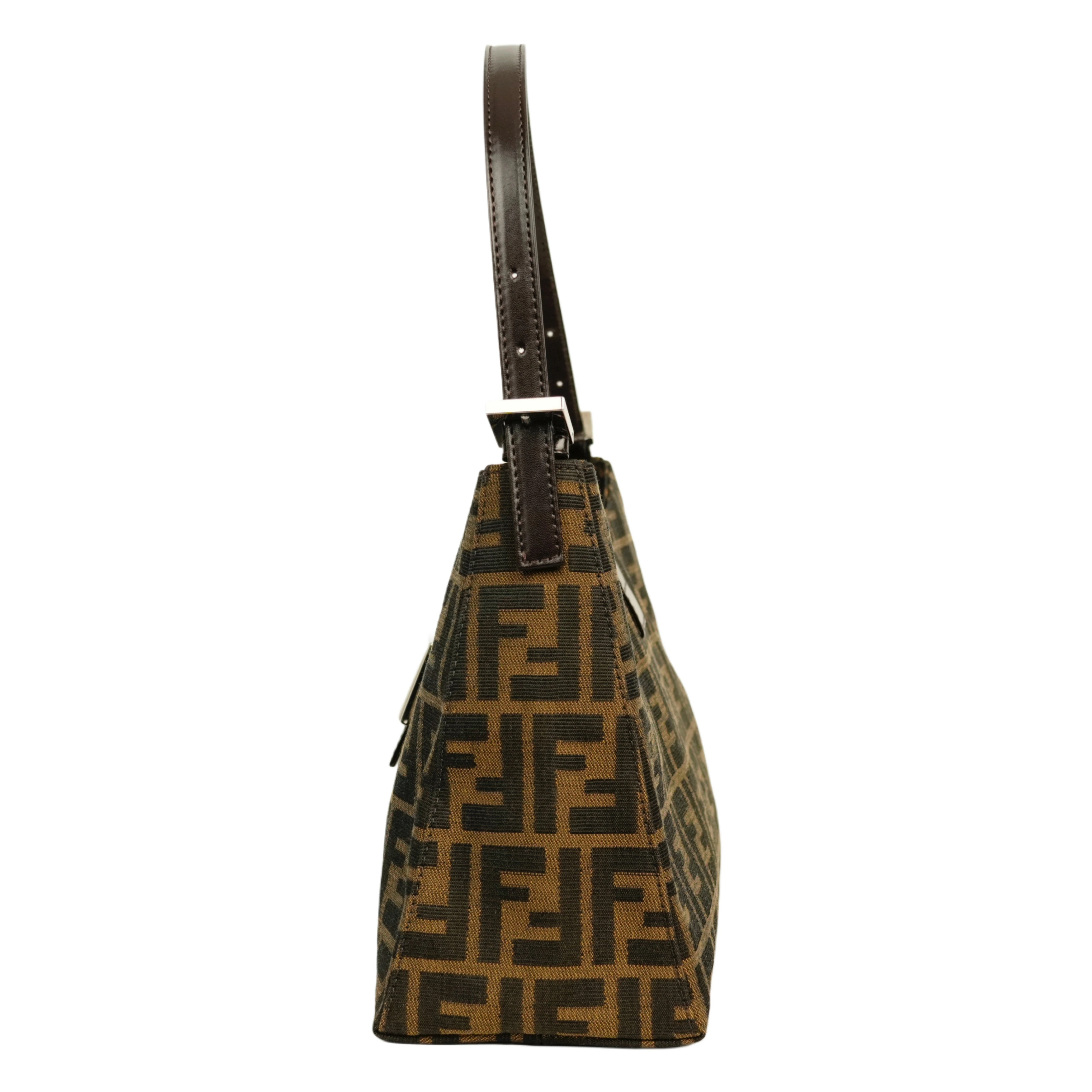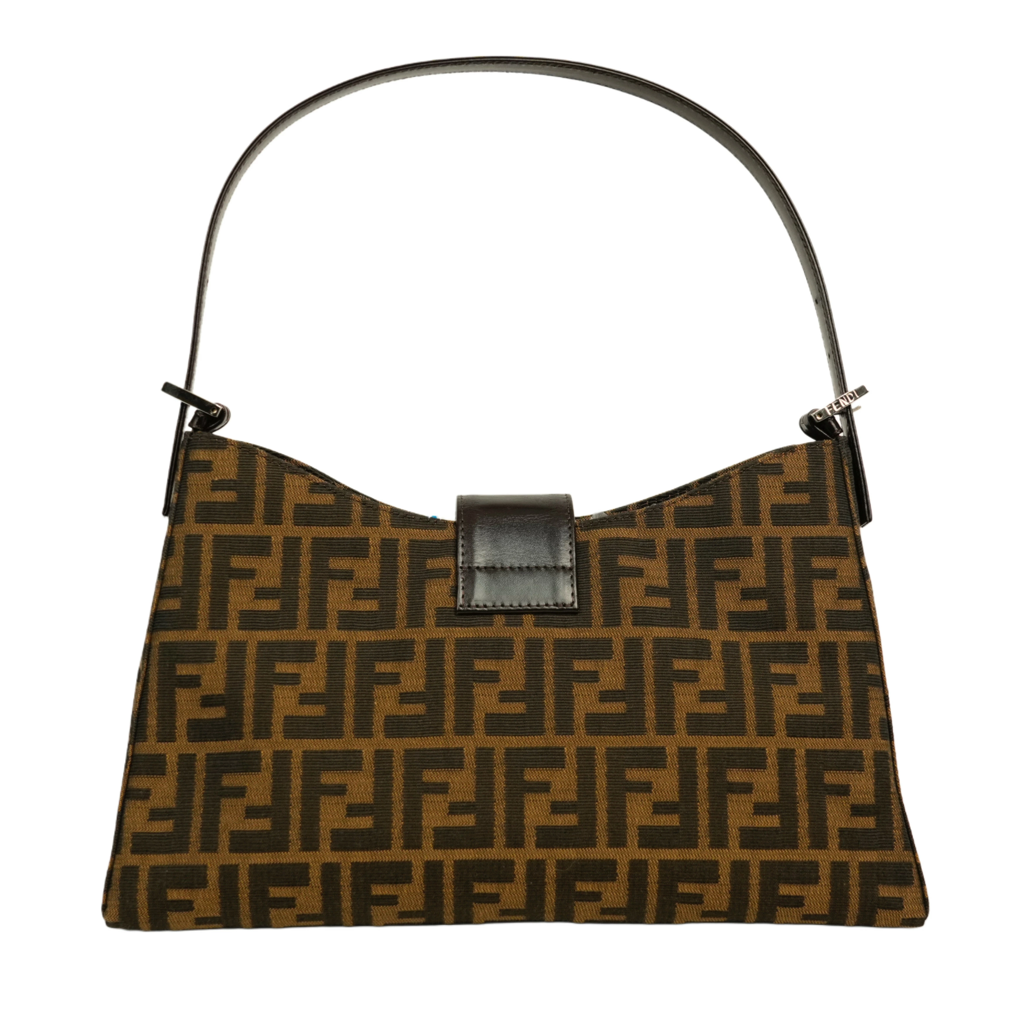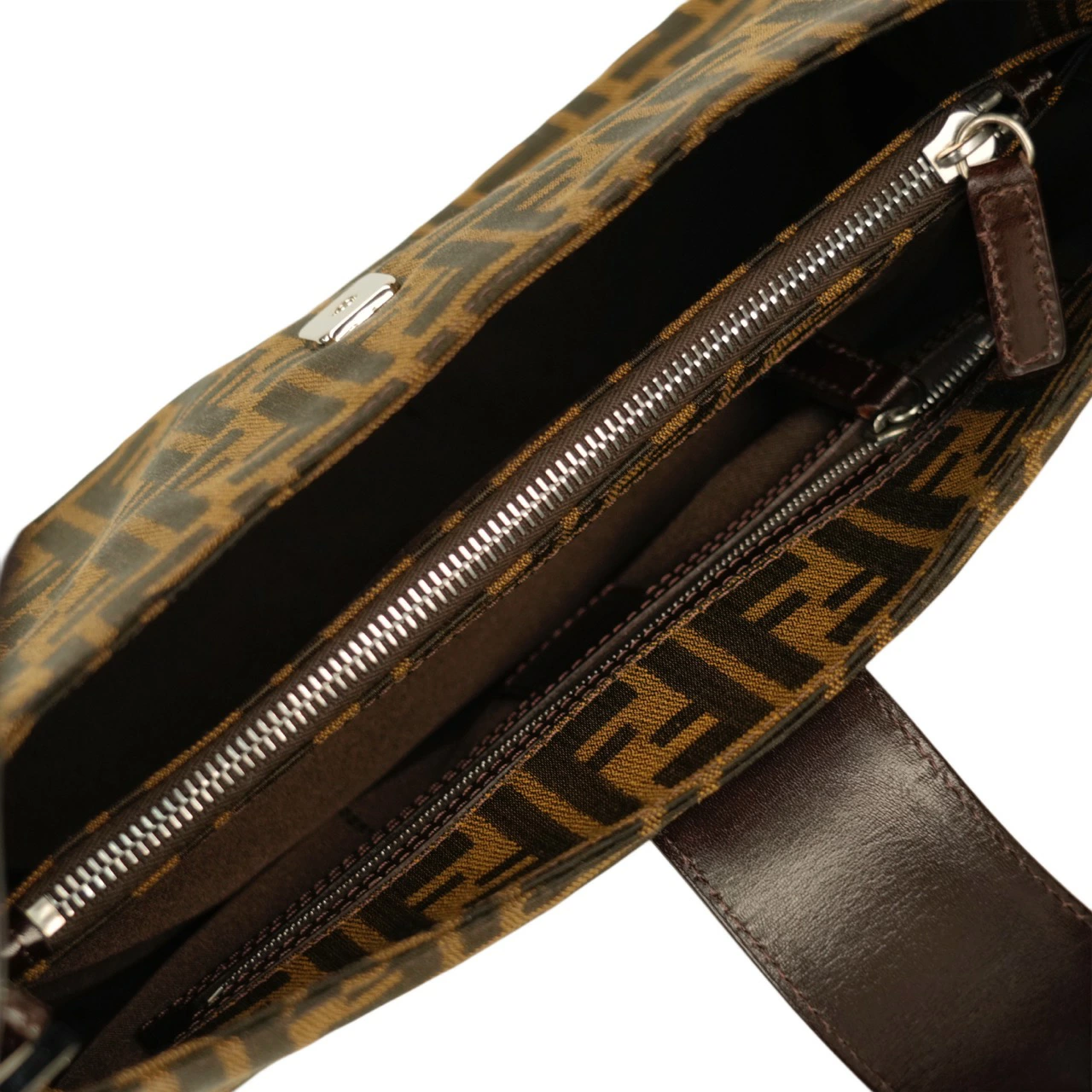 【中古・VINTAGE】FENDI フェンディ ズッカ ショルダーバッグ ジャカードキャンバス レザー ブラウン シルバー ヴィンテージ Zucca Shoulder Bag