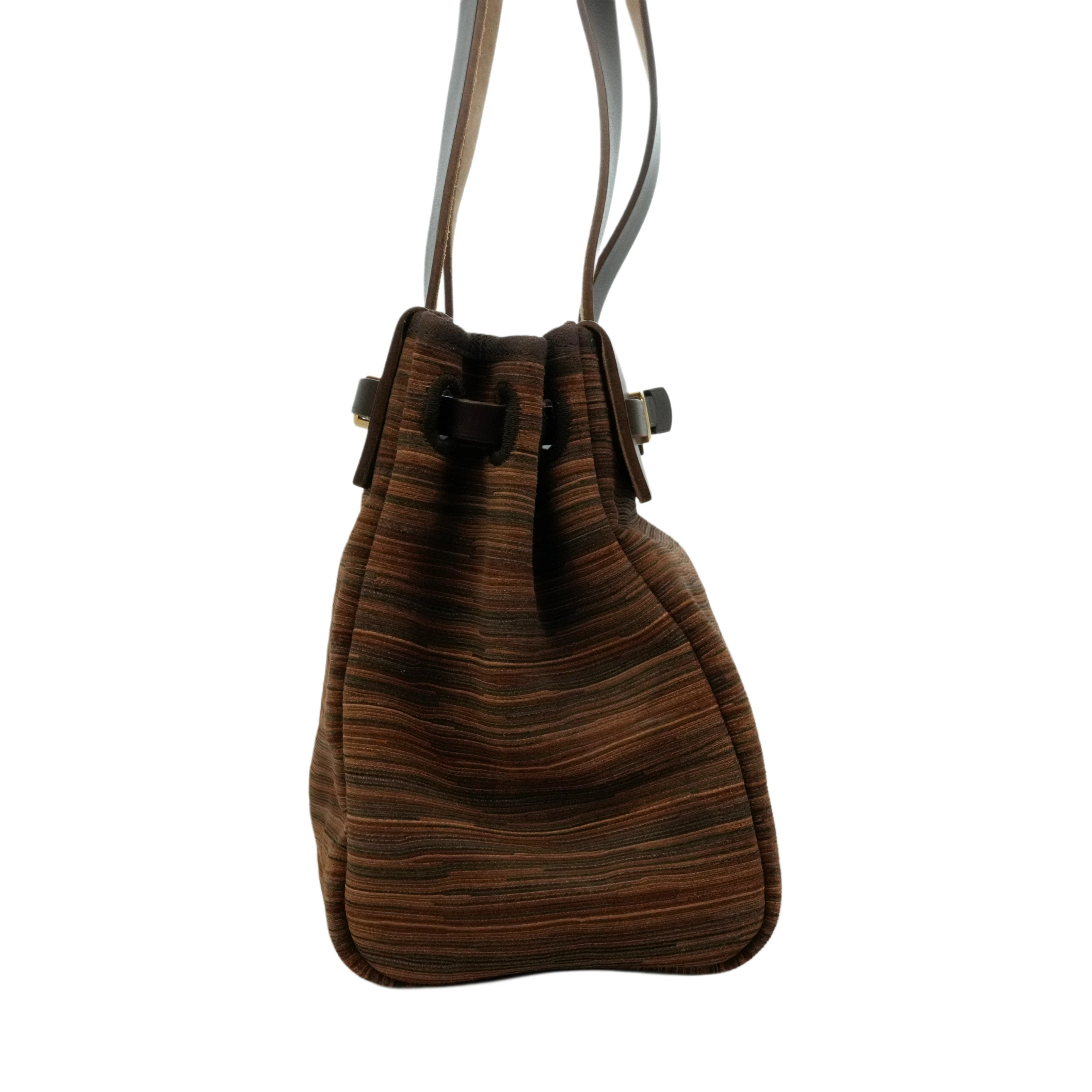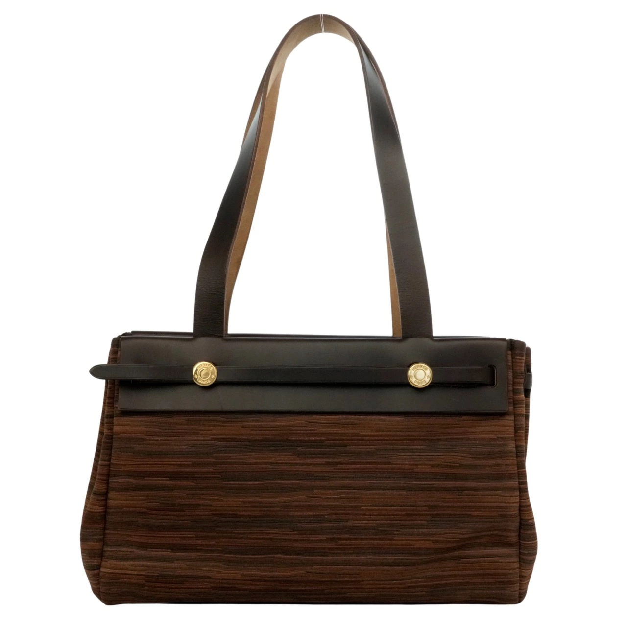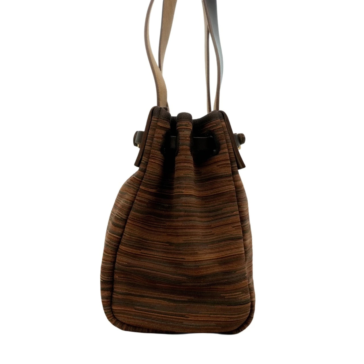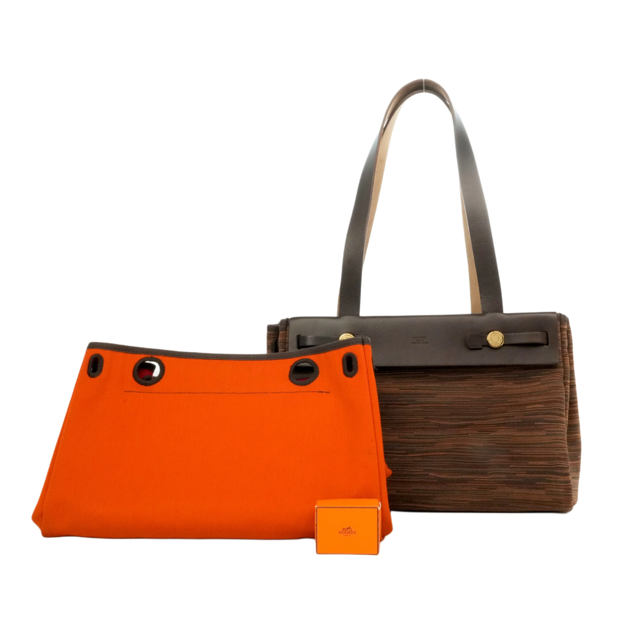 【中古・VINTAGE】HERMES エルメス トワルオフィシス エールバッグカバスPM ショルダーバッグ ヴィブラート トワルオフィシェ レザー ブラウン ゴールド マルチカラー ヴィンテージ Toile Officier Aile Bag Cabas PM Shoulder Bag