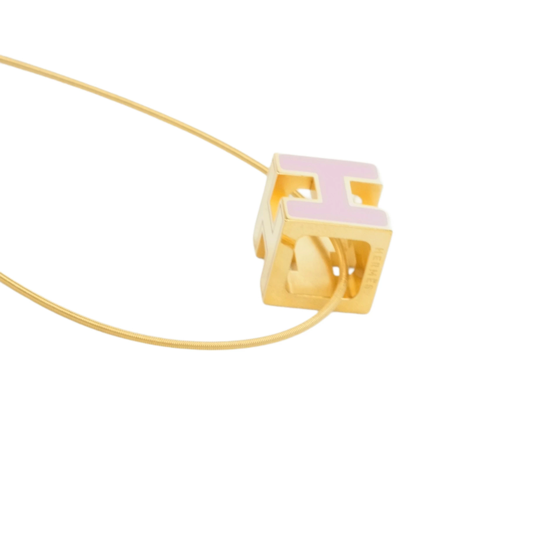 【中古・VINTAGE】HERMES エルメス Hキューブ ネックレス ラッカーメタル ゴールドプレーテッド パープル ゴールドヴィンテージ H Cube Necklace
