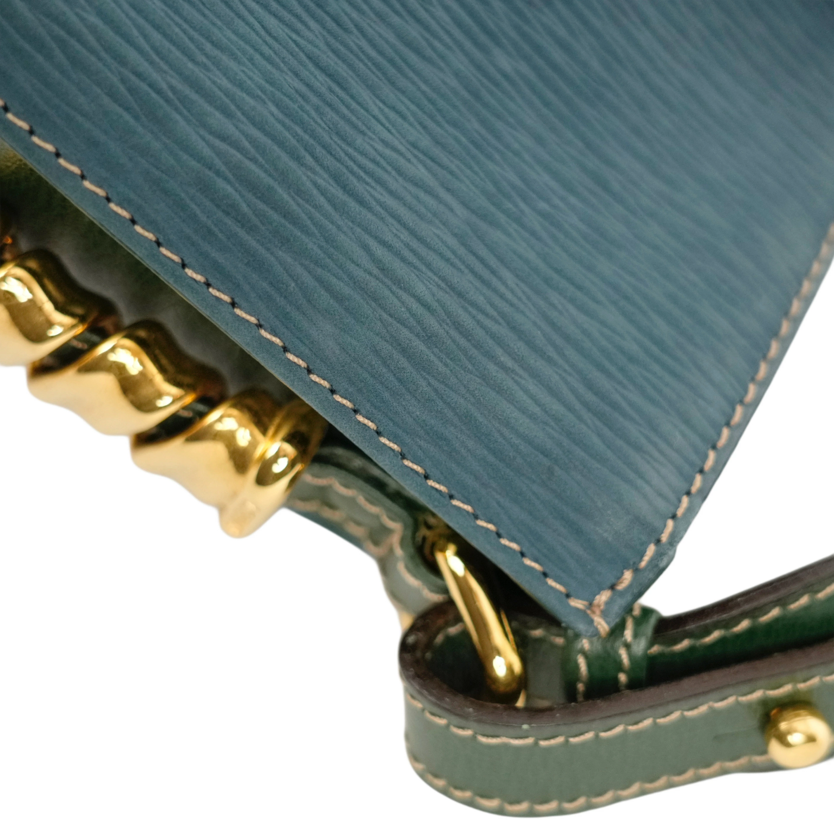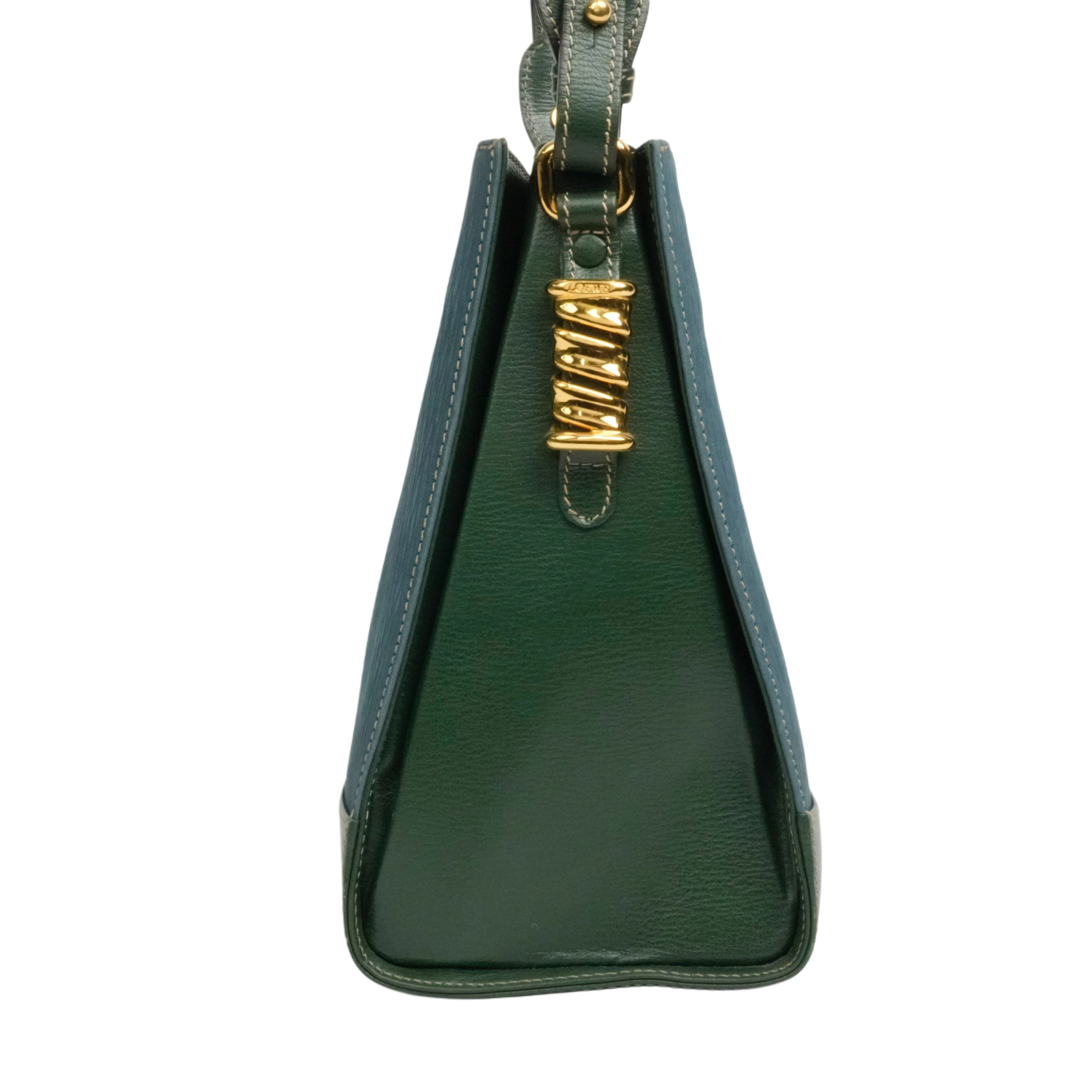 【中古・VINTAGE】LOEWE ロエベ ショルダーバッグ レザー グリーン ブルー ヴィンテージ Velazquez Shoulder Bag