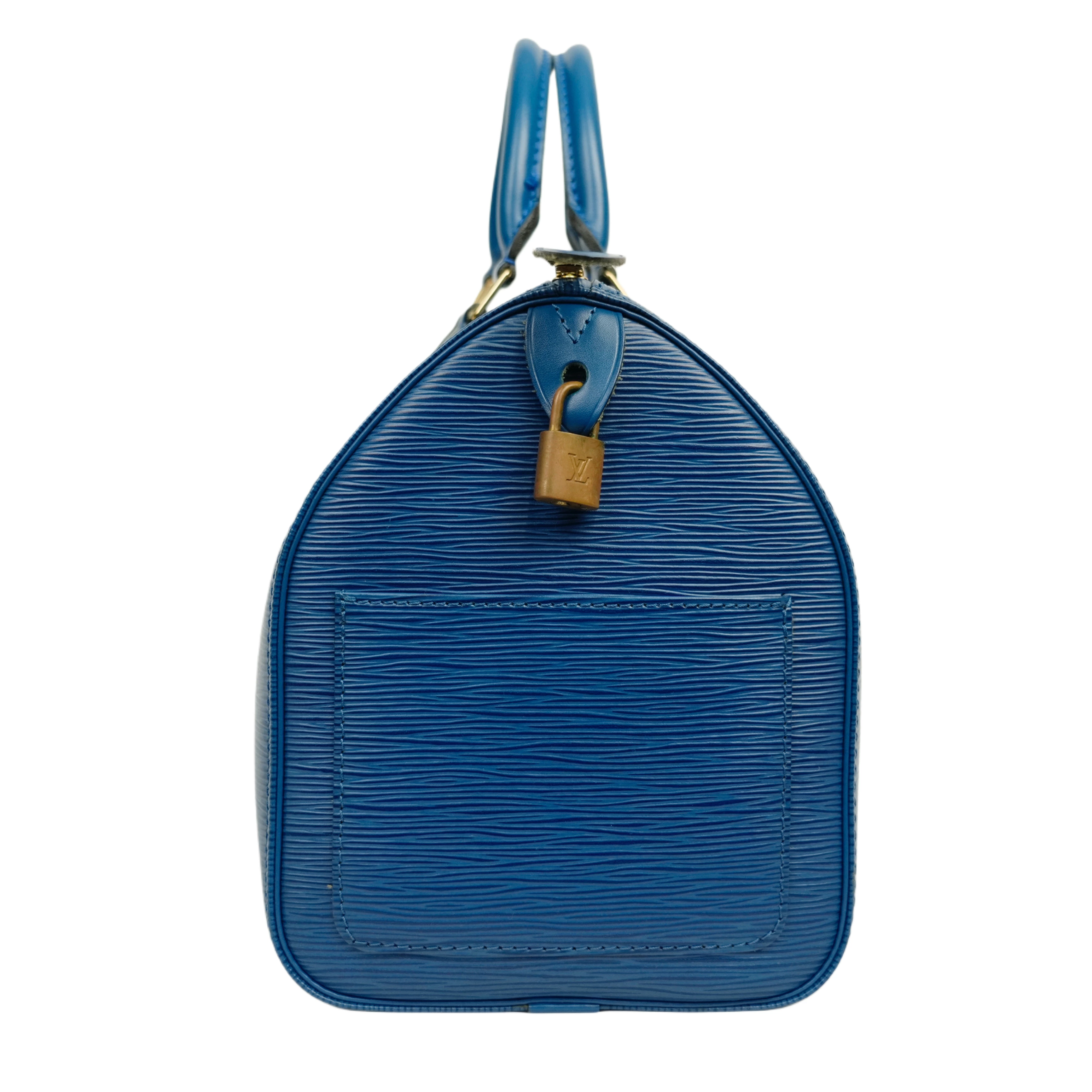 【中古・VINTAGE】LOUIS VUITTON ルイヴィトン エピ スピーディ30 ハンドバッグ エピレザー ブルー ゴールド ヴィンテージ Epi Speedy 30 Handbag M43005