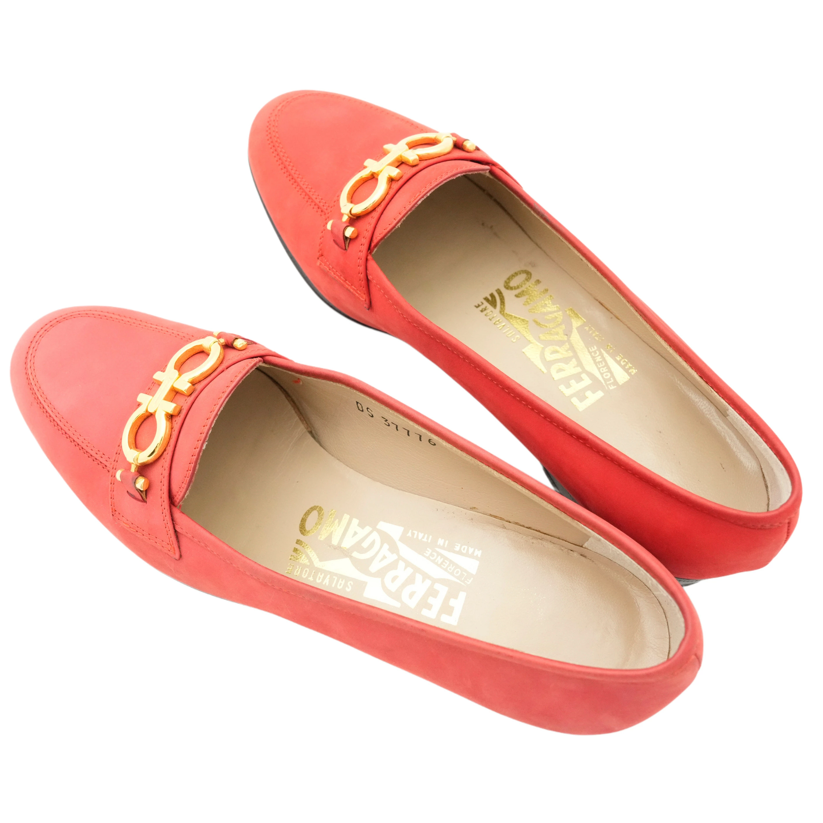 【中古・VINTAGE】SALVATORE FERRAGAMO サルヴァトーレフェラガモ ガンチーニローファー 22.5cm レッドヴィンテージ Loafers Shoes