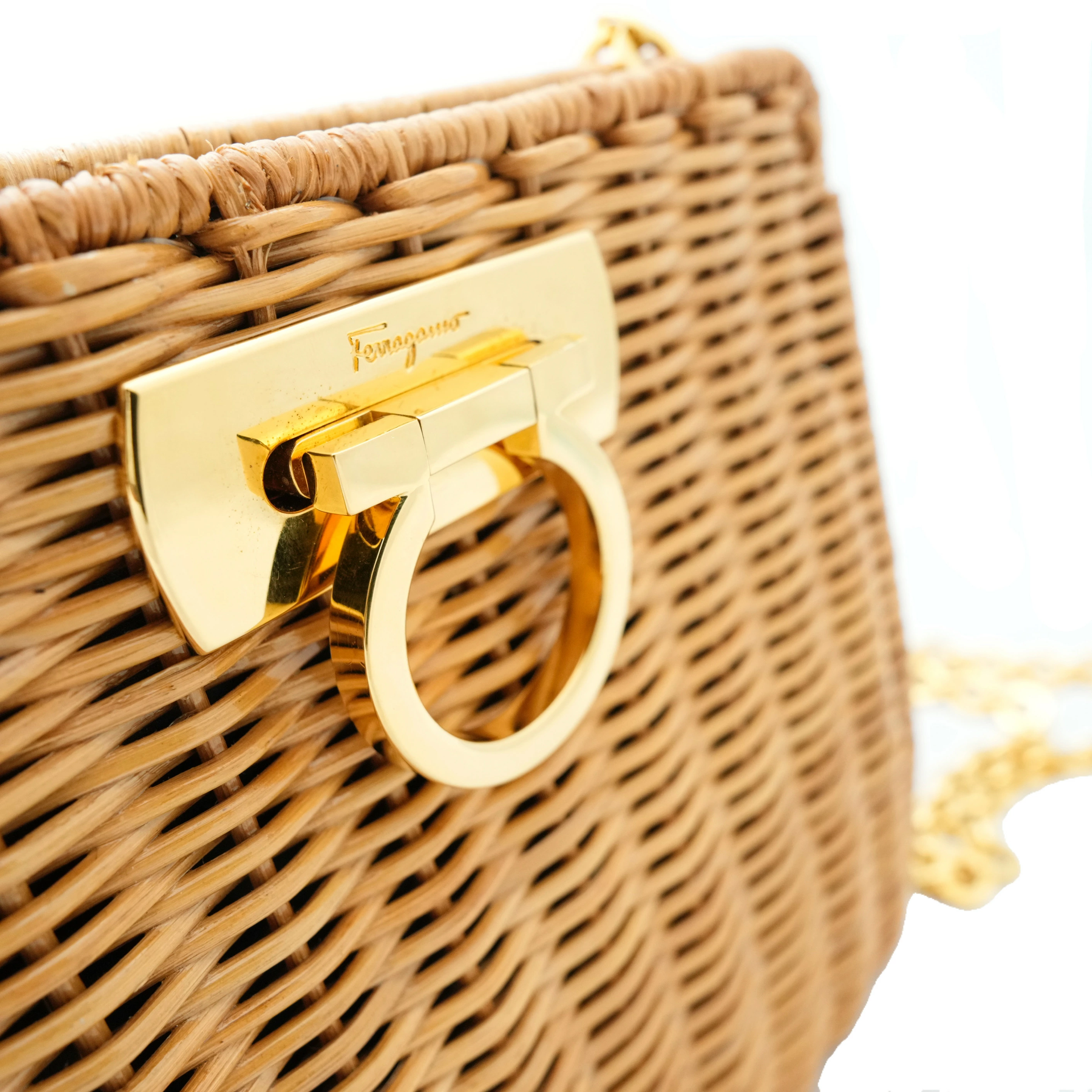【中古・VINTAGE】SALVATORE FERRAGAMO サルヴァトーレフェラガモ ガンチーニ ラタン ショルダーバッグ ベージュ ヴィンテージ Gancini Rattan Shoulder Bag