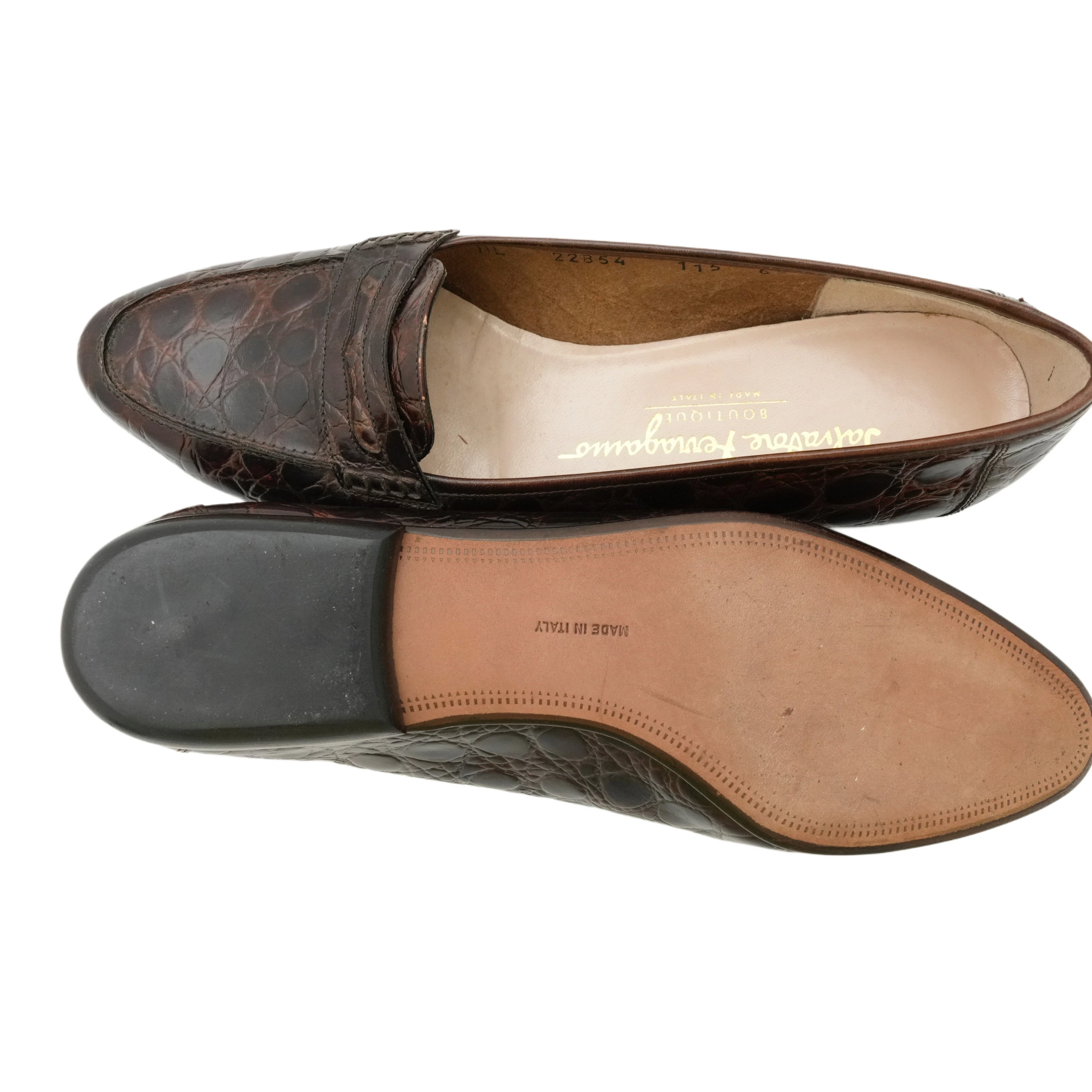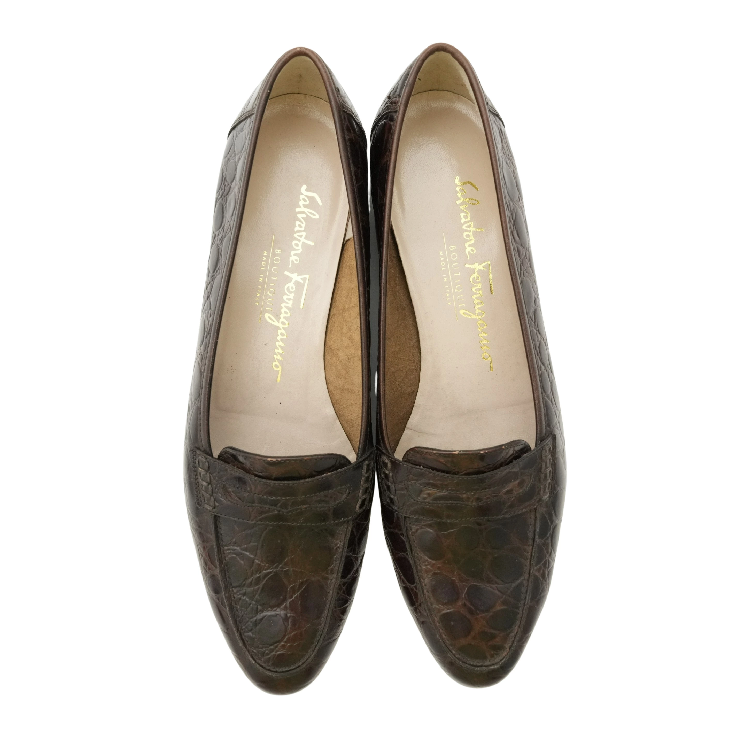 【中古・VINTAGE】SALVATORE FERRAGAMO サルヴァトーレフェラガモ フラットシューズ 23.5cm ブラウン ヴィンテージ FERRAGAMO Flat Shoes