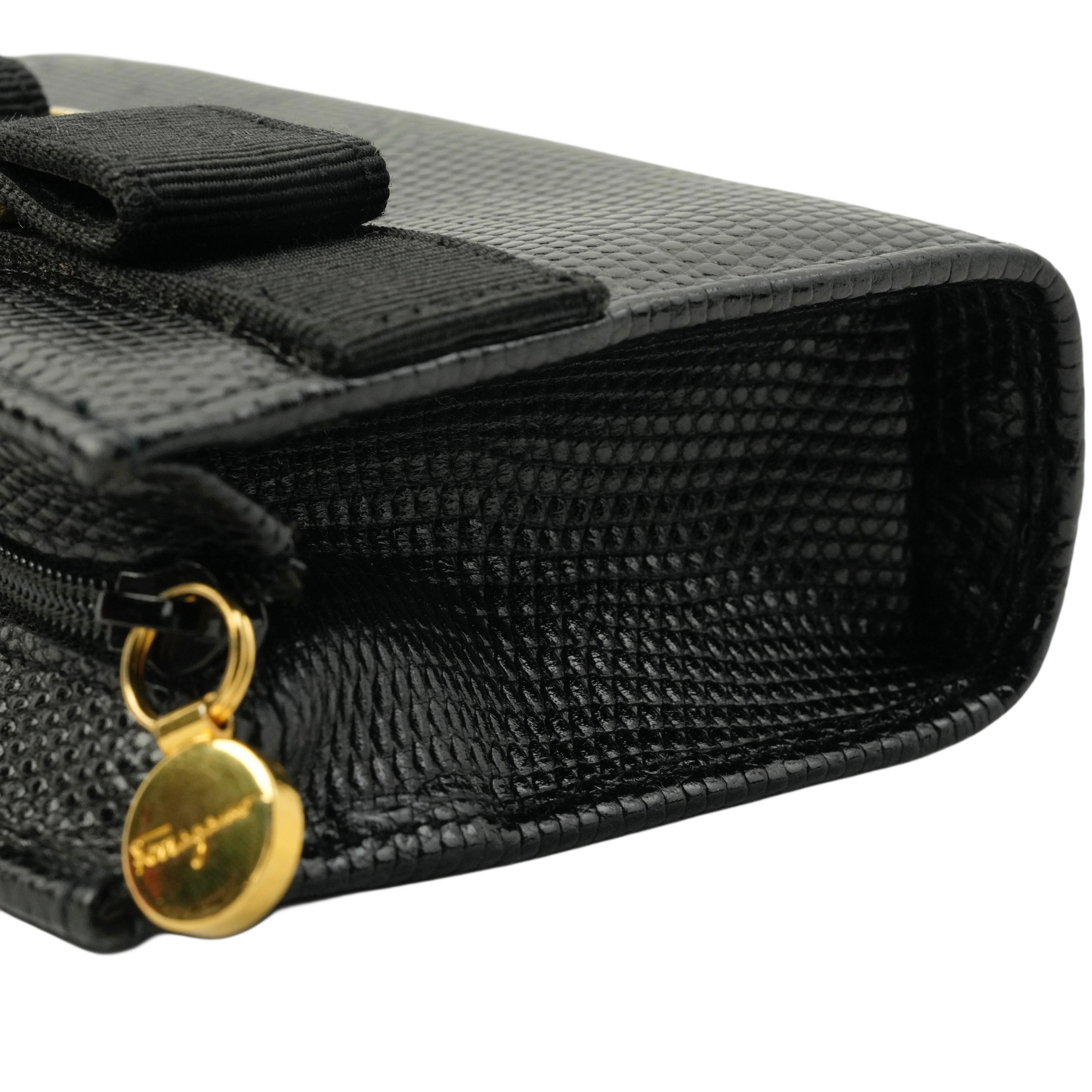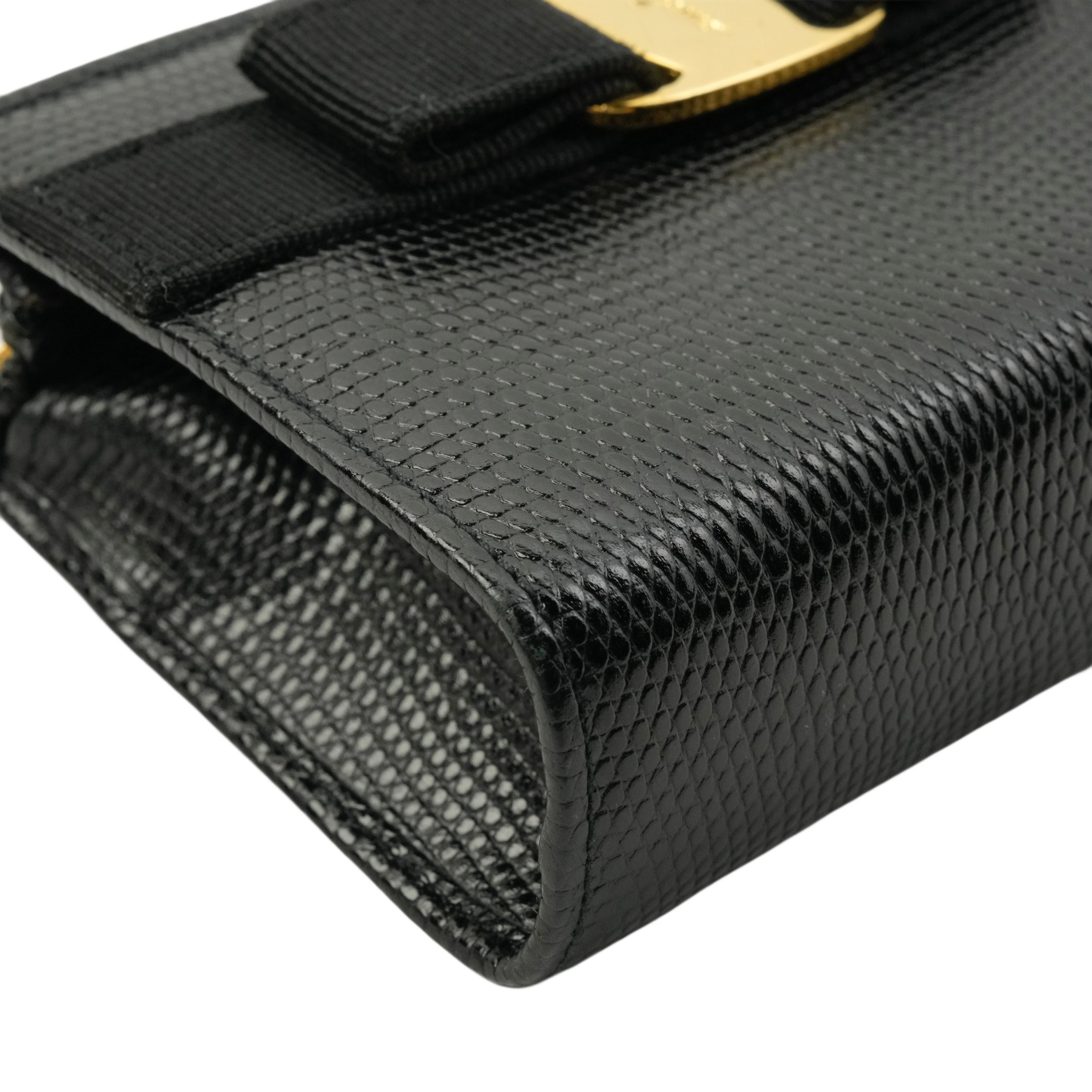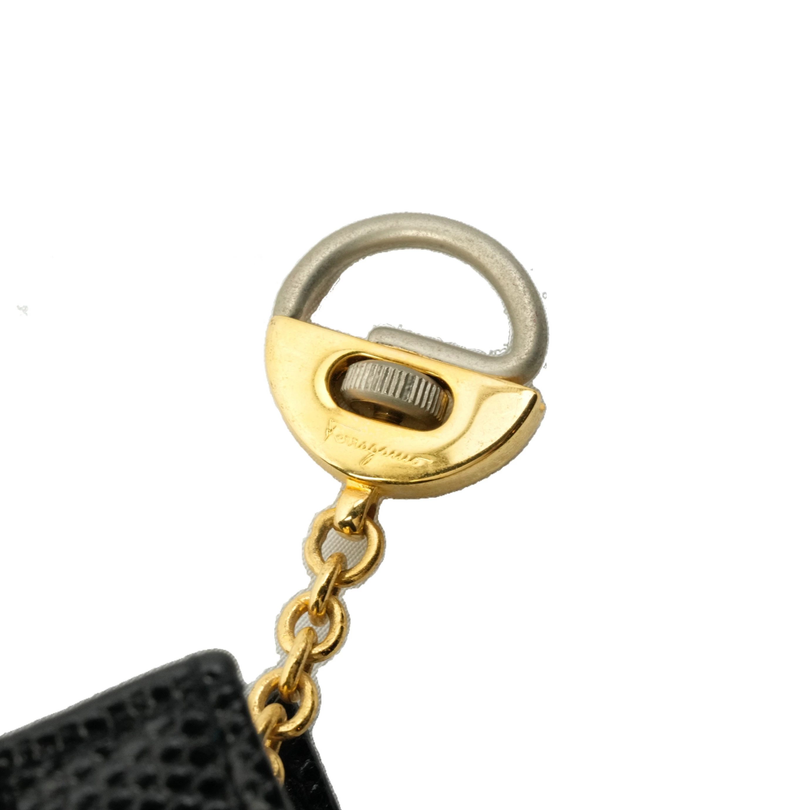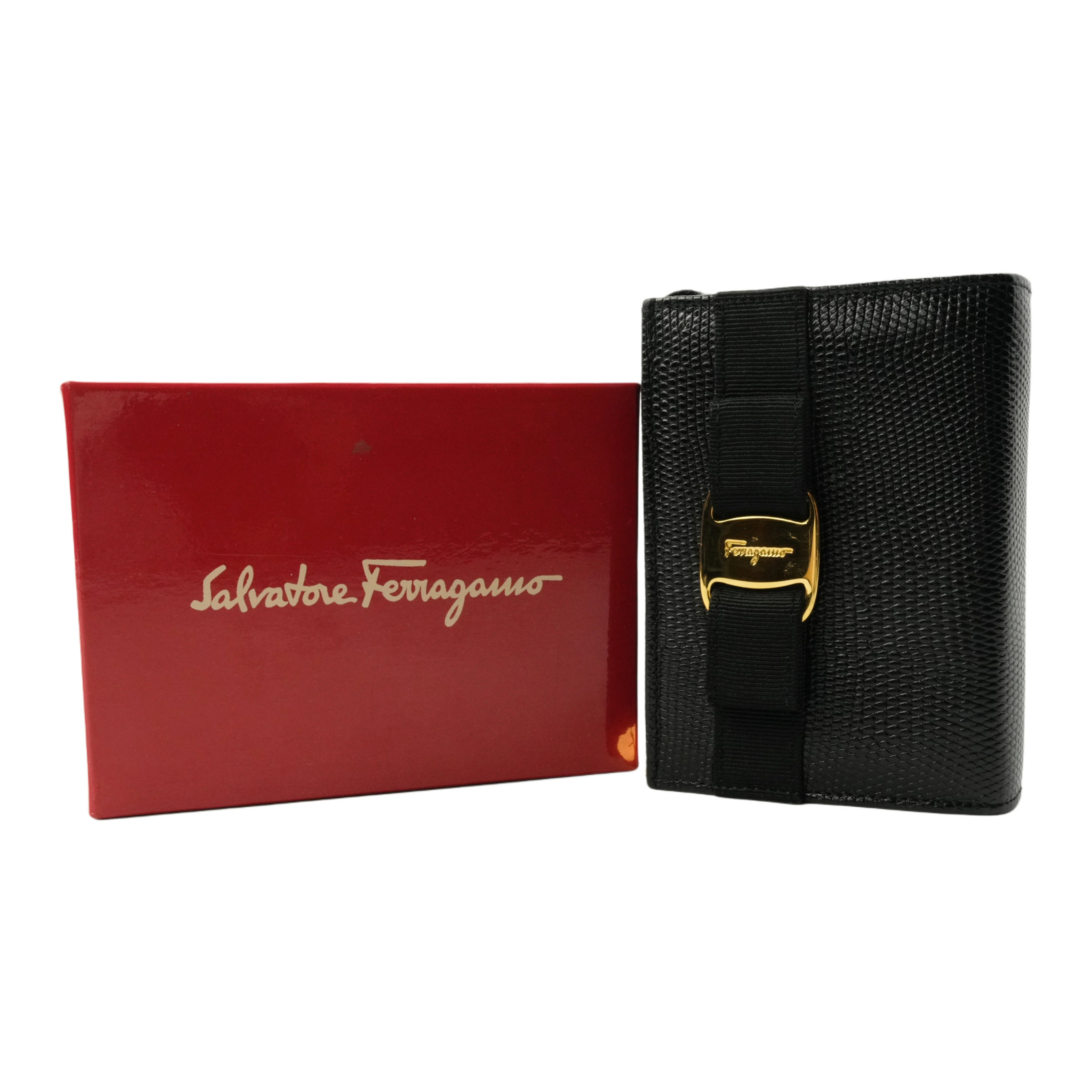 【中古・VINTAGE】SALVATORE FERRAGAMO サルヴァトーレフェラガモ ヴァラ キーリング付きコインケース/ポーチ レザー ブラック ヴィンテージ Coin Case