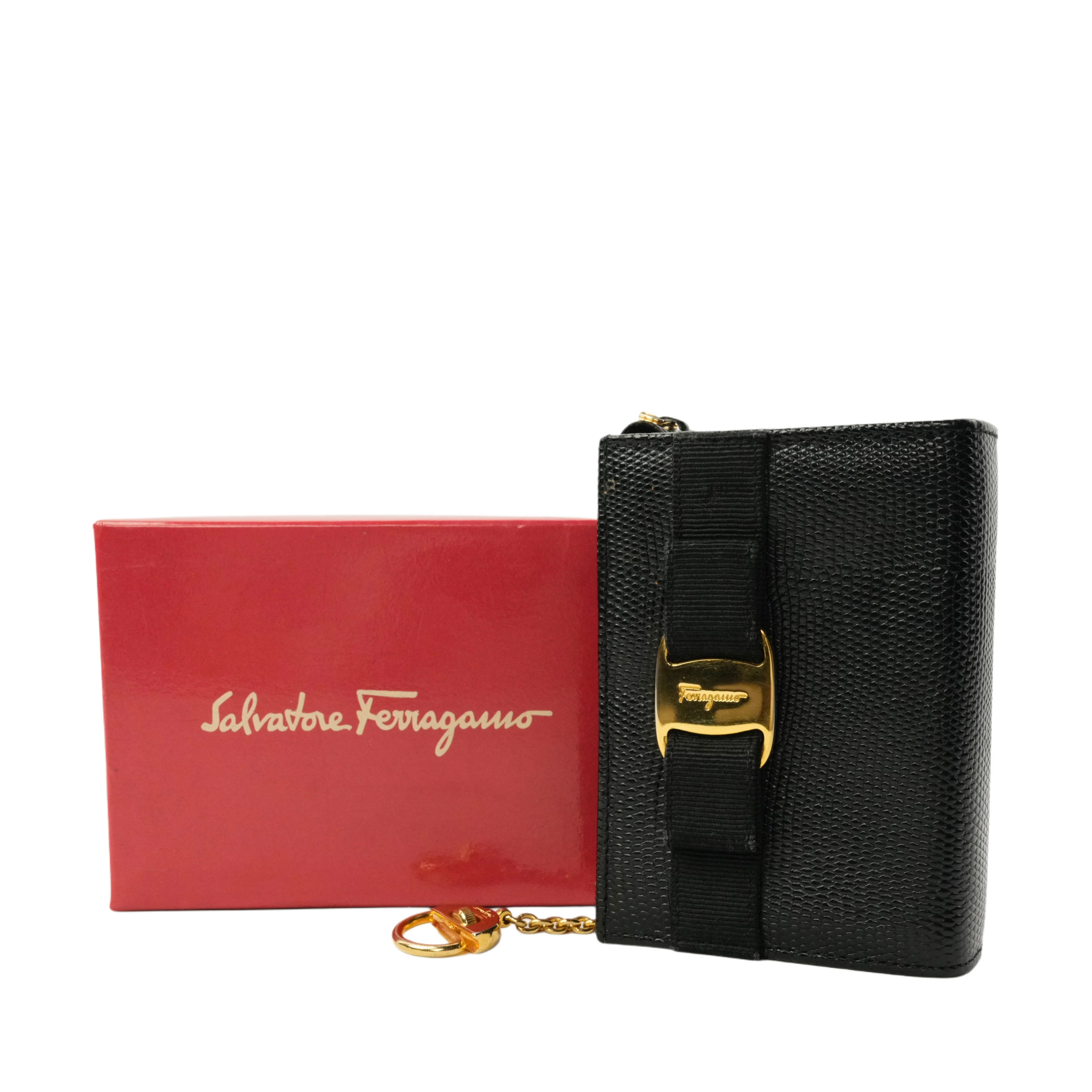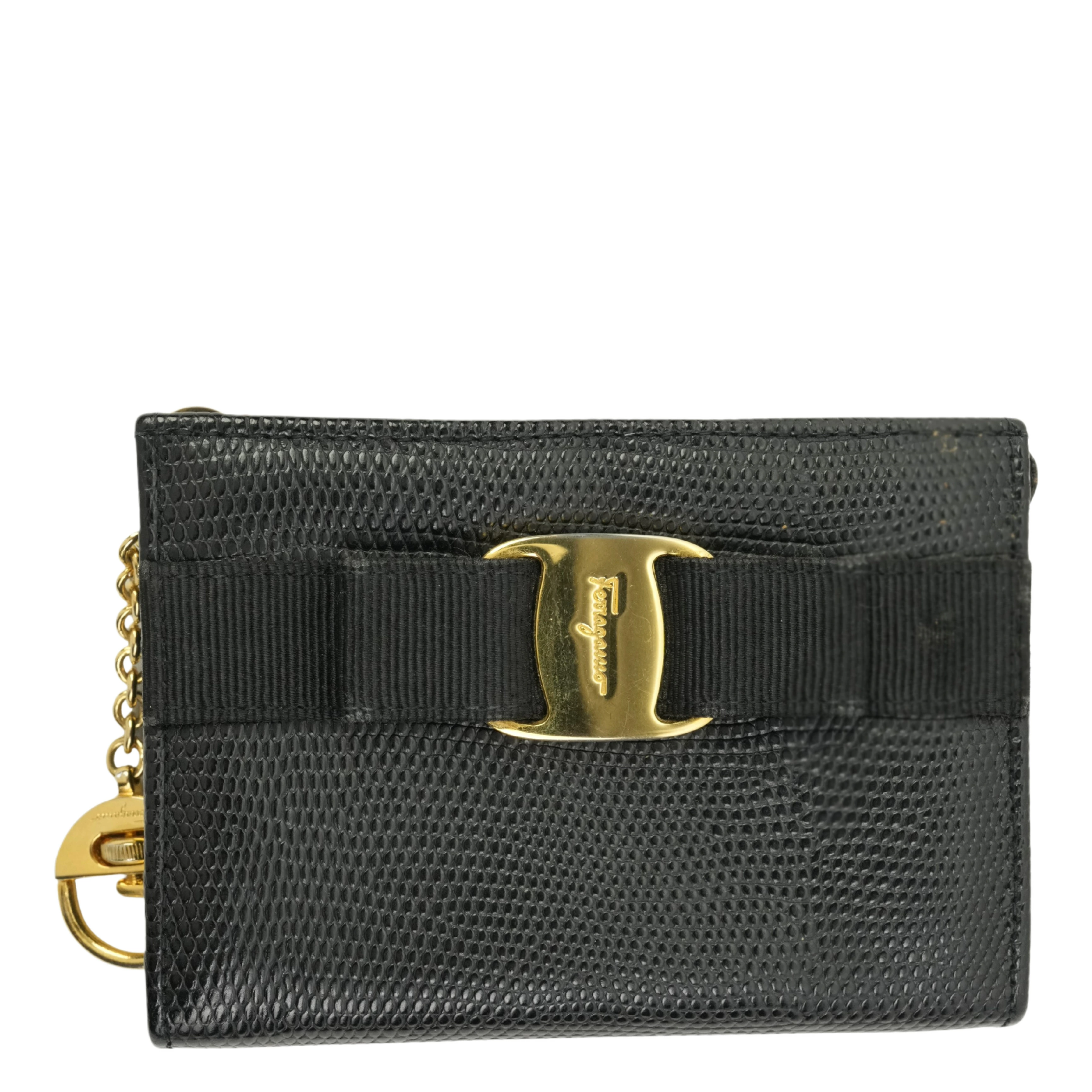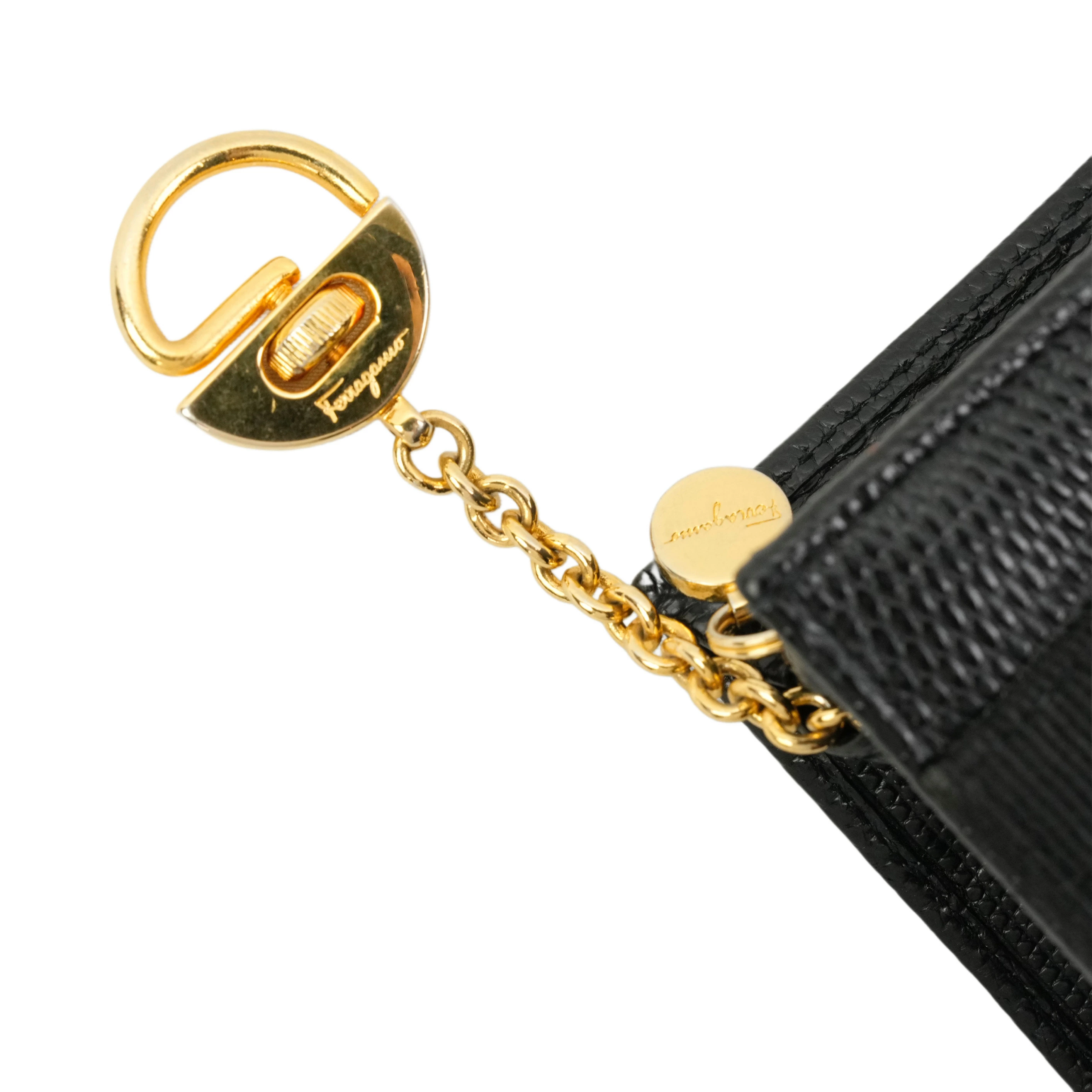 【中古・VINTAGE】SALVATORE FERRAGAMO サルヴァトーレフェラガモ ヴァラ キーリング付きコインケース/ポーチ レザー ブラック ヴィンテージ Coin Case