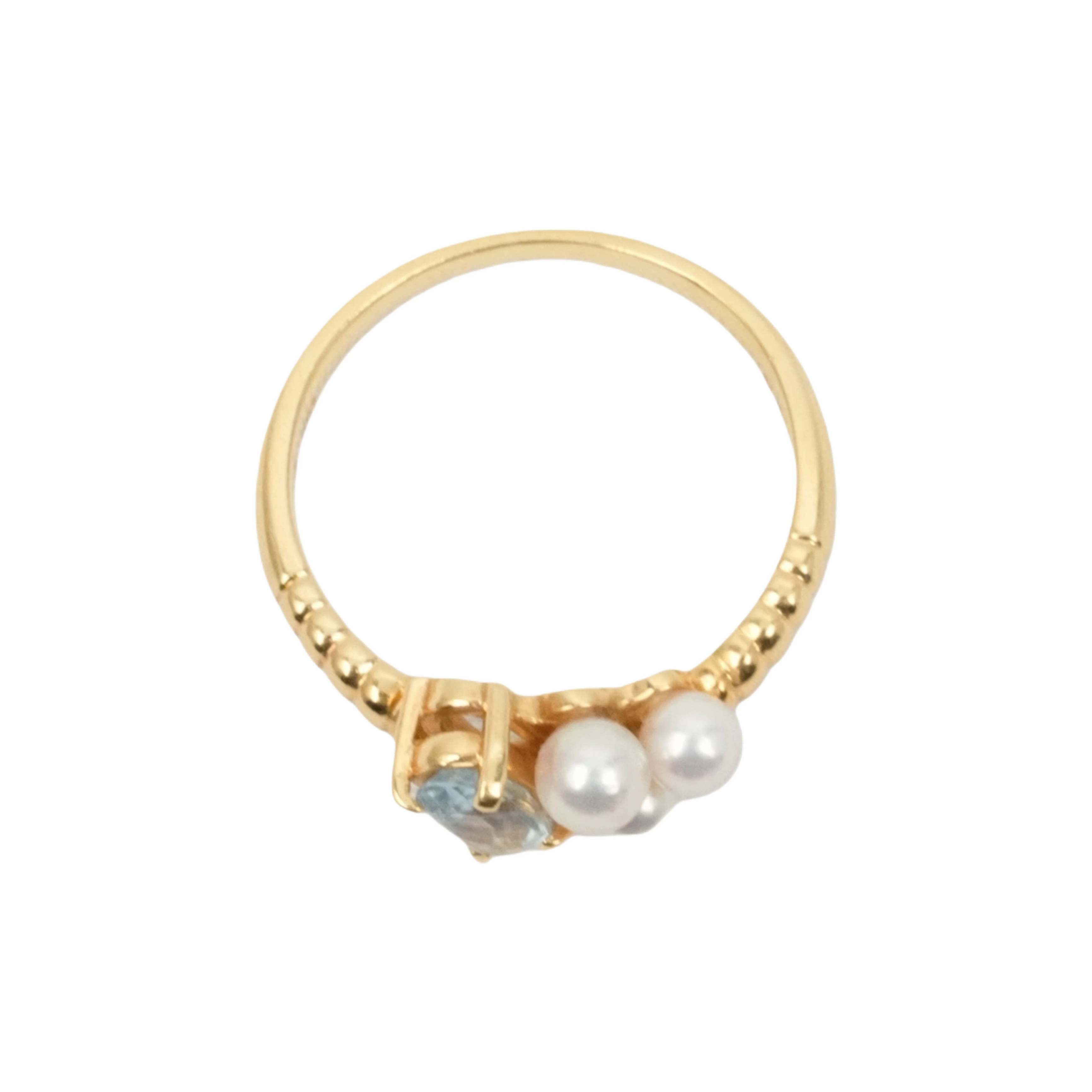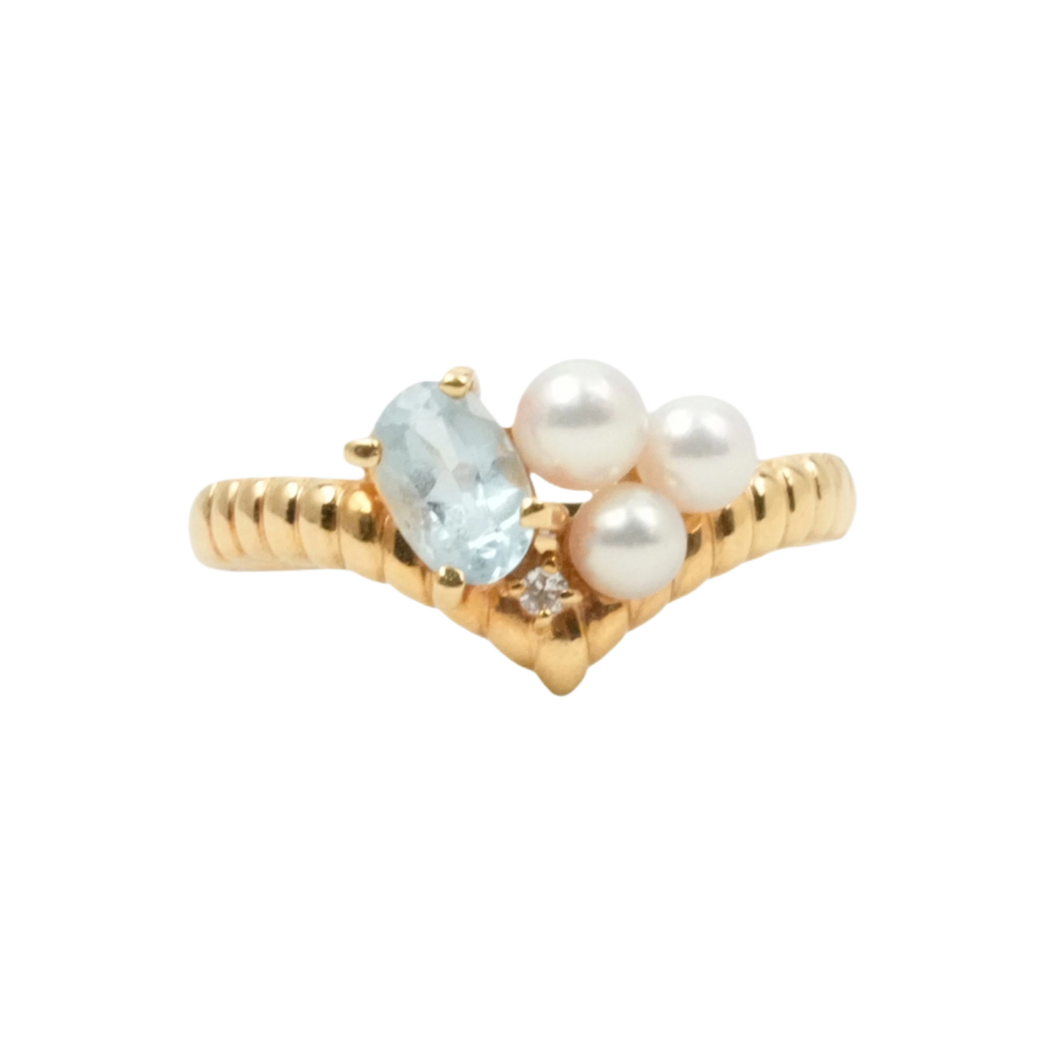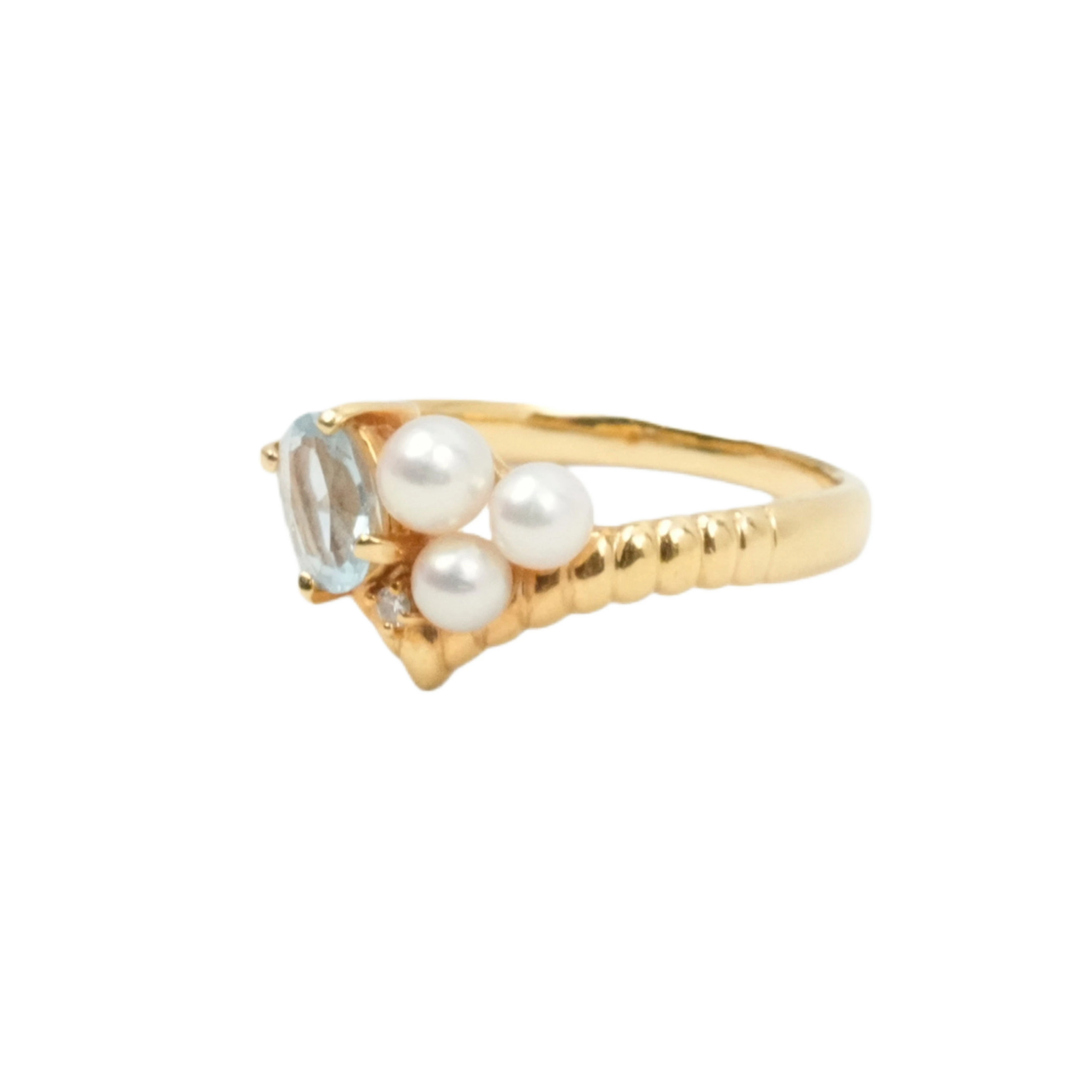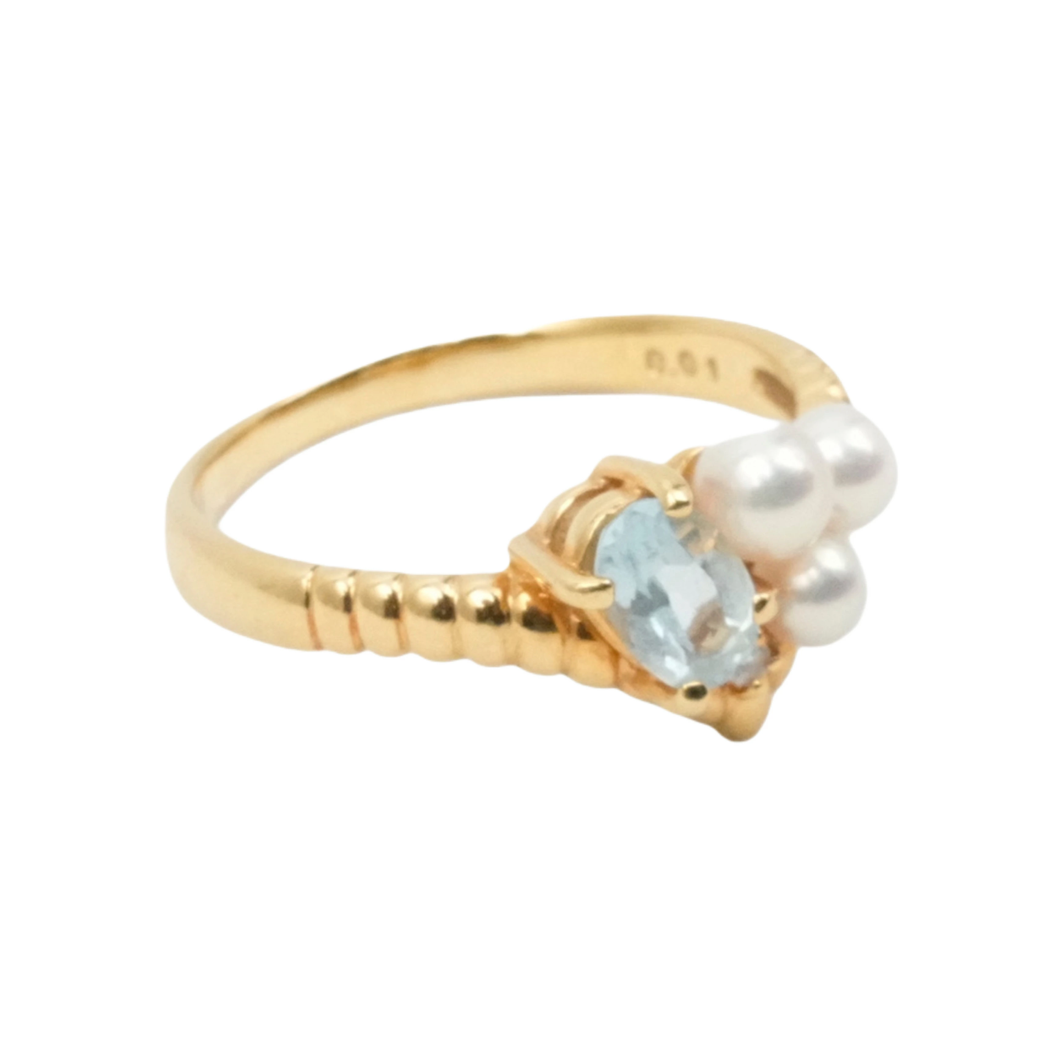 【中古・VINTAGE】TASAKI タサキ リング K18 11号 アクアマリン ダイヤモンド パール ゴールド ブルー ヴィンテージ K18 Ring