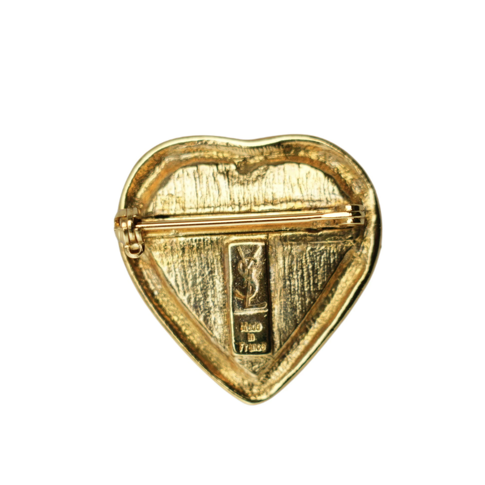 【中古・VINTAGE】YVES SAINT LAURENT イヴサンローラン ストーン レッドハート ブローチ レッド ゴールド ヴィンテージ Stone Red Heart Brooch