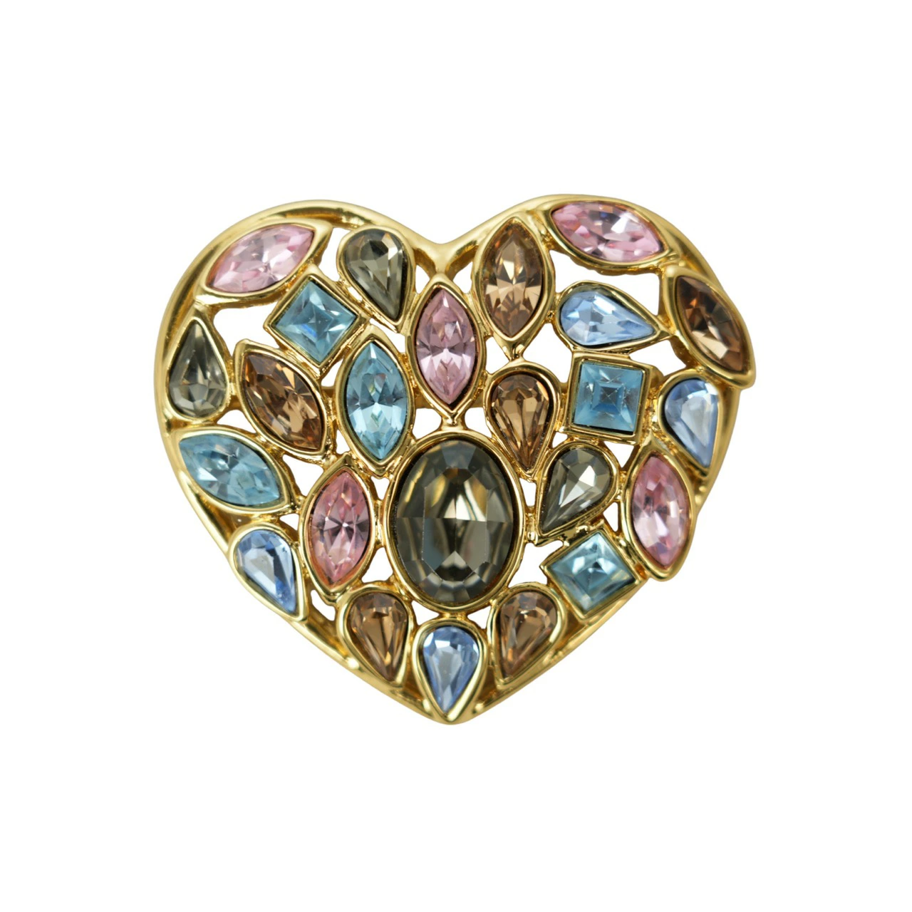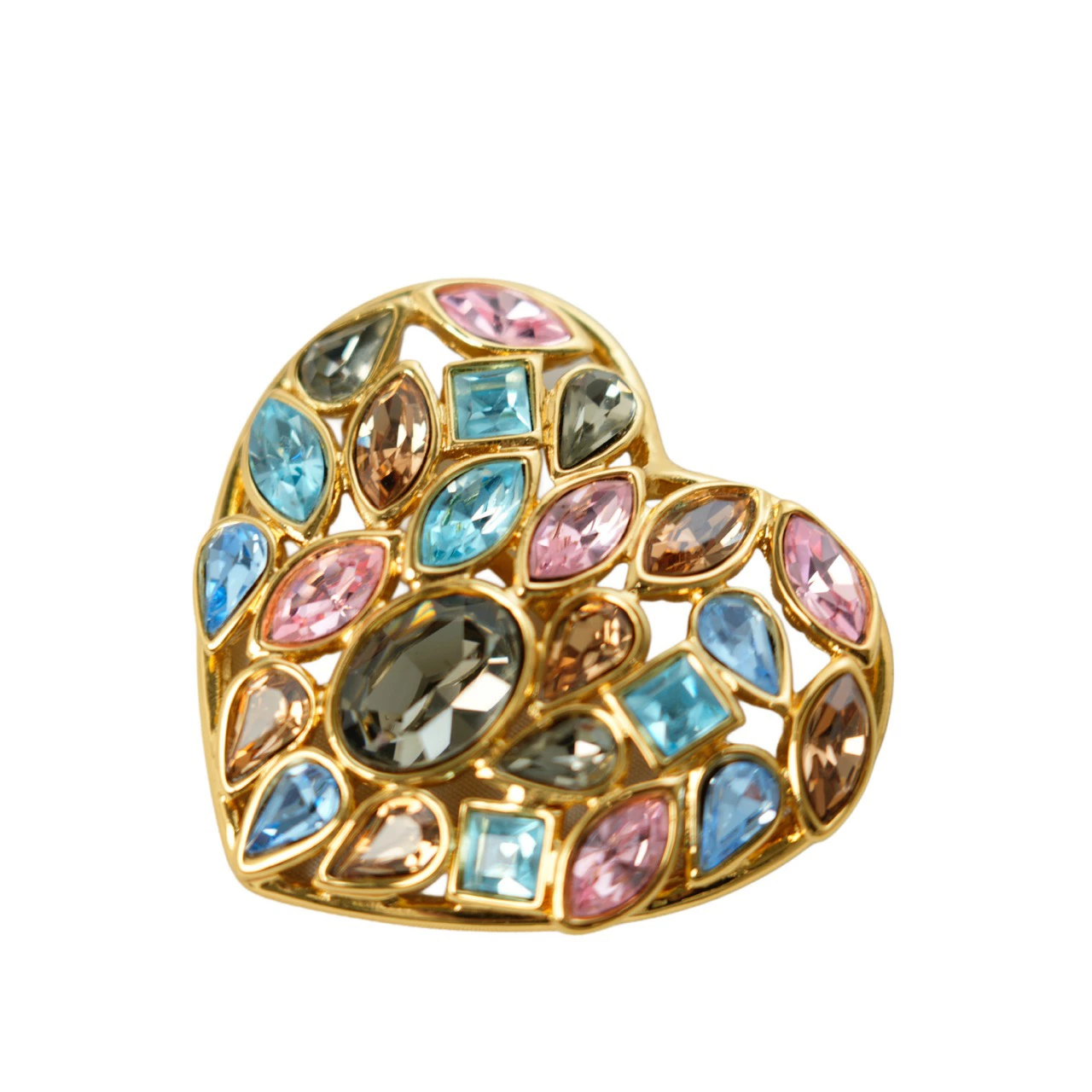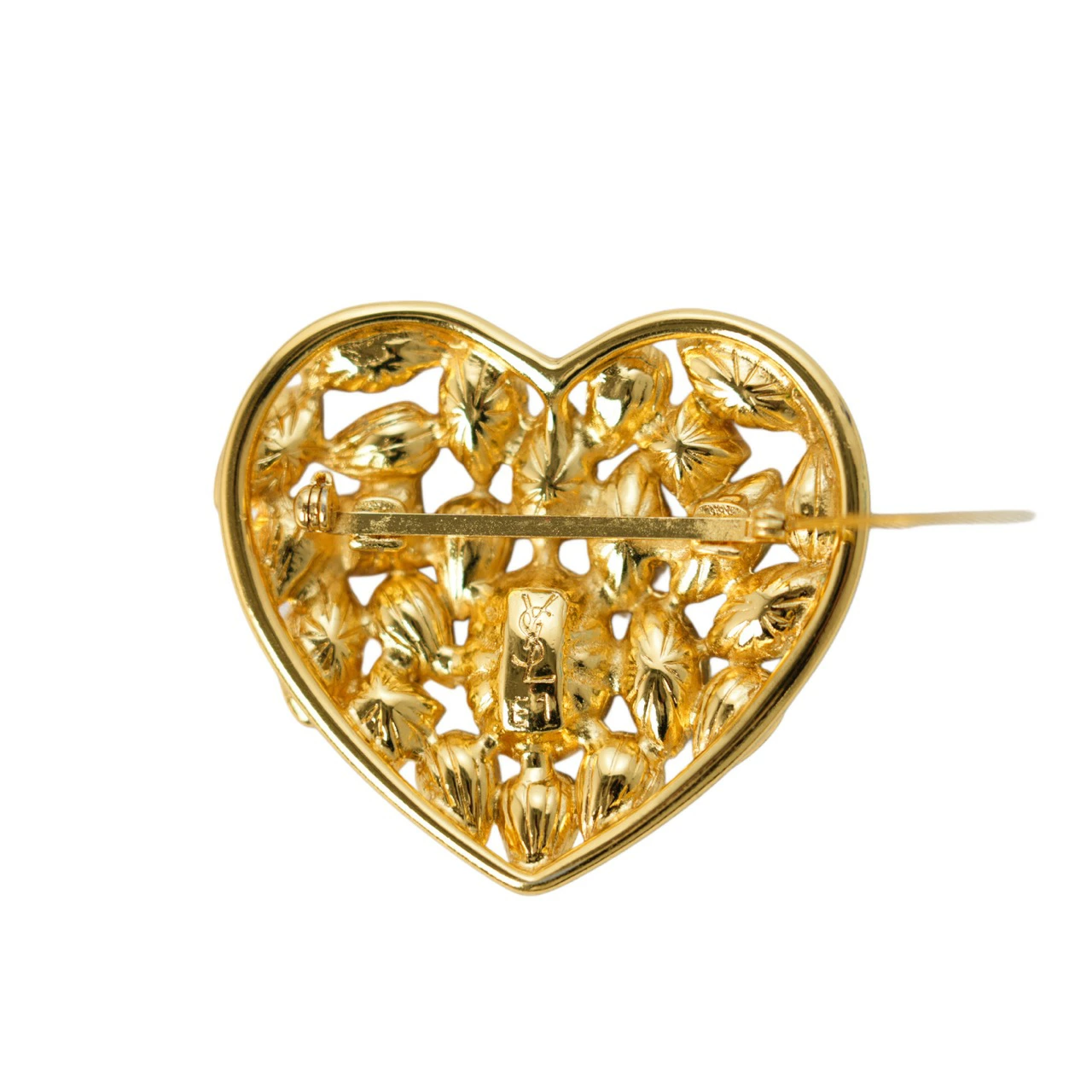 【中古・VINTAGE】YVES SAINT LAURENT イヴサンローラン ハート ブローチ ゴールド マルチカラー ヴィンテージ Heart Brooch