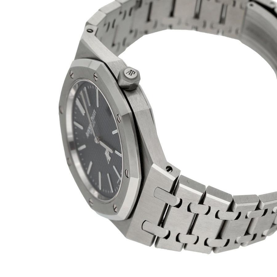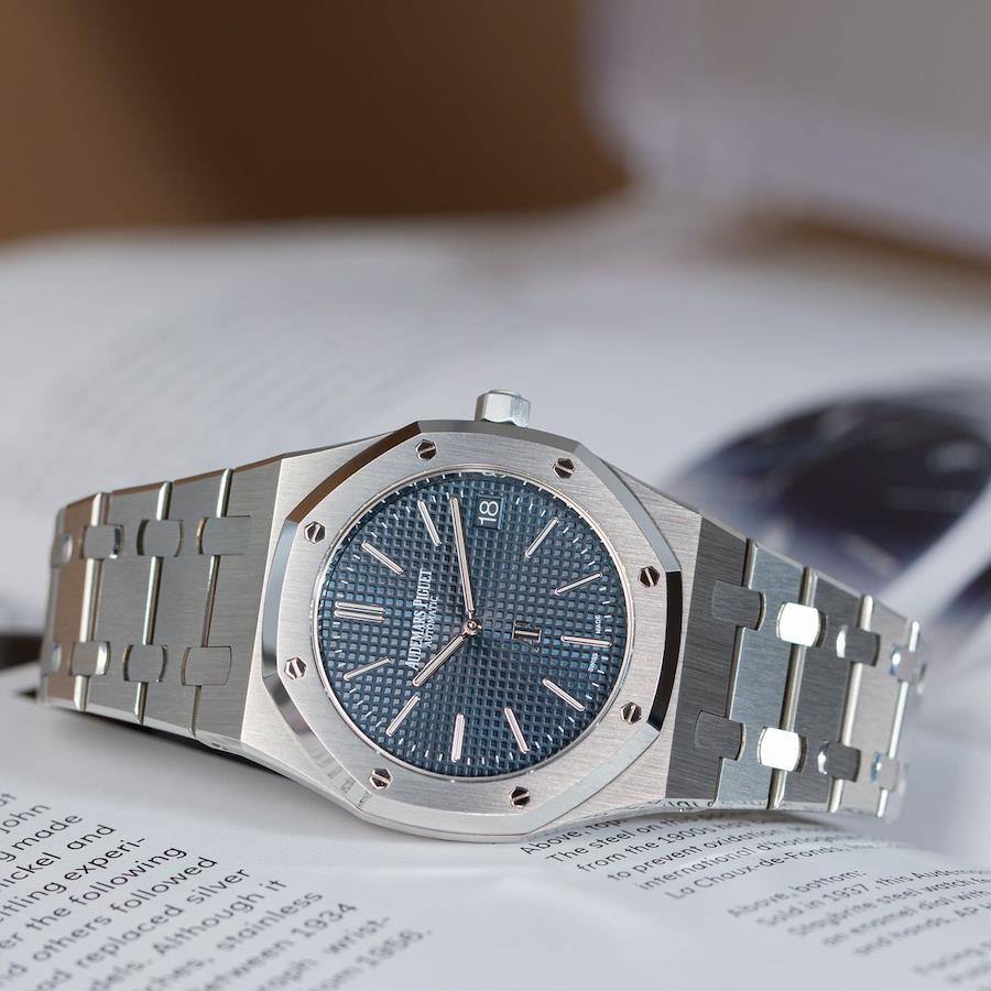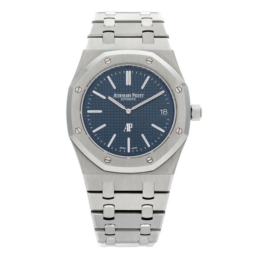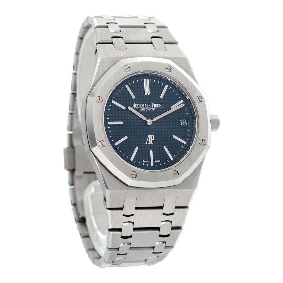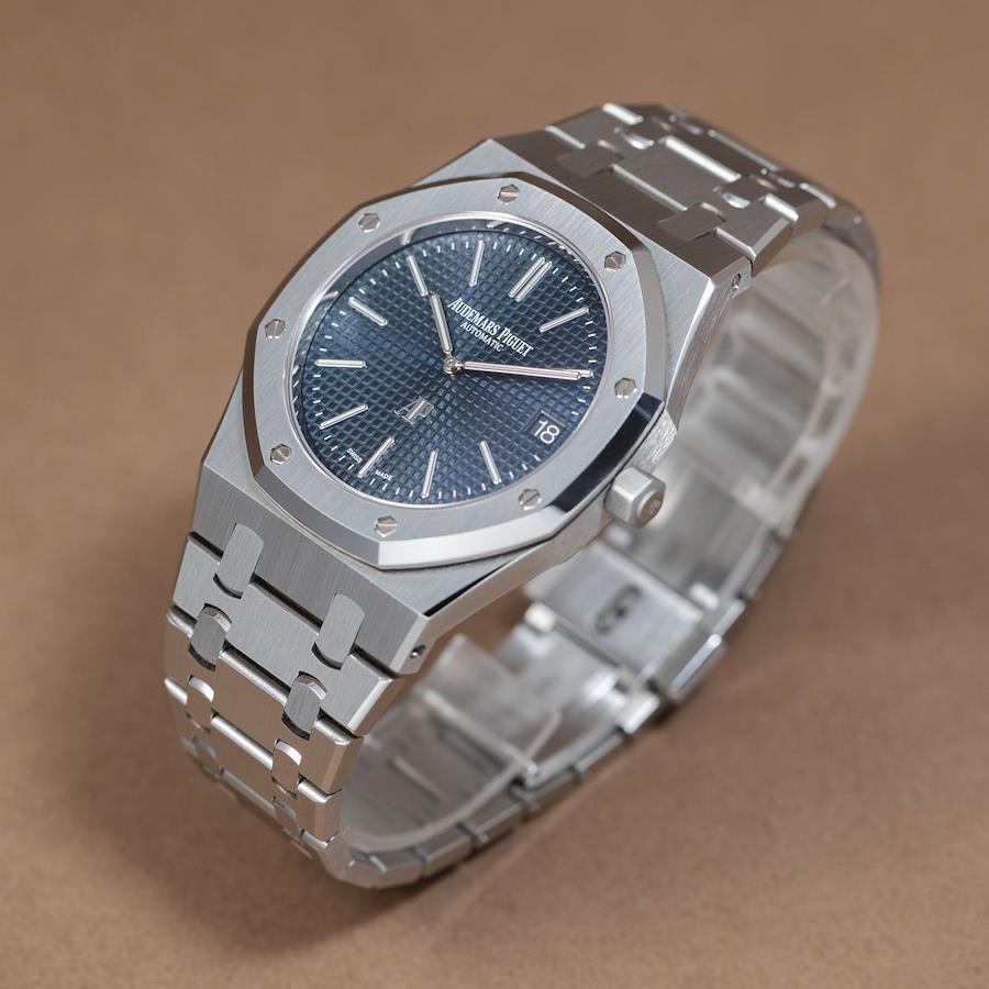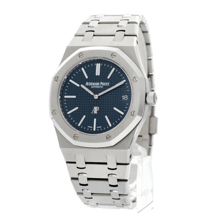 --------【商品スペック】--------お問合せコード15202ST.OO.1240ST.01.Aブランド:オーデマ・ピゲシリーズ:ロイヤルオークジャンボ エクストラシンケース素材:ステンレススチールベルト素材:ステンレススチールダイアルカラー:ブルームーブメント:自動巻(Cal.2121)ケースサイズ:39mm(リューズ除く)防水:50mガラス:サファイアガラス仕様:日付表示、バックスケルトン付属品:純正BOX、国際保証書、修理証明書保証:購入日より1年保証状態:中古美品Aランク