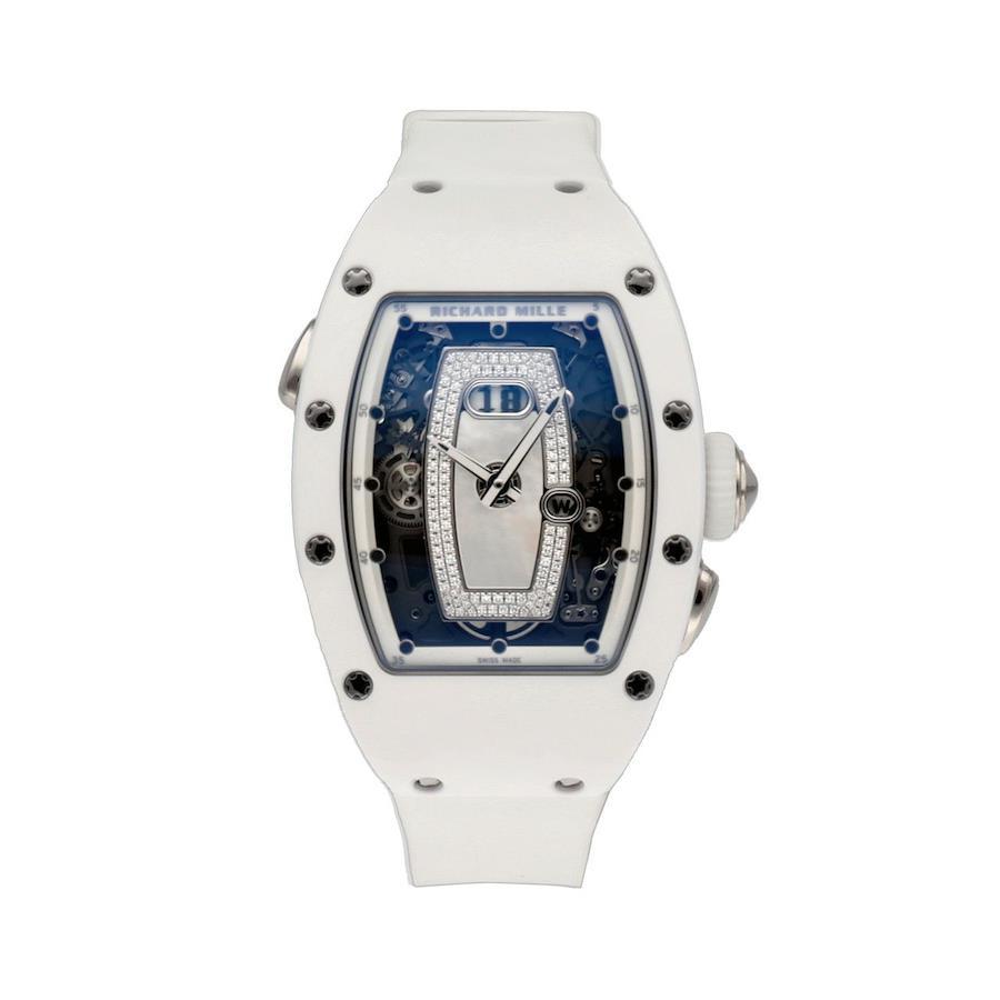 --------【商品スペック】--------お問合せコード:RM037 WG ATZブランド:リシャール・ミルケース素材:ATZホワイトセラミック×ホワイトゴールドベルト素材:ラバーダイアルカラー:スケルトンムーブメント:自動巻(Cal.CRMA1)ケースサイズ:52.63 mm x 34.40 mm?(リューズ除く)防水:30mガラス:サファイアガラス仕様:バックスケルトン、日付表示付属品:純正BOX、国際保証書保証:購入日より1年保証