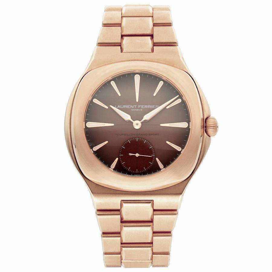 --------【商品スペック】--------お問合せコード:LCF044.02.R5.B1RC1.2ブランド:ローラン・フェリエシリーズ:グランドスポーツ・トゥールビヨン ゴールデンブラウンケース素材:18Kローズゴールドベルト素材:18Kローズゴールドダイアルカラー:ブラウンムーブメント:手巻き(Cal.LF619.01)ケースサイズ:44mm(リューズ除く)防水:100mガラス:サファイアガラス仕様:トゥールビヨン、スモールセコンド付属品:純正BOX、国際保証書保証:購入日より1年保証状態:使用形跡の少ない非常に良い個体です。