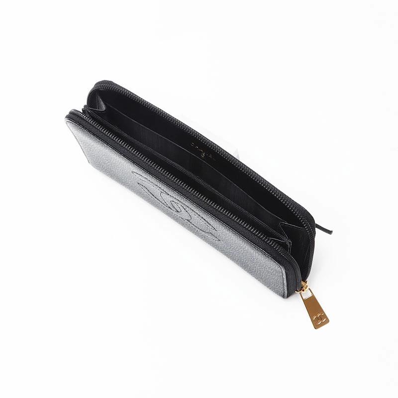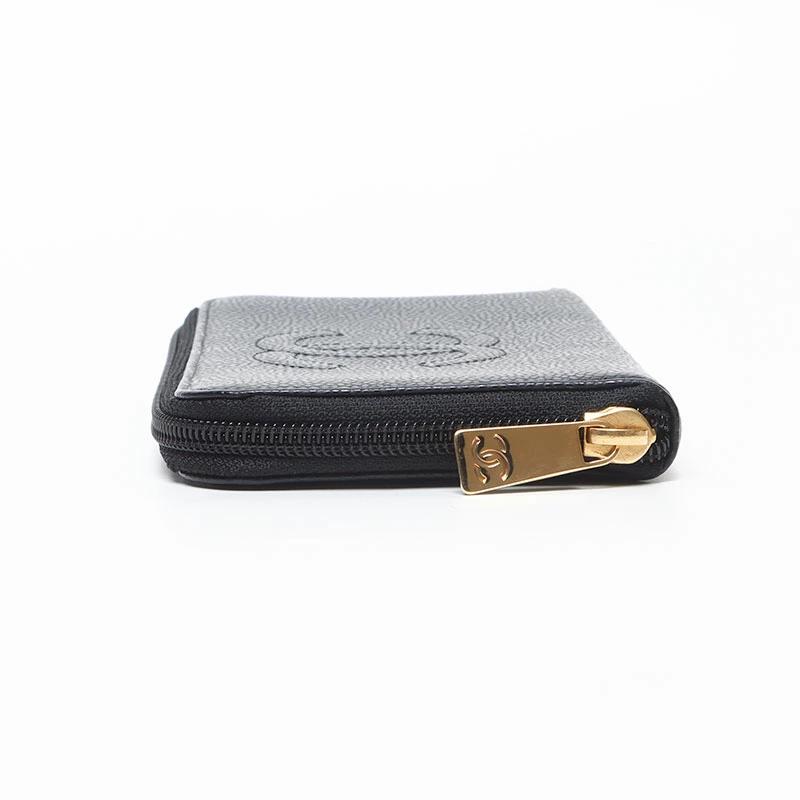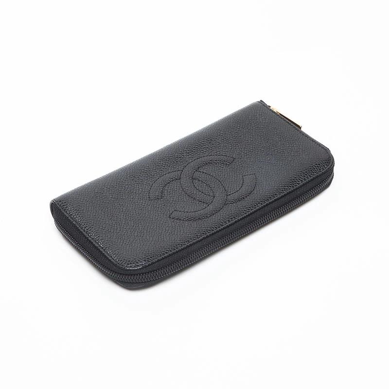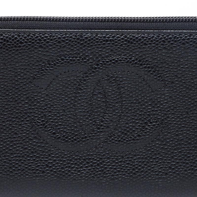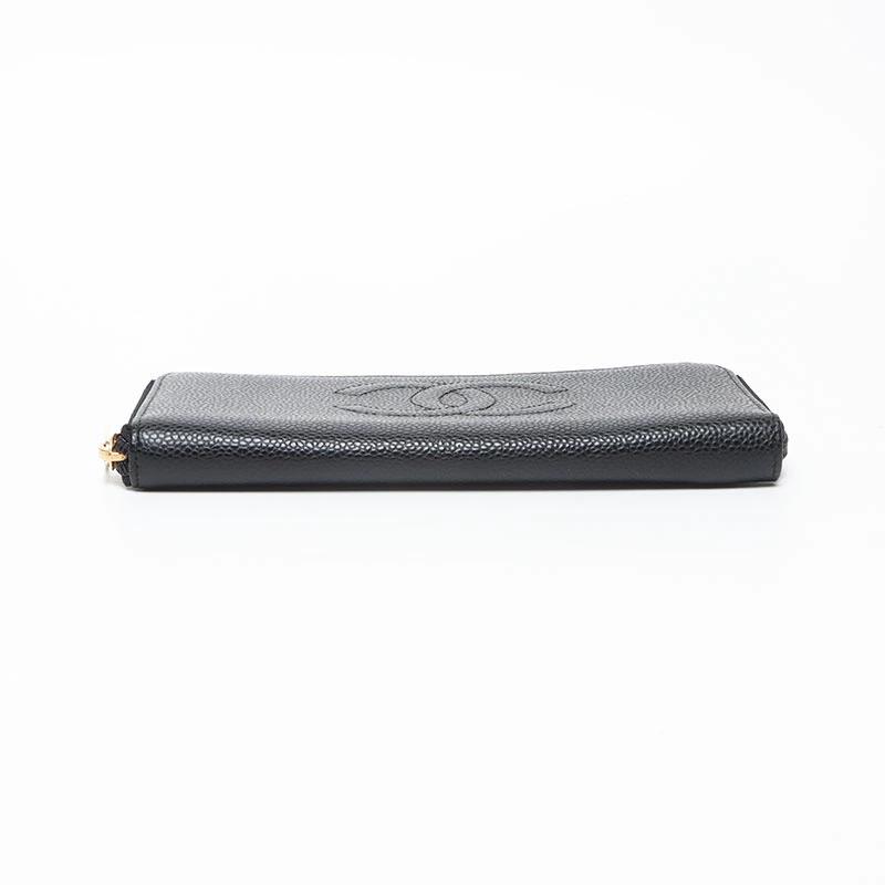 Pre-owned CHANEL Coco Mark Caviar Leather Round Zip Long Wallet in Black (WS13684), 10 Series, 2005-2006