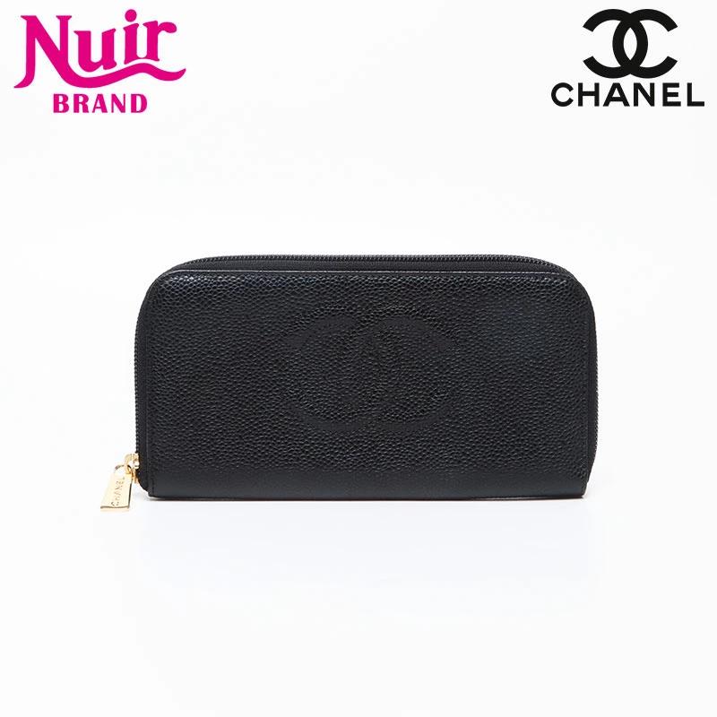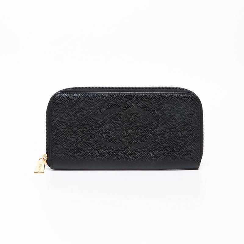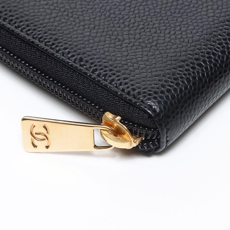 シャネル CHANEL ココマーク キャビアスキン 10番台 2005-2006 ラウンド ジップ 長財布 ブラック WS13684 【中古】