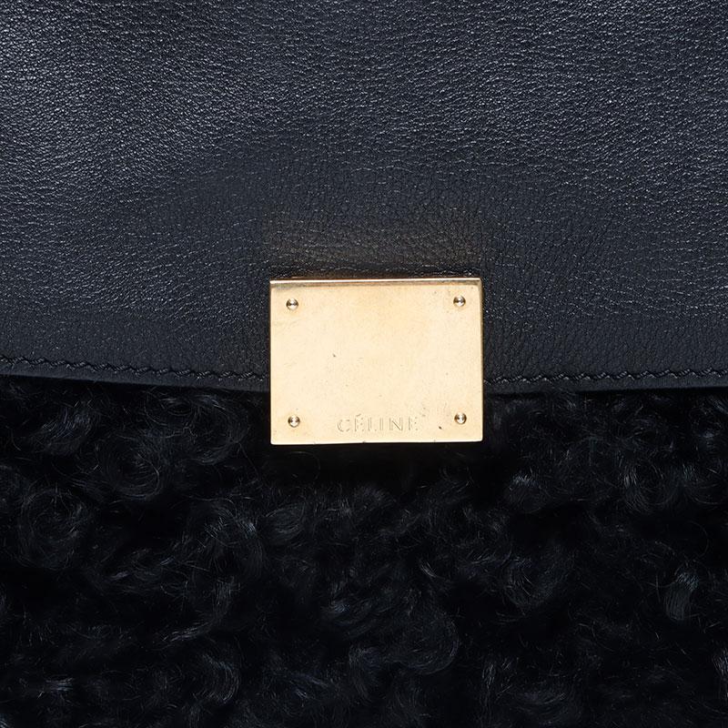 Pre-owned Celine Trapeze Leather Boa Shoulder Bag, Black, WS14547, 2024-2025