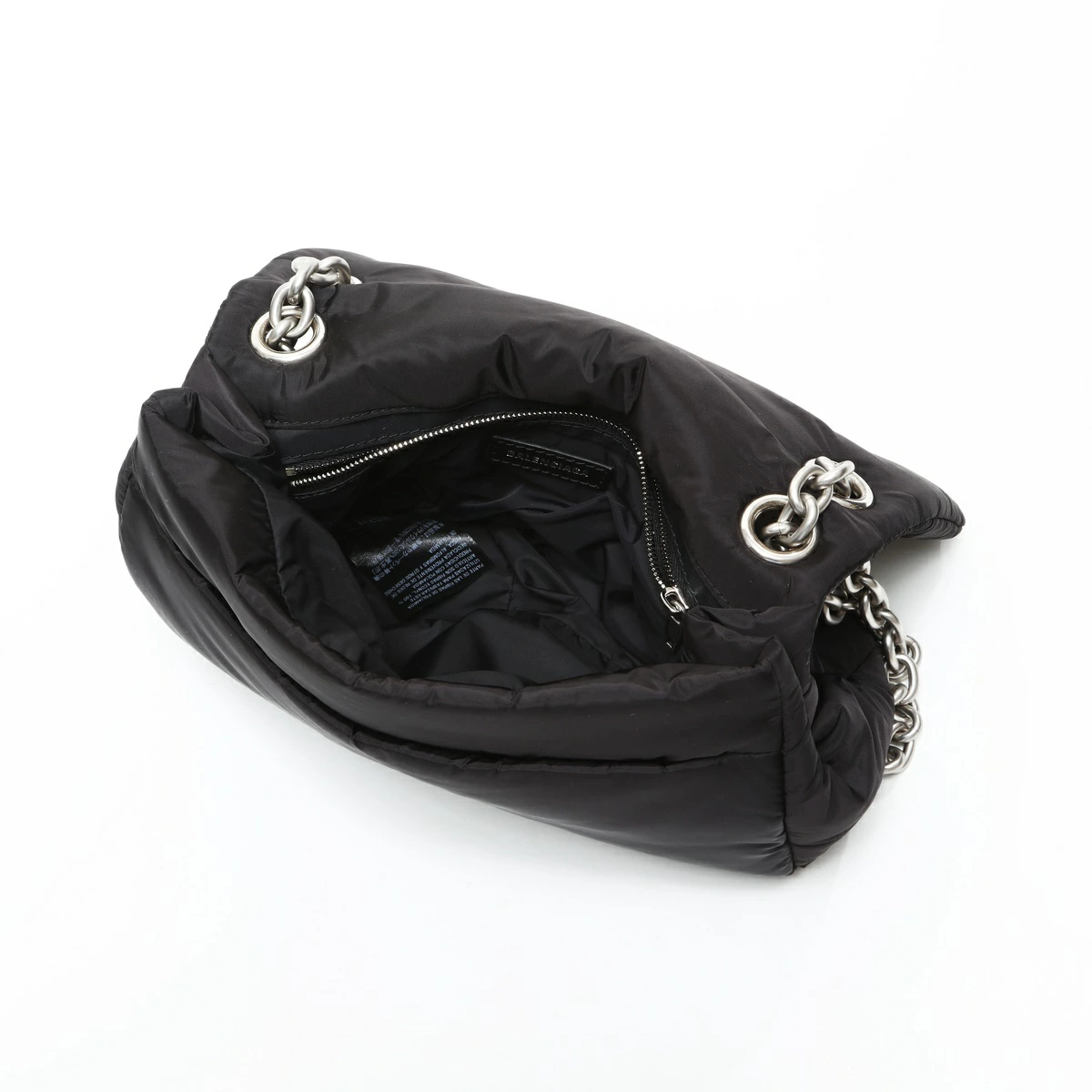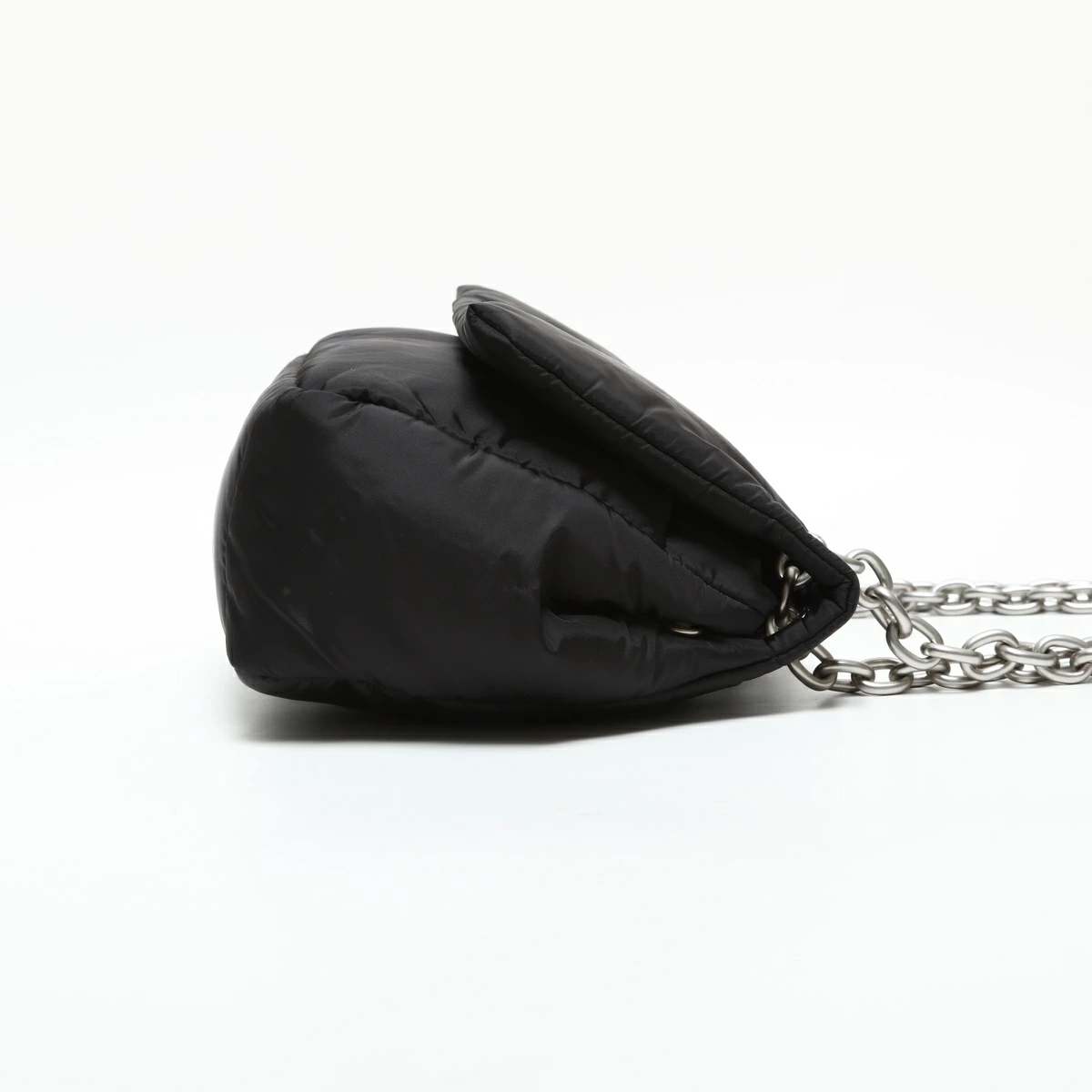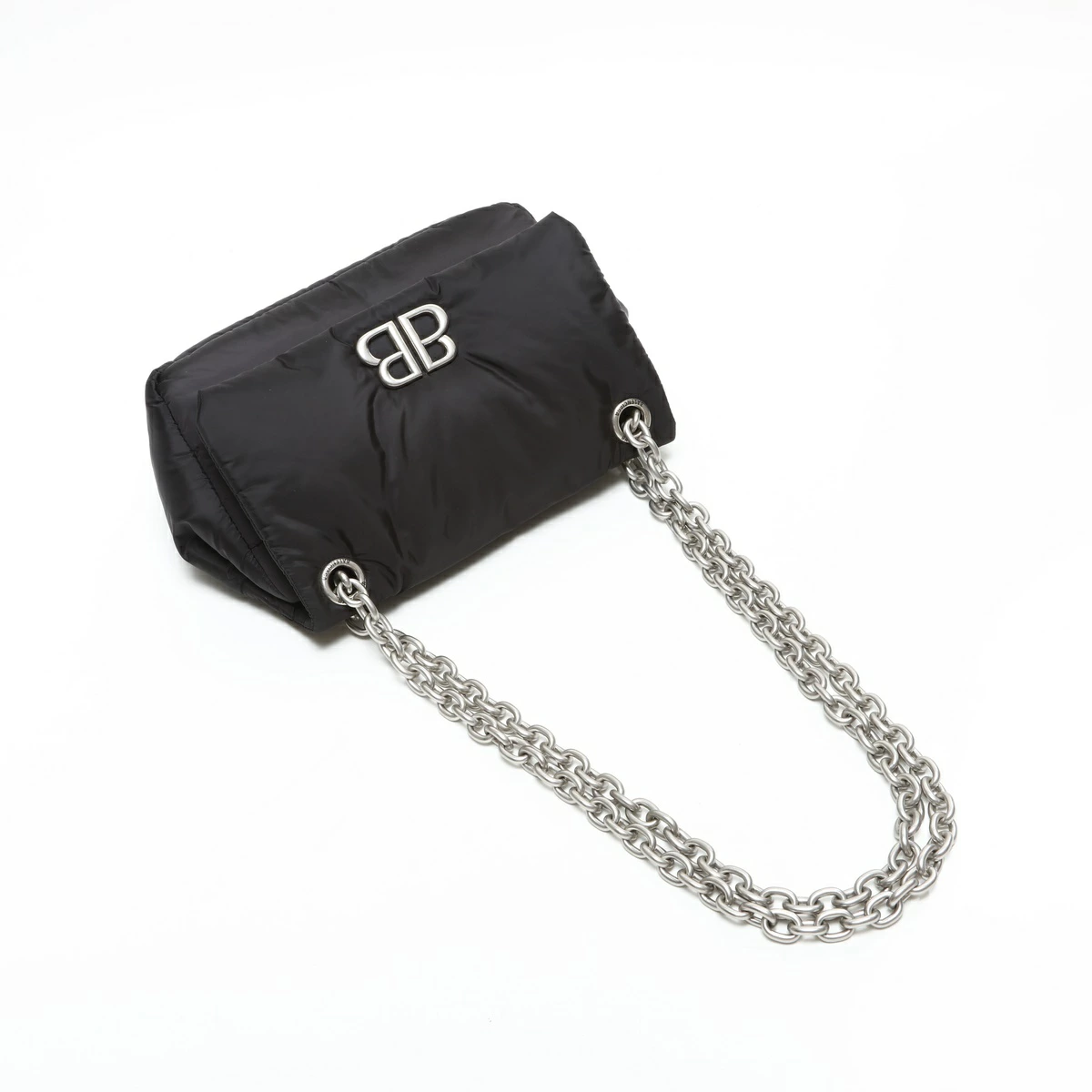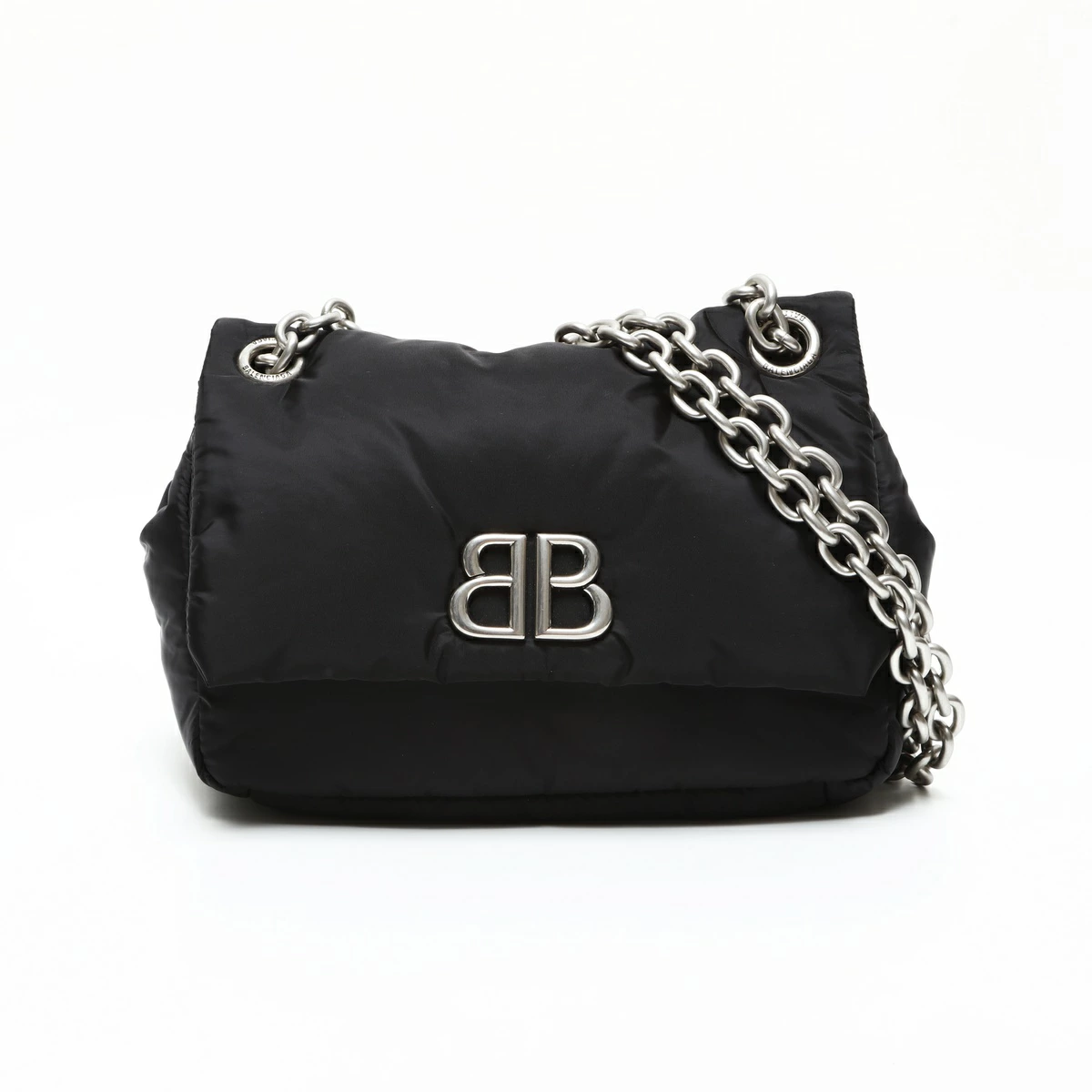 [Until 10/26 23:59] Pre-owned Balenciaga Monaco Chain Padded Mini Shoulder Bag in Eco Nylon, Black (WS23281)