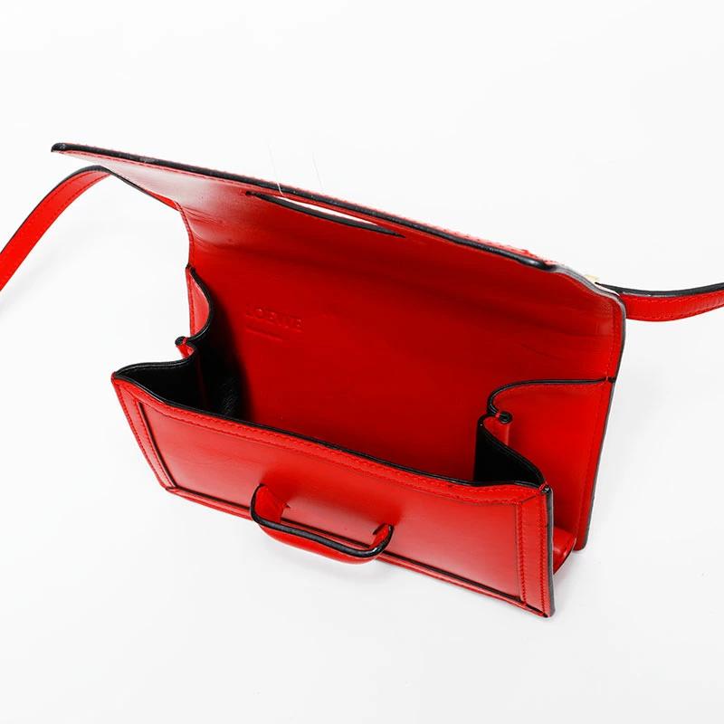 ロエベ LOEWE バルセロナ レザー ショルダーバッグ レッド WS20674 【中古】