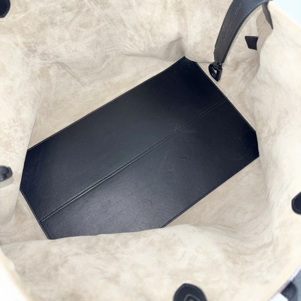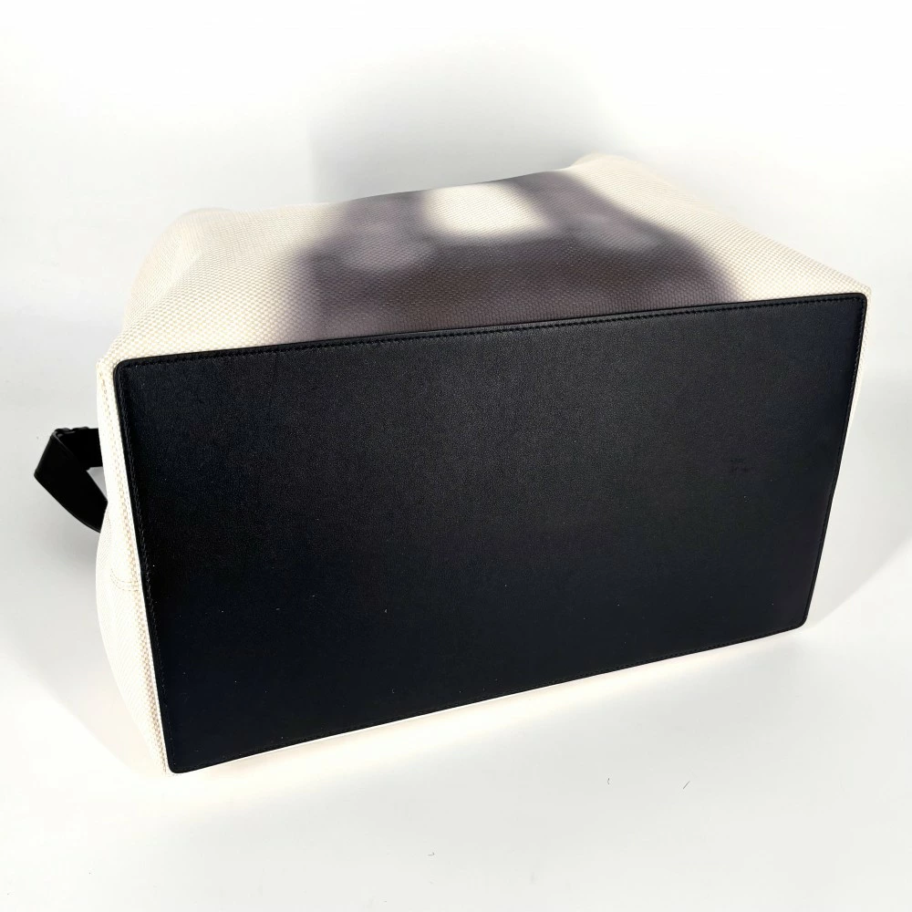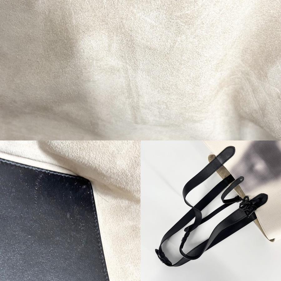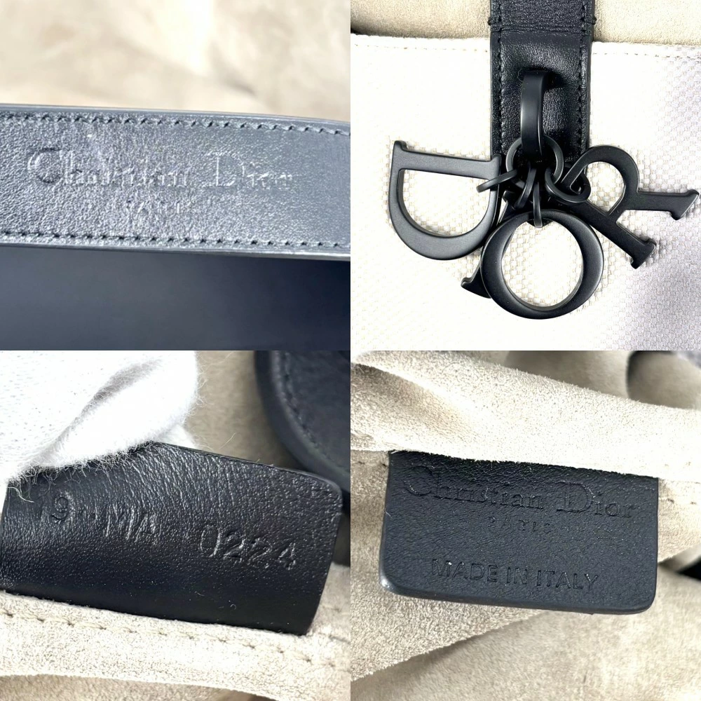 Pre-owned Christian Dior Toujours Large Eiffel Tower Tote Bag (M2820SZBF) in canvas and leather with ivory and black hardware.