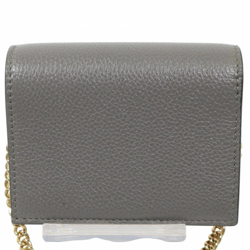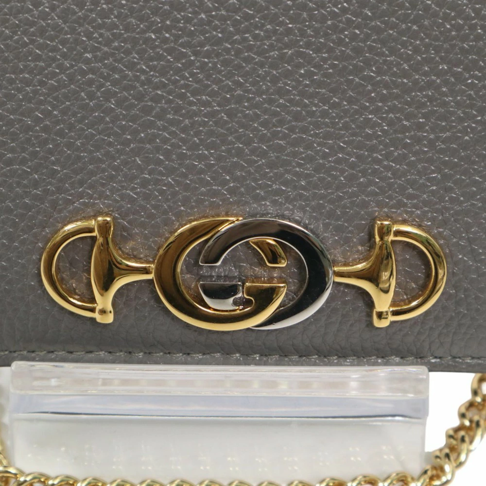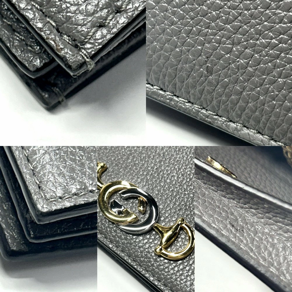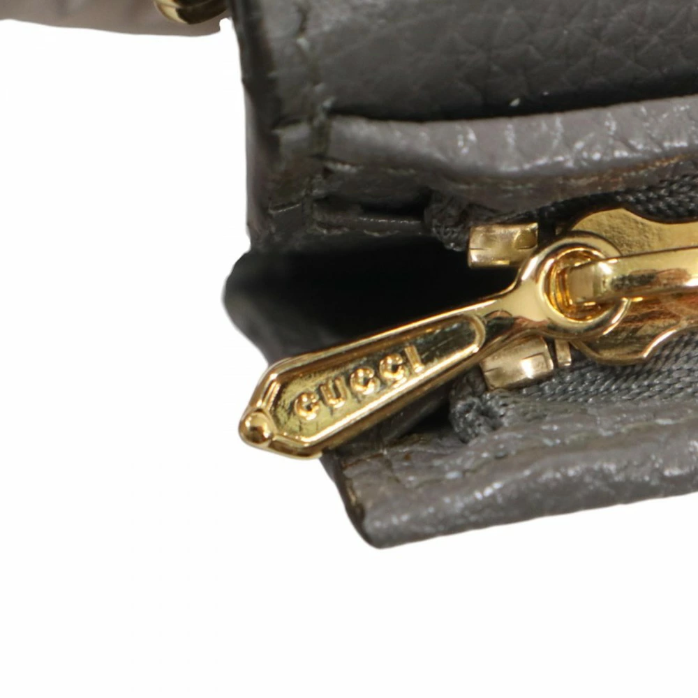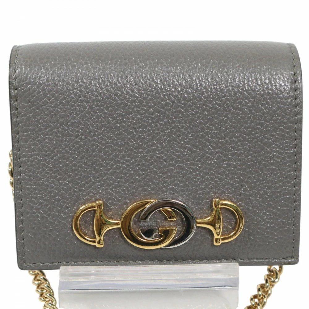 Pre-owned Gucci Zumi Bi-fold Wallet, Unisex, Chain Wallet, Compact Wallet, GUCCI 570660, Gray Leather with Gold Hardware, Excellent Condition