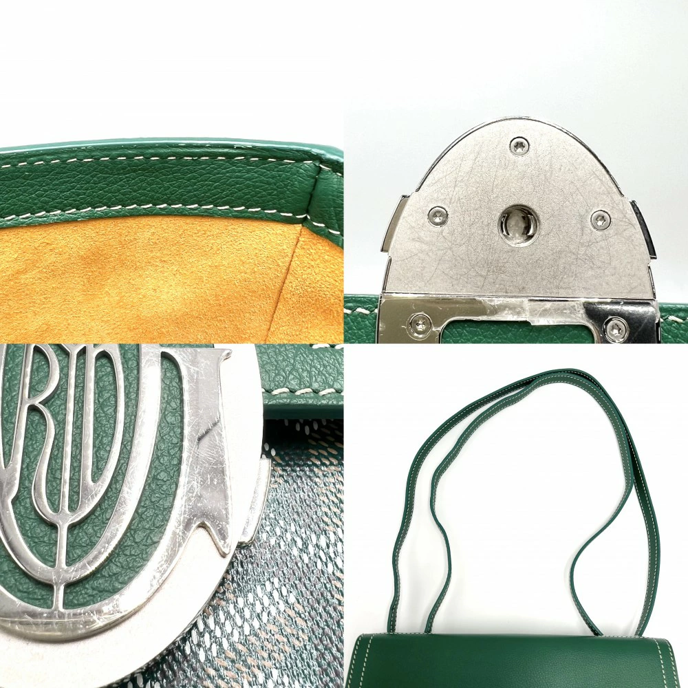 Pre-owned Goyard Sac 233 PM Shoulder Bag for Women, Shoulder/Crossbody, GOYARD 233SH2PMLTY09CL09P, PVC-Coated Canvas, Leather, Green, Silver Hardware