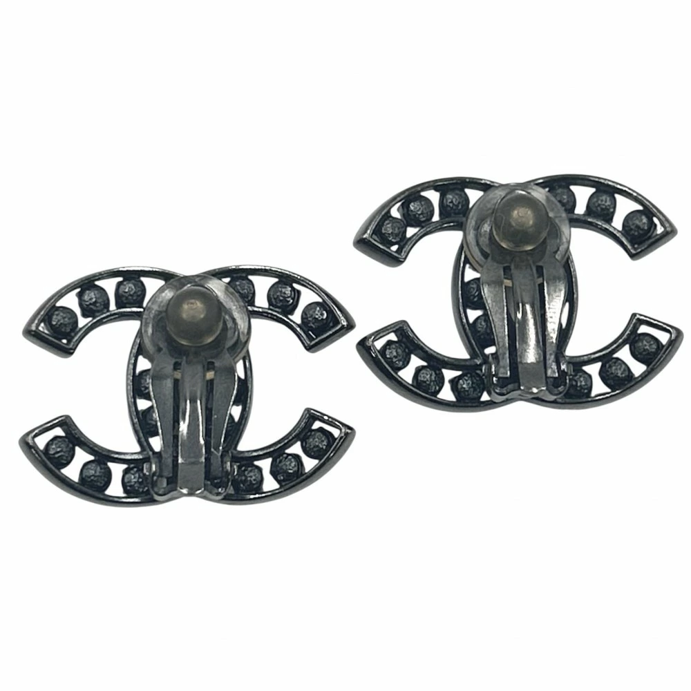 [50% OFF] Chanel Coco Mark Earrings for Women, Rhinestone B14B, Black, Approx. 9.6g, 2014 [Pre-owned]