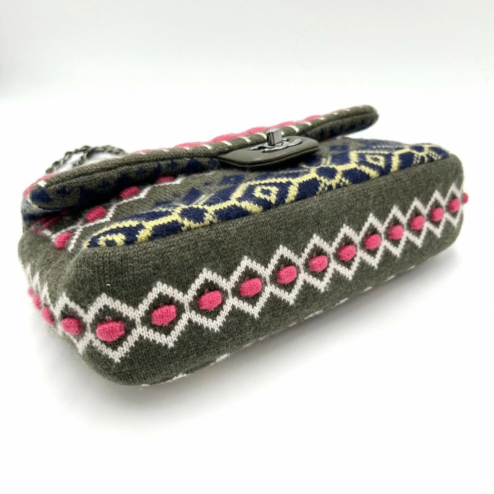 [35% OFF] Chanel Women's Shoulder Bag, Nordic Pattern, Double Chain, Shoulder/Crossbody, Coco Mark, Coco Bag, CHANEL Wool, Green, Multicolor, Silver Hardware, Fall/Winter [Pre-owned]