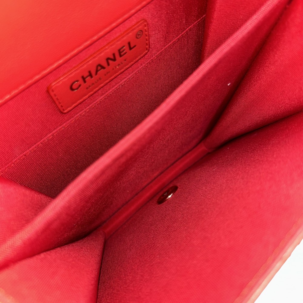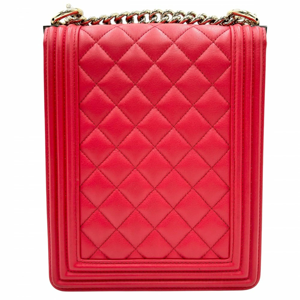Pre-owned Chanel Boy shoulder bag for women. Features a Coco mark and a red lambskin finish. Excellent condition. Gold hardware.
