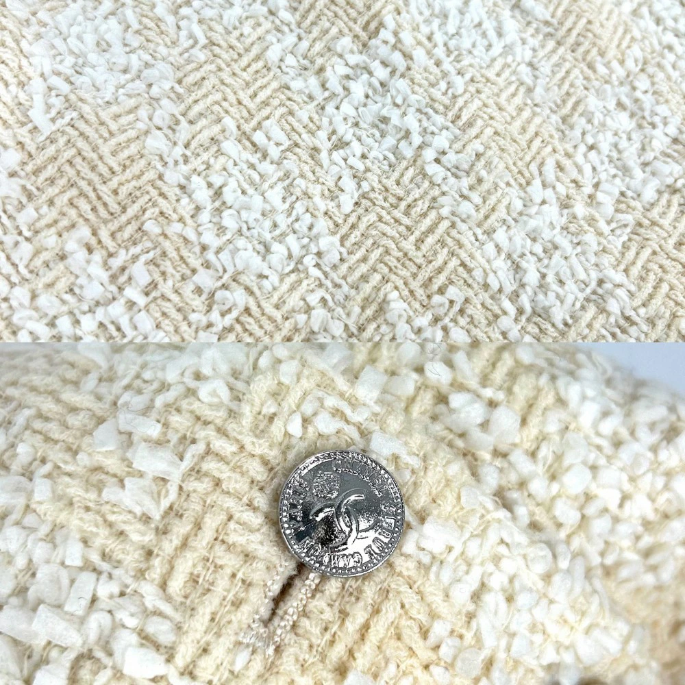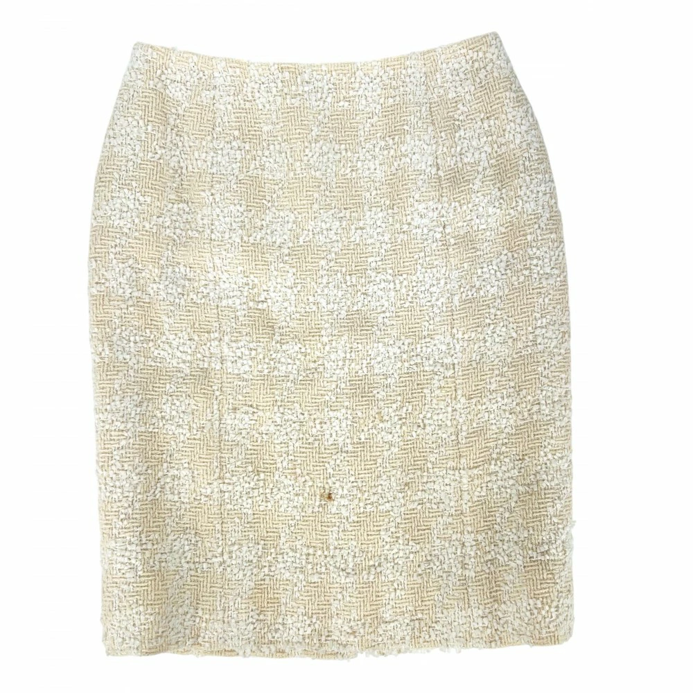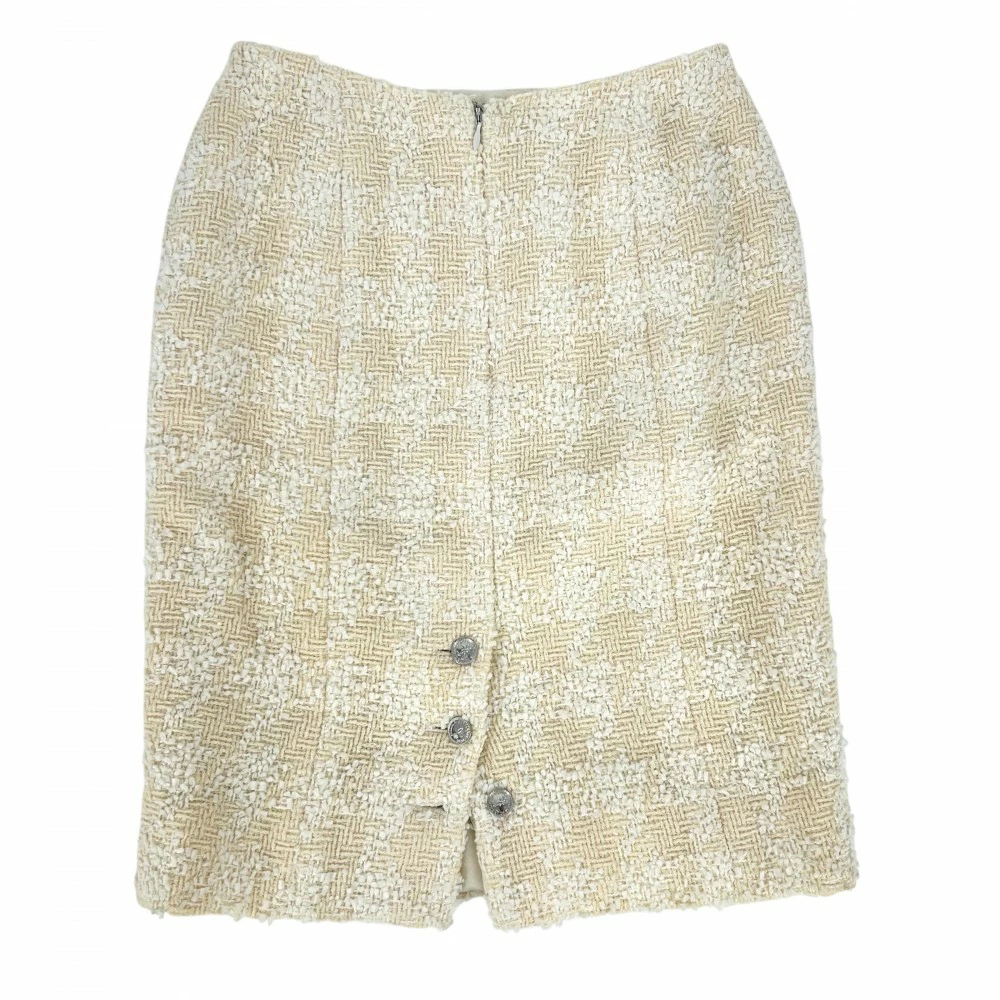 Pre-owned Chanel Women's Tweed Skirt with Coco Buttons, Size 38, Vintage Coco Mark, Wool and Nylon, Yellow, Silver Hardware, All-Season.