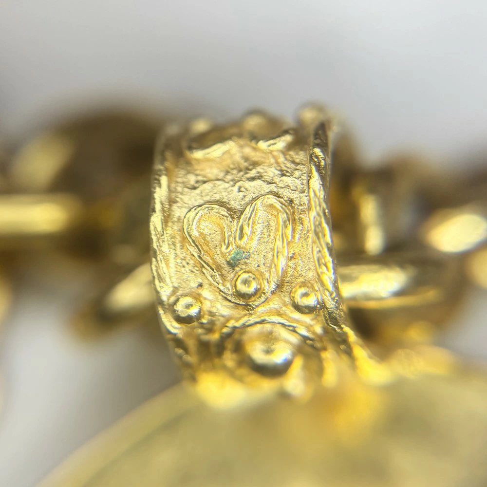 Pre-owned Chanel Women's Gripois Long Necklace Pendant with Coco Mark, Round, 94A Color Stone, Red and Green, Approximately 122.4g, 1994.