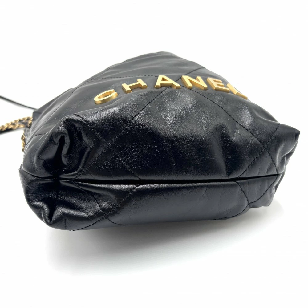 Pre-owned Chanel 22 Mini logo handbag/shoulder bag with chain strap. Excellent condition. Made of black leather with gold hardware.