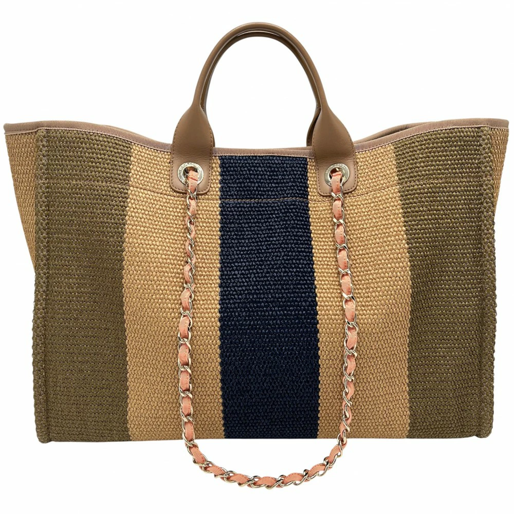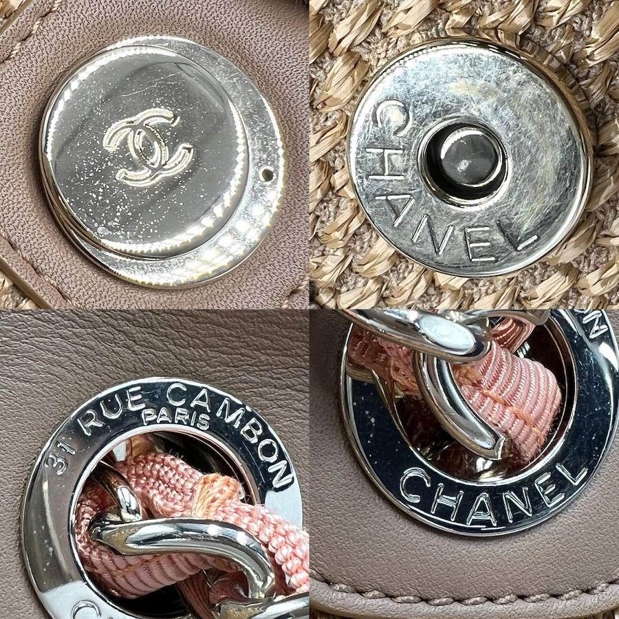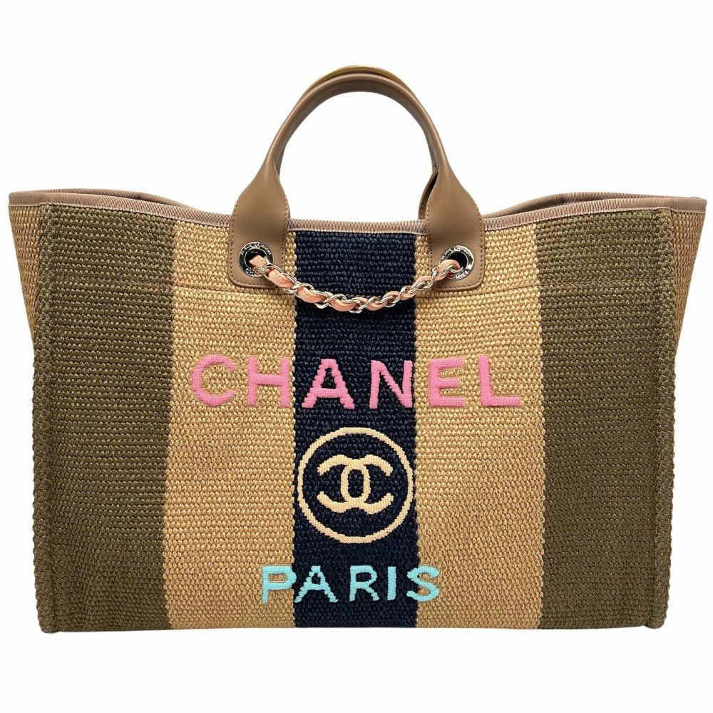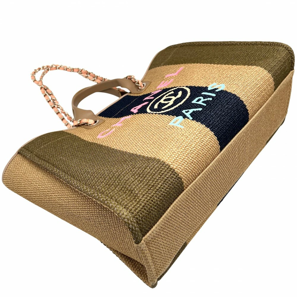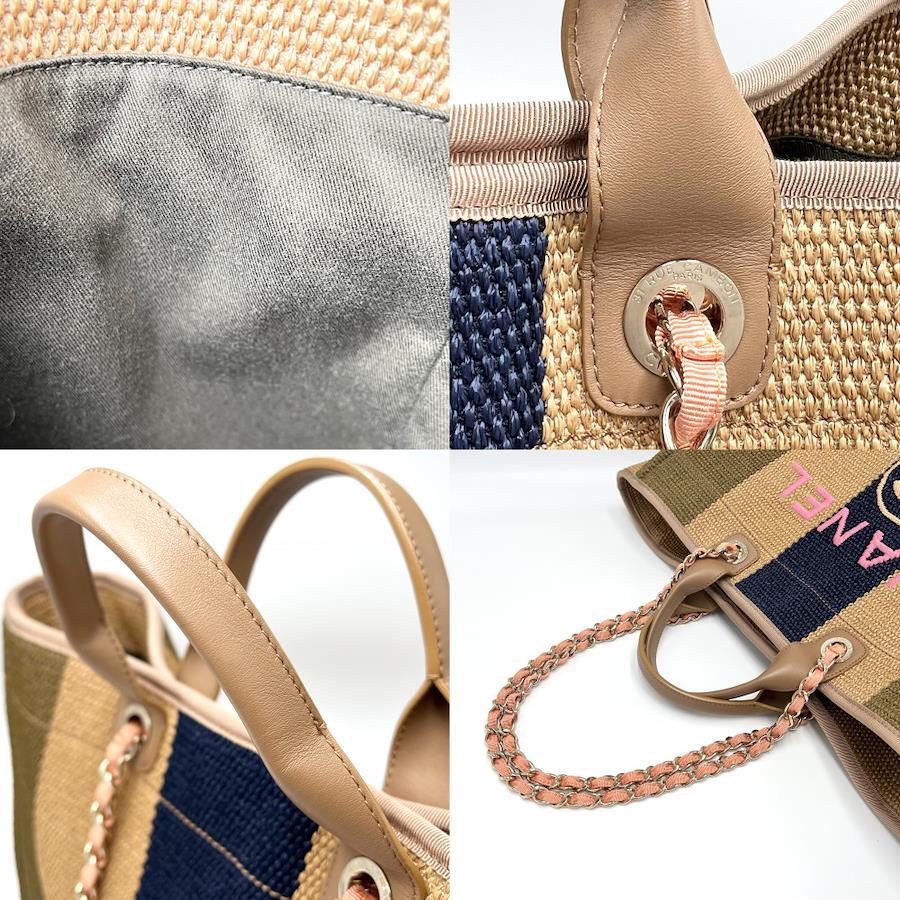Pre-owned Chanel 2-way women's Deauville Coco Mark chain tote bag. Handbag/shoulder bag. CHANEL straw leather, beige, brown, gold hardware. Excellent condition.