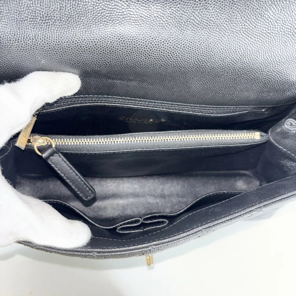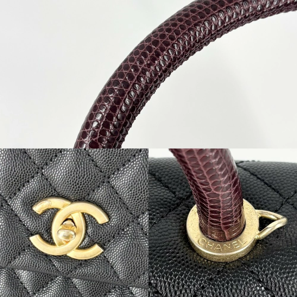 Pre-owned Chanel Women's Matelasse Coco Handle Handbag, Shoulder Bag, Crossbody Bag, Chain Shoulder Bag, Turn Lock, CHANEL A92990, Caviar Skin, Lizard Leather, Black, Wine Red, Gold Hardware.