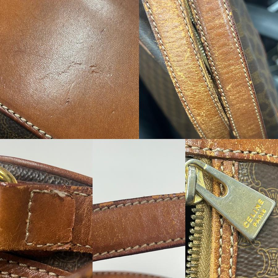 Pre-owned Celine women's vintage Macadam handbag, mini Boston bag, brown leather with gold hardware.