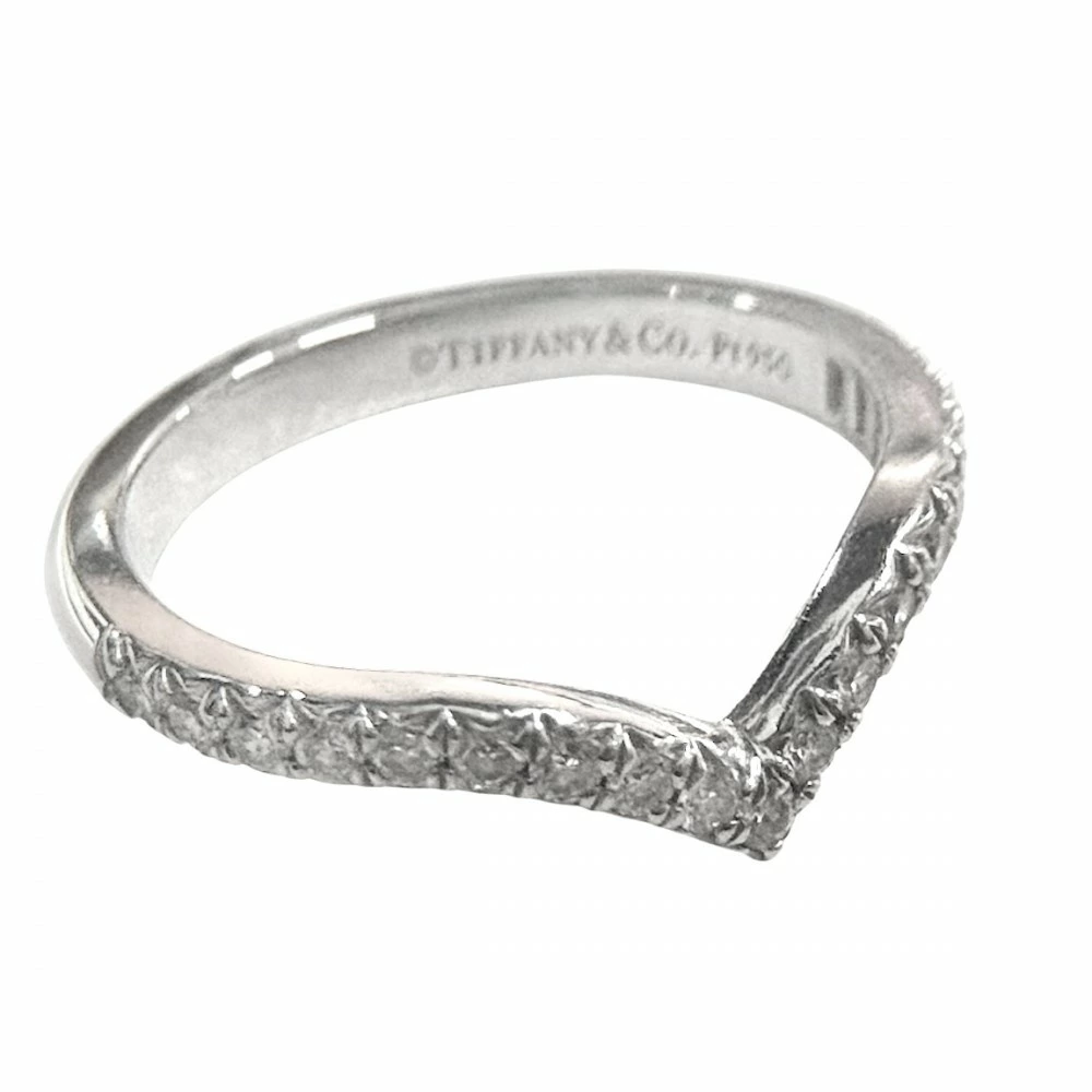 Pre-owned Tiffany & Co. Women's Soleste V-Band Ring, Pt950 Platinum with Diamonds, Size 6.5, Approx. 2.9g.