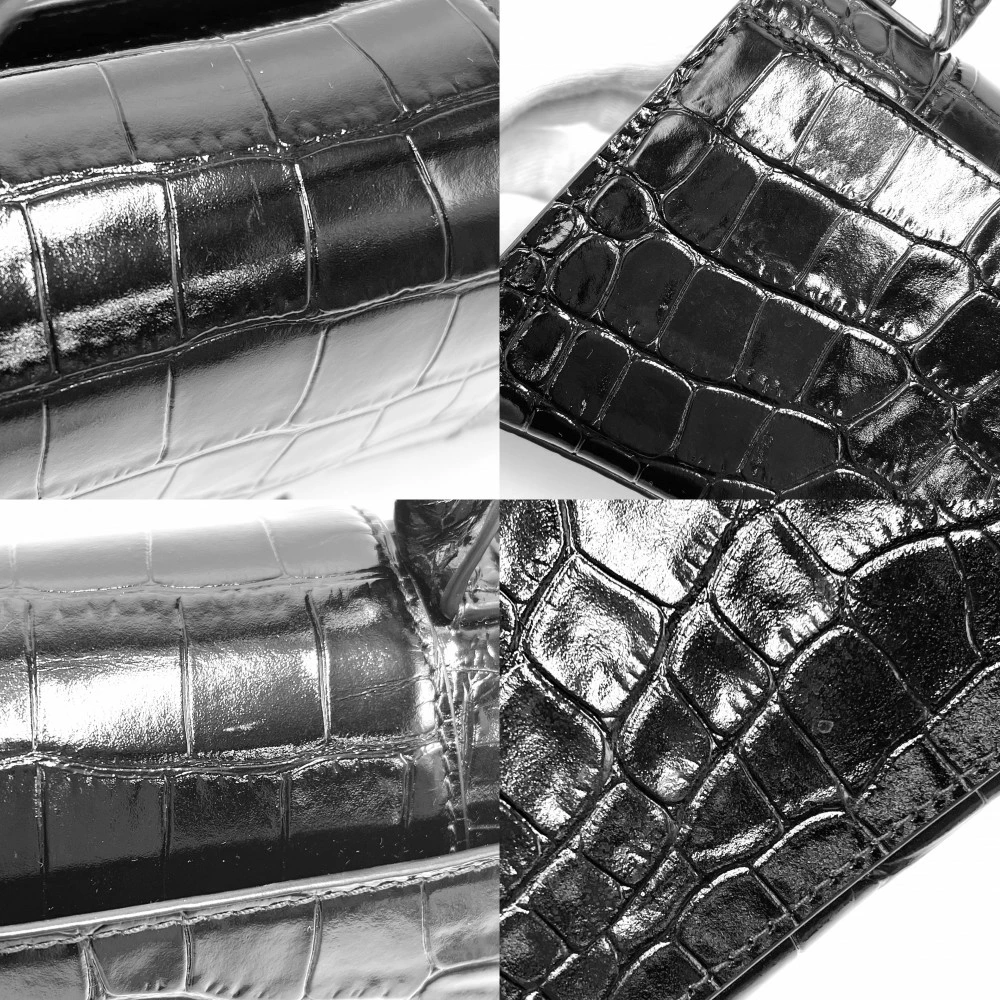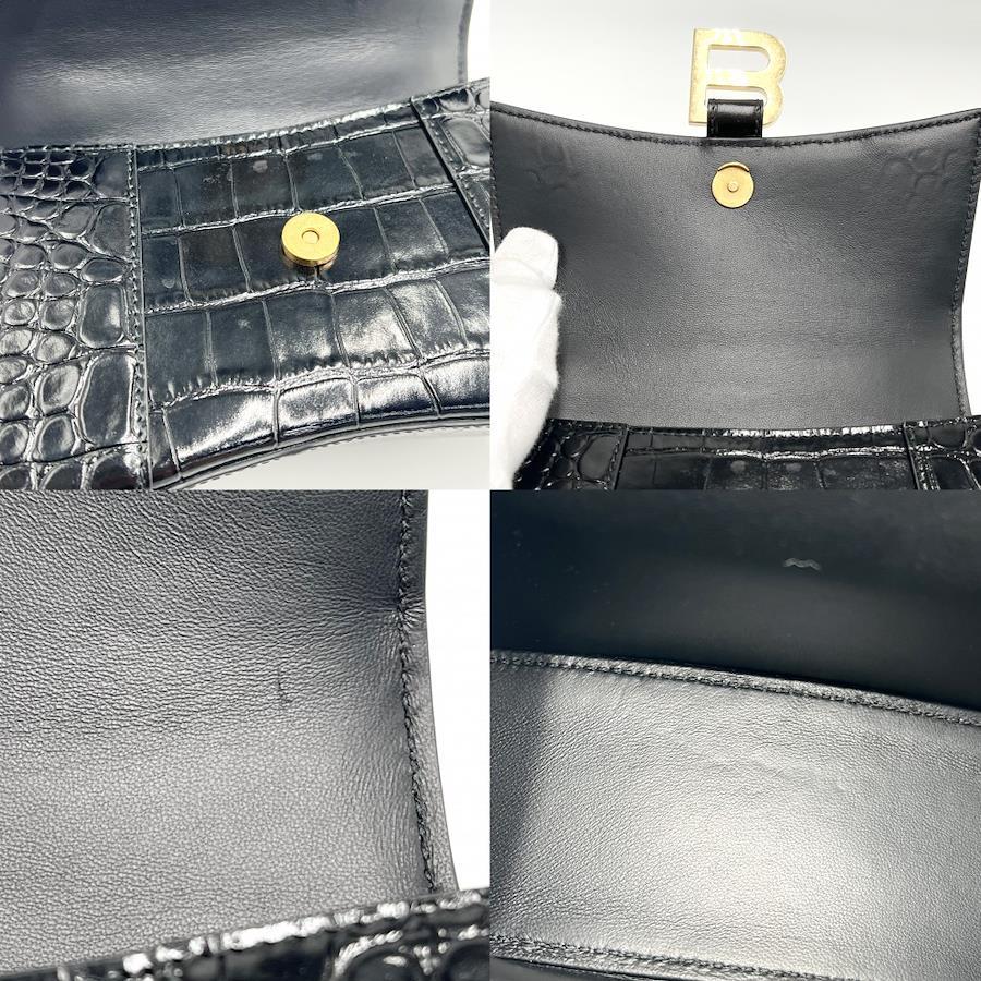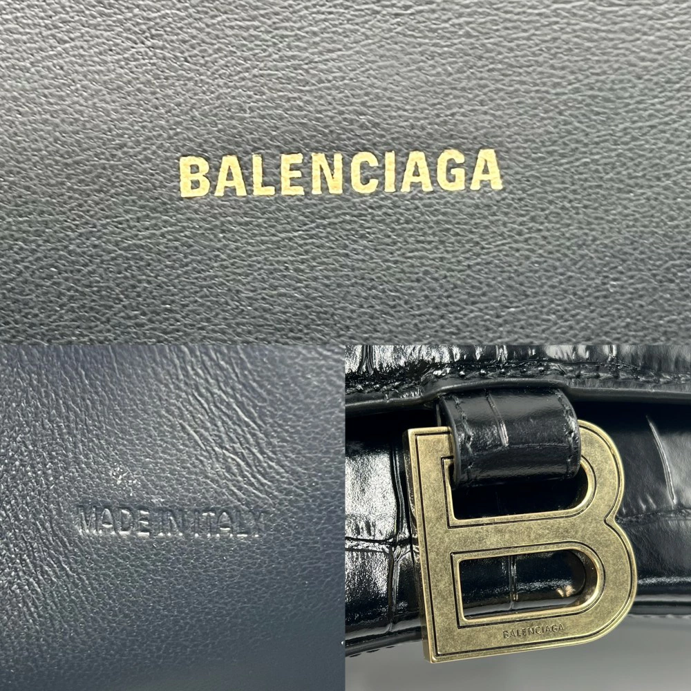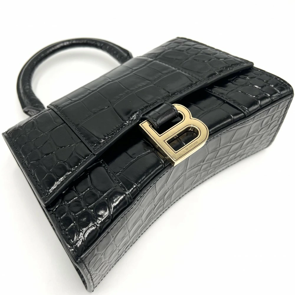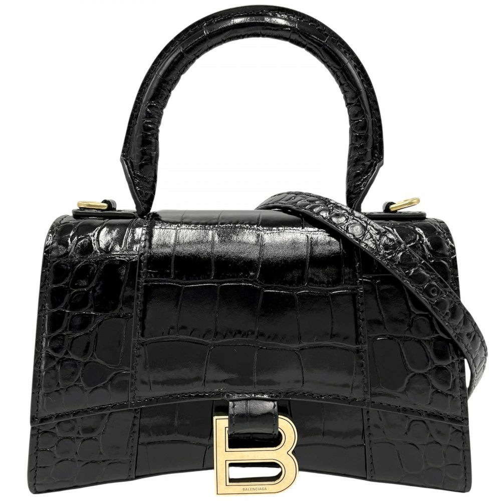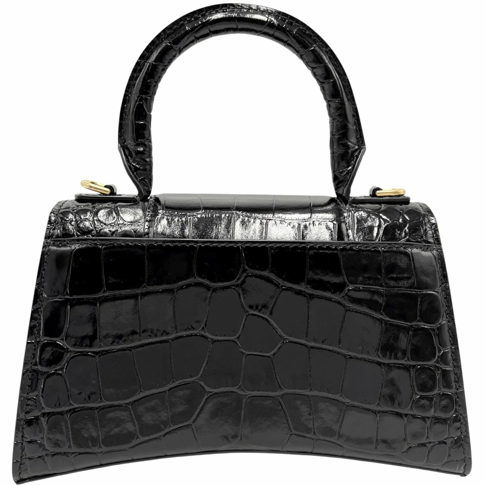 Balenciaga Women's Hourglass XS 2-Way Handbag/Shoulder Bag (Shoulder/Crossbody). HOURGLASS Crocodile-Embossed Top Handle Bag. BALENCIAGA 592833. Made of black calfskin and nappa lambskin with antique gold hardware. Excellent condition. [Pre-owned]